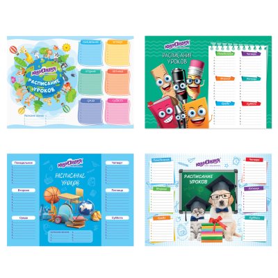 Расписание уроков Популярное Новинки По размеру скидки Дешевле Дороже По названию А-Я По названию Я-А Код: 111653Расписание уроков и звонков А3, ЮНЛАНДИЯ, для мальчиков, ассорти (2 вида) 27,26 ₽Купить Код: 111654Расписание уроков и звонков А4, ЮНЛАНДИЯ, "Школьный мир", ассорти (4 вида) 13,63 ₽Купить Код: 111655Расписание уроков и звонков А4, ЮНЛАНДИЯ, "Весёлые зверята", ассорти (4 вида) 13,63 ₽Купить Код: 129782Расписание уроков и звонков А4, ЮНЛАНДИЯ, для мальчиков, ассорти (4 вида) 13,24 ₽Купить Ничего не найдено Показать ещё Показано 4 из 4 товаров.