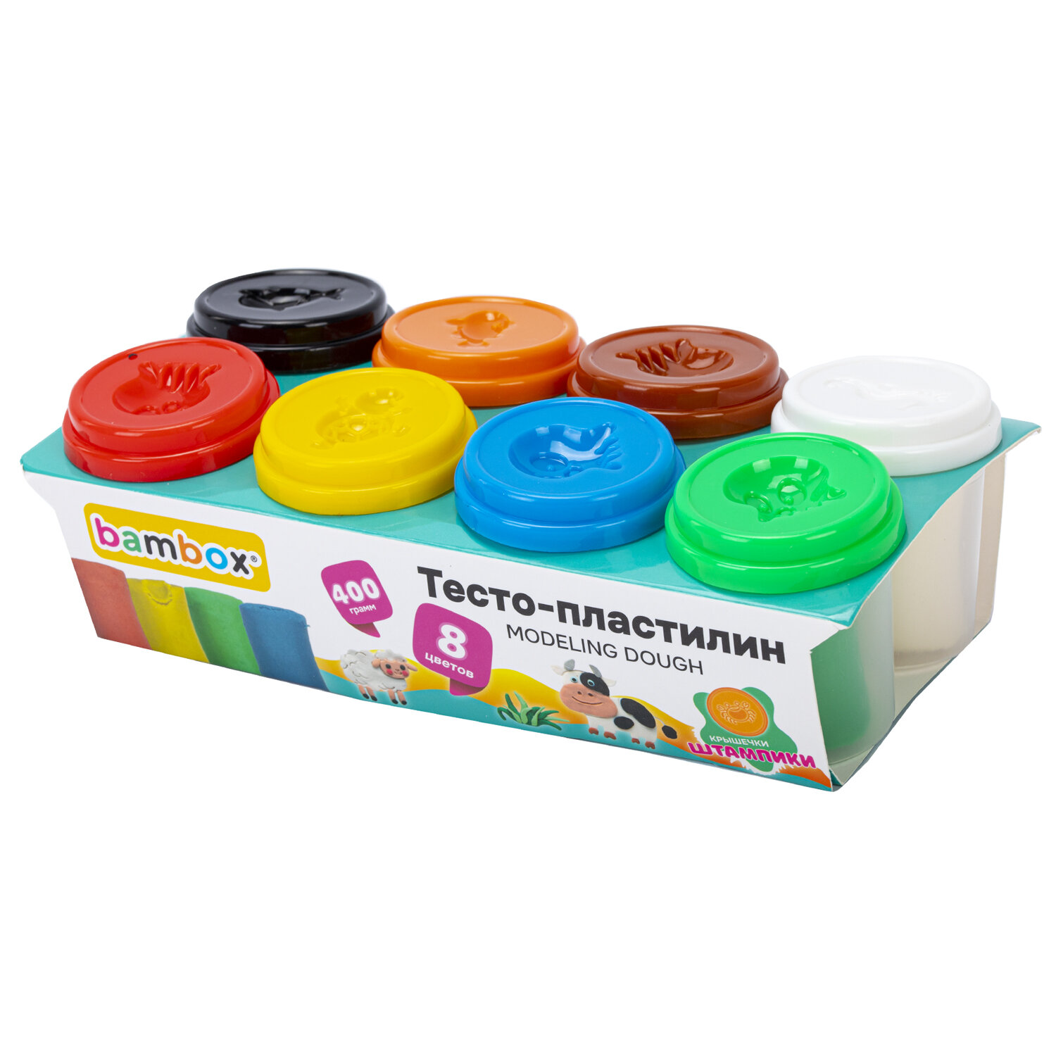 Тесто-пластилин для лепки СУПЕР ПЛАСТИЧНОЕ, 8 цветов, 400 г, крышки-штампики, BAMBOX (БАМБОКС) Код товара: 107248 290,88 ₽ Купить Производитель:BAMBOX Тесто-пластилин BAMBOX развивает и тренирует мелкую моторику рук ребенка, положительно влияет на его эмоциональное состояние. Тесто-пластилин BAMBOX – это пластилин на растительной основе с мягкой текстурой и безопасным составом. В набор входят 8 баночек теста для лепки ярких классических цветов: красный, синий, желтый, зеленый, оранжевый, коричневый, белый, черный. Цвета можно смешивать между собой и получать новые оттенки. Пластилин легко разминается, не липнет к рукам. Лучший вариант для тех, кто только учится лепить из пластилина. На открытом воздухе затвердевает через 24 часа. Каждый цвет упакован в индивидуальный пластиковый стакан, с дополнительной защитной пленкой и с крышкой-штампиком, которая не позволяет тесту высыхать. Благодаря натуральной рецептуре тесто безопасно для детей.Производство: КитайКоличество цветов в наборе: 8 шт.Тип: на растительной основе (тесто)Эффекты: нетМасса: 400 гМасса бруска: 50 гКоличество брусков в наборе: 8 шт.Серия: DoughВид упаковки: картонный рукав с термоусадкойСрок годности: 48 месВес: 548 грРазмер упаковки: 6.6 × 21.7 × 10.7 смОбъём: 0.0019 м3Промежуточная упаковка: 12 штТранспортная упаковка: 48 штШтрих-код: 4606224477466 Файлы Сертификат-1.jpg Сертификат-2.jpg Сертификат-3.jpg Сертификат-4.jpg Сертификат-5.jpg Сертификат-6.jpg