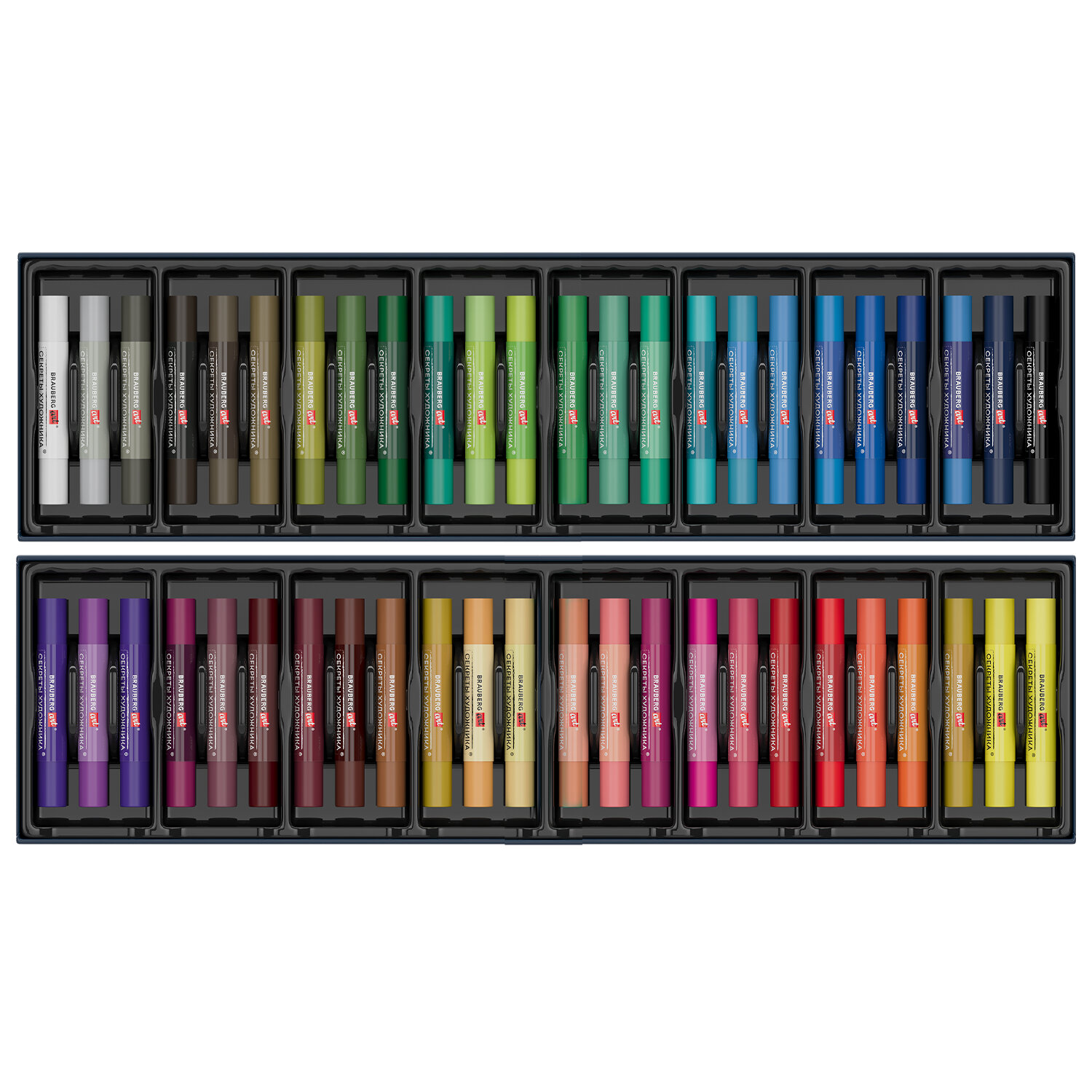 Масляная пастель легко ложится на различные фактуры цветной бумаги, бумагу для рисования, холст, картон, дерево, керамику. 48 цветов позволяют передать полную цветовую палитру. Высокое качество пигментов и связующего обеспечивает низкий расход материала, хорошую укрывистость и яркость цвета. Пастель имеет вид брусков с круглым сечением, обёрнутых в бумажную обёртку. Она позволяет сохранять руки и одежду чистыми. Не токсична и безопасна при использовании. Благодаря компактной упаковке удобно брать с собой.