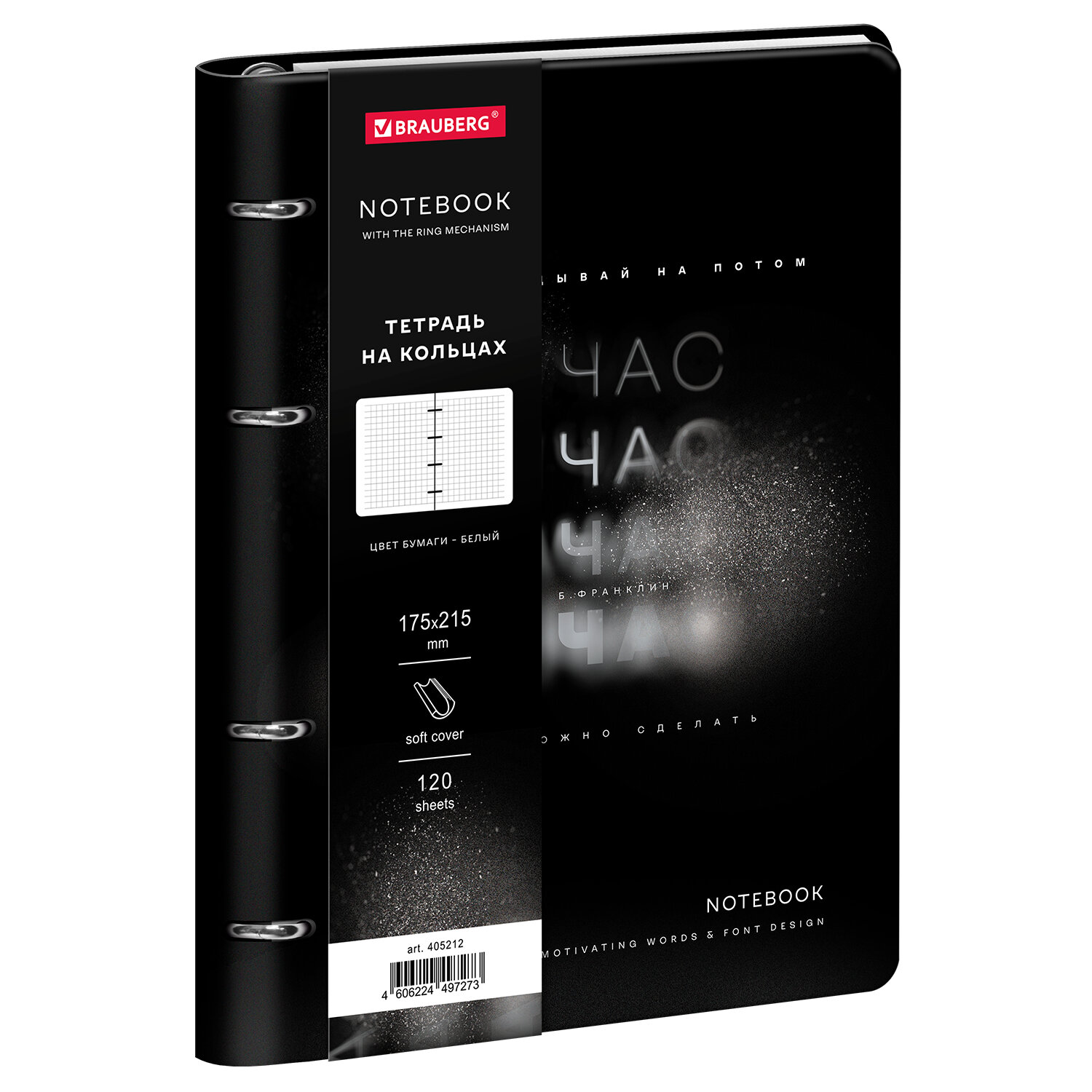 Тетрадь на кольцах А5 180х220, 120л, под кожу, BRAUBERG VISTA, Minimal черный Код товара: 405212 504,84 ₽ Купить Производитель:BRAUBERG Тетрадь на кольцах BRAUBERG - это идеальный вариант для тех, кто ценит практичные и элегантные вещи. Блок состоит из 120 листов офсетной бумаги белого цвета плотностью 70 г/м2. Кольцевой механизм с 4-мя кольцами позволяет пользоваться сменным блоком в 120 листов. Линовка - клетка с полями. Мягкая интегральная обложка с вырубкой под кольца выполнена из износоустойчивого материала с текстурой под гладкую кожу. Формат А5 удобно носить в рюкзаке/сумке, что позволит брать на учебу/работу всего одну тетрадь с возможностью добавлять и менять листы. Полезный диаметр колец - 20 мм.Производство: КитайКоличество листов: 120Тип обложки: экокожаФормат: А5Внутренний блок: офсетПлотность внутреннего блока: 70 г/м2Серия: VistaДизайн: СейчасЦвет обложки: с дизайномБелизна: 100 %Цвет внутреннего блока: белыйТип скрепления: четырехкольцевой механизмВид линовки: клеткаНаличие полей: даДлина: 215 ммШирина: 175 ммТолщина: 25 ммИндивидуальная упаковка: даВес: 407 грРазмер упаковки: 3.2 × 22.1 × 18.1 смОбъём: 0.0012 м3Промежуточная упаковка: 30 штТранспортная упаковка: 30 штШтрих-код: 4606224497273
