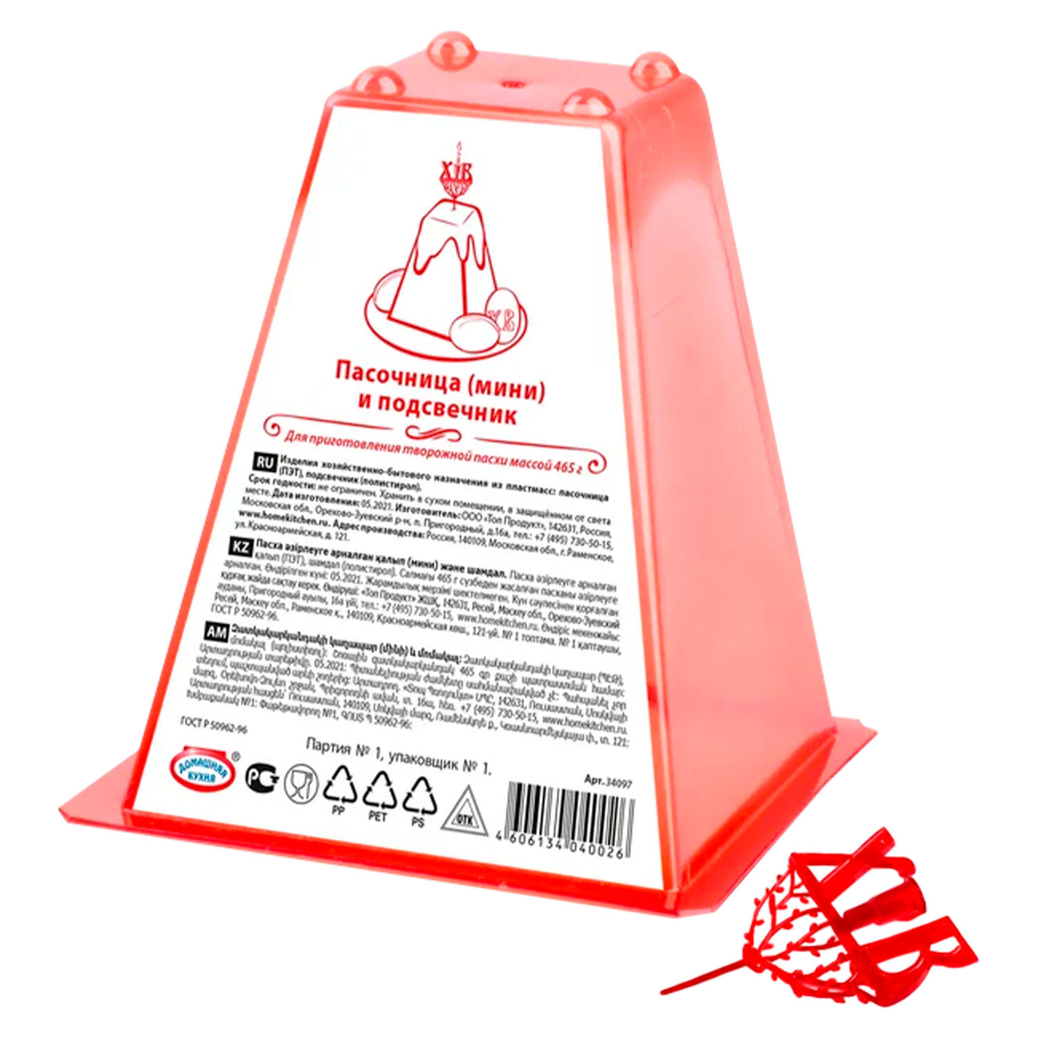 Пасочница пасхальная для приготовления творожной пасхи 465 г, с подсвечником, рецептом, пластик 34108 Код товара: 592678 99 ₽ Купить Производитель:ДОМАШНЯЯ КУХНЯ Подарите своей пасхальной выпечке идеальную форму и торжественный вид с пасочницей, созданной специально для приготовления ароматной творожной пасхи! Пасочница пасхальная объёмом 465гр (размеры 11х8,5х8,5 см) выполнена из пластика ярко-красного цвета. Особое украшение пасочницы — подсвечник в форме «ХВ». После застывания пасхи вы можете установить в нее маленькую свечу и подавать угощение как центр праздничного стола — красиво, торжественно и по-домашнему тепло. В комплекте — подарочный рецепт традиционной творожной пасхи, чтобы вы с лёгкостью приготовили идеальное угощение даже впервые.Производство: РоссияТип товара: Пасочница пасхальнаяМатериал: пластикРазмер: 11х8,5х8,5 смКоличество в комплекте: 1 шт.Дизайн: ПасочницаУпаковка: пакетВес: 26 грРазмер упаковки: 10.3 × 9.2 × 9 смОбъём: 0.0005 м3Промежуточная упаковка: 24 штТранспортная упаковка: 24 штШтрих-код: 4606134040026 Сертификат-1.jpg Сертификат-2.jpg Сертификат-3.jpg