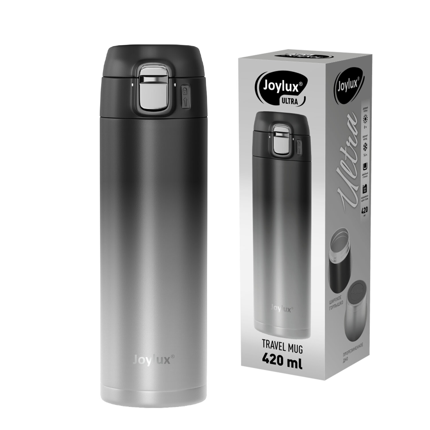 Термокружка 420 мл JOYLUX (ДЖОЙЛЮКС ULTRA GRADIENT, нержавеющая сталь SUS304, черный/серый