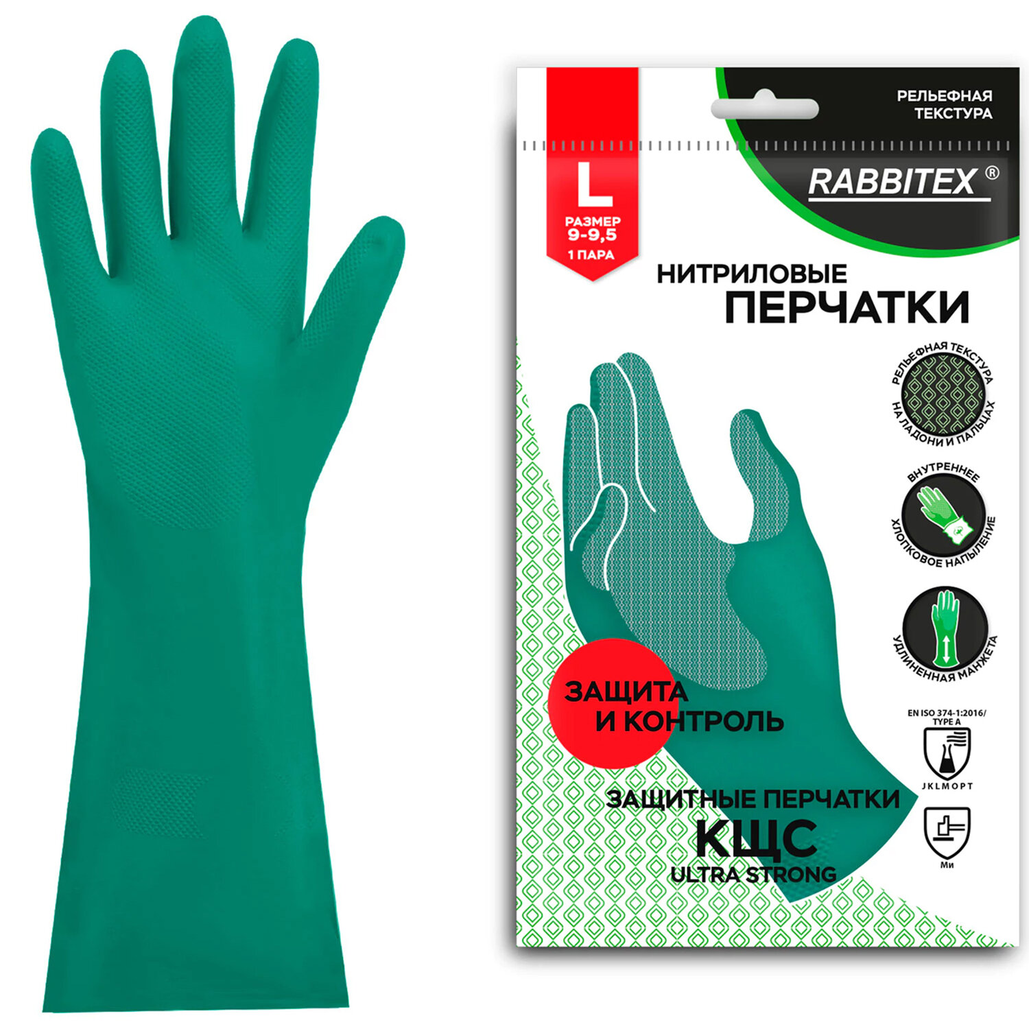 Перчатки нитриловые КЩС, ULTRA STRONG, химически устойчивые, с хлопковым напылением, зеленые, размер 9-9,5 L (большой), RABBITEX Код товара: 700912 131,29 ₽ Купить Производитель:RABBITEX Нитриловые перчатки RABBITEX для защиты рук от загрязнений и химических факторов: кислот, щелочей, нефтепродуктов, растительных и животных масел и жиров, а также от воды и растворов нетоксичных веществ. Могут применяться в быту и на производстве. Перчатки нитриловые КЩС Ultra Strong – это средство индивидуальной защиты рук от различных химических факторов: кислот концентрацией до 80% (К80), щелочей концентрацией до 40% (Щ40), сырой нефти (Нс), продуктов тяжелых фракций и нефтяных масел (Нм), продуктов легкой фракции (Нл), растительных и животных масел и жиров (Нж), а также от воды и растворов нетоксичных веществ. Благодаря повышенной плотности перчатки защищают от более высоких концентраций химических веществ. Внутреннее хлопковое напыление дарит комфорт во время работы. Рельефная текстура на ладони и пальцах обеспечивает надёжный захват влажных и промасленных предметов. Удлинённая манжета защищает руки и рукава одежды от загрязнений. Изготовлены в соответствии с EN ISO 374-1:2016 и ТР ТС 019/2011. Длина – 330 мм. Толщина – 0,38 мм. Цвет – зеленый. Упакованы в цветной пакет с европодвесом. Сферы применения: - автомобильная / механическая промышленности; - обработка / обезжиривание металлов с помощью агрессивных растворителей; - химическая промышленность; - погрузка барабанов для химической продукции; - обслуживание; - пропитка и отделка крепёжного леса; - применение пестицидов; - очистка типографских роликов.Производство: КитайЗащита от: химических воздействийРазмер: L (большой)Размер производителя: 9-9,5 (L)Вид: КЩСМатериал основы: нитрилПокрытие внешнее: нетПодкладка: хлопковое напылениеСерия: КЩССтепень защиты от кислот: 80%Степень защиты от щелочей: 40%Поверхность области захвата: рельефнаяСоответствует требованиям ГОСТа : ГОСТ EN ISO 374-1:2016/Type AКоличество в комплекте: 1 парДлина: 330 ммТолщина: 0.38 ммЦвет: зеленыйСрок годности: 60 месВес: 77 грРазмер упаковки: 1.5 × 21.9 × 13.9 смОбъём: 0.0003 м3Промежуточная упаковка: 12 штТранспортная упаковка: 120 штШтрих-код: 4606224501048 Файлы Сертификат-1.jpg Сертификат-2.jpg Сертификат-3.jpg Сертификат-4.jpg Сертификат-5.jpg Сертификат-6.jpg