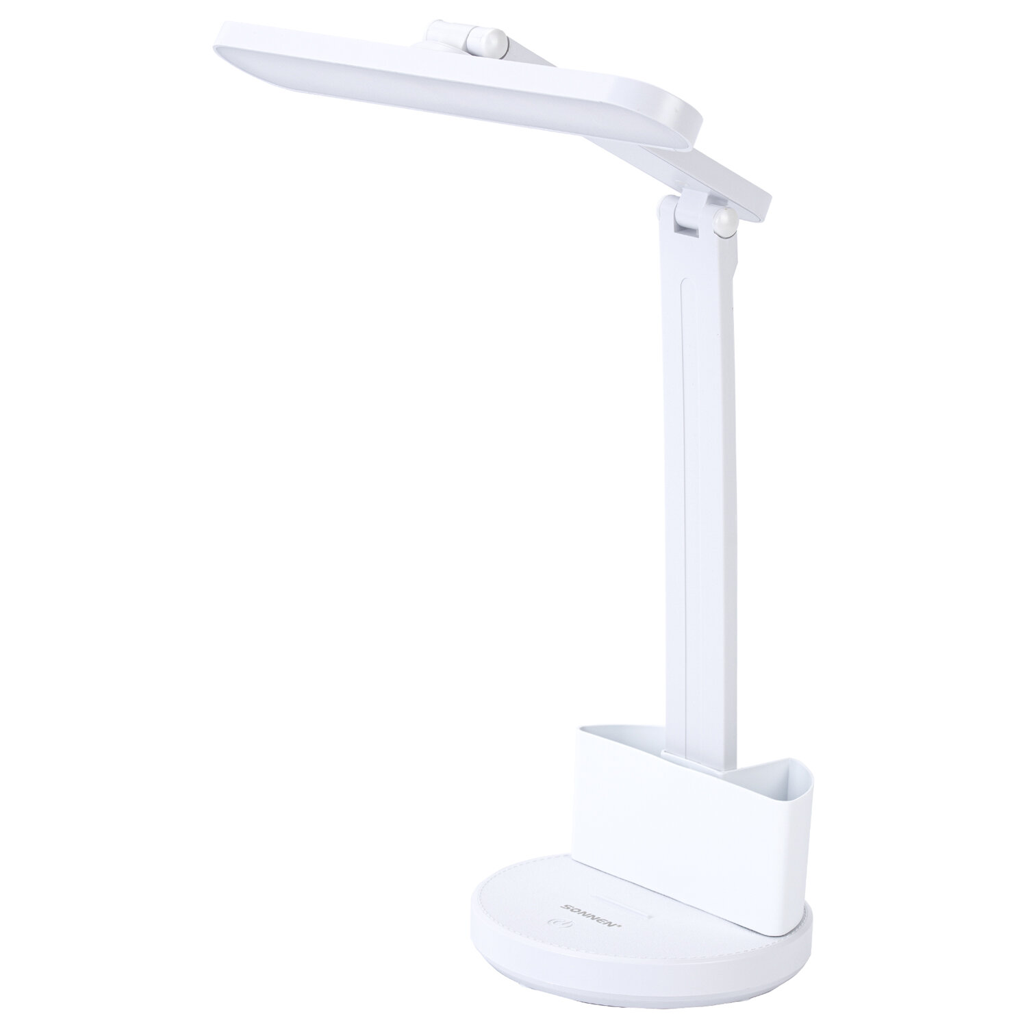 Настольная лампа / светильник беспроводная SONNEN PT-402, органайзер, USB, LED, 3 Вт, 3 режима Код товара: 238782 629,63 ₽ Купить Производитель:SONNEN Настольная лампа-светильник SONNEN PT-402 предназначена для освещения рабочего места в офисе или дома. Конструкция светильника обеспечивает произвольную регулировку направления света. Представляем многофункциональный светодиодный светильник 3 Вт – идеальное решение для офиса и дома. Светильник оснащен 32 яркими диодами, что обеспечивает равномерное освещение и бережную нагрузку на глаза при длительной работе. Три режима цветовой температуры (тёплый, нейтральный, холодный свет) и бесступенчатая регулировка яркости позволяют настроить свет под любую задачу и время суток. Интегрированный органайзер поможет поддерживать порядок на столе, а специальная подставка для телефона – держать устройство под рукой. Встроенный аккумулятор обеспечит бесперебойную работу светильника.Производство: КитайТип лампы: светодиоднаяТип крепления: подставкаМощность: 3 ВтЦоколь: нетНазначение: универсальныйСерия: PT-40Цветность света: нейтральный белый - 3500-4500 К, теплый белый - 2700-3400 К, холодный белый - от 6100 и болееСветовой поток: 350 ЛюменКол-во режимов свечения: 3Источник света: 32 LEDИсточник питания: сеть, аккумуляторРасположение кнопки выключателя: на корпусеСенсорный выключатель: даПроизвольная регулировка направления подсветки: даОтсутствие мерцания и шумов: даСкладная конструкция: даВысота: 35 смДлина шнура: 1.2 мМатериал корпуса: пластикЦвет корпуса: белыйВес: 604 грРазмер упаковки: 6.5 × 36 × 15.4 смОбъём: 0.0041 м3Промежуточная упаковка: 48 штТранспортная упаковка: 48 штШтрих-код: 4606224465982 Сертификат-1.jpg Сертификат-2.jpg