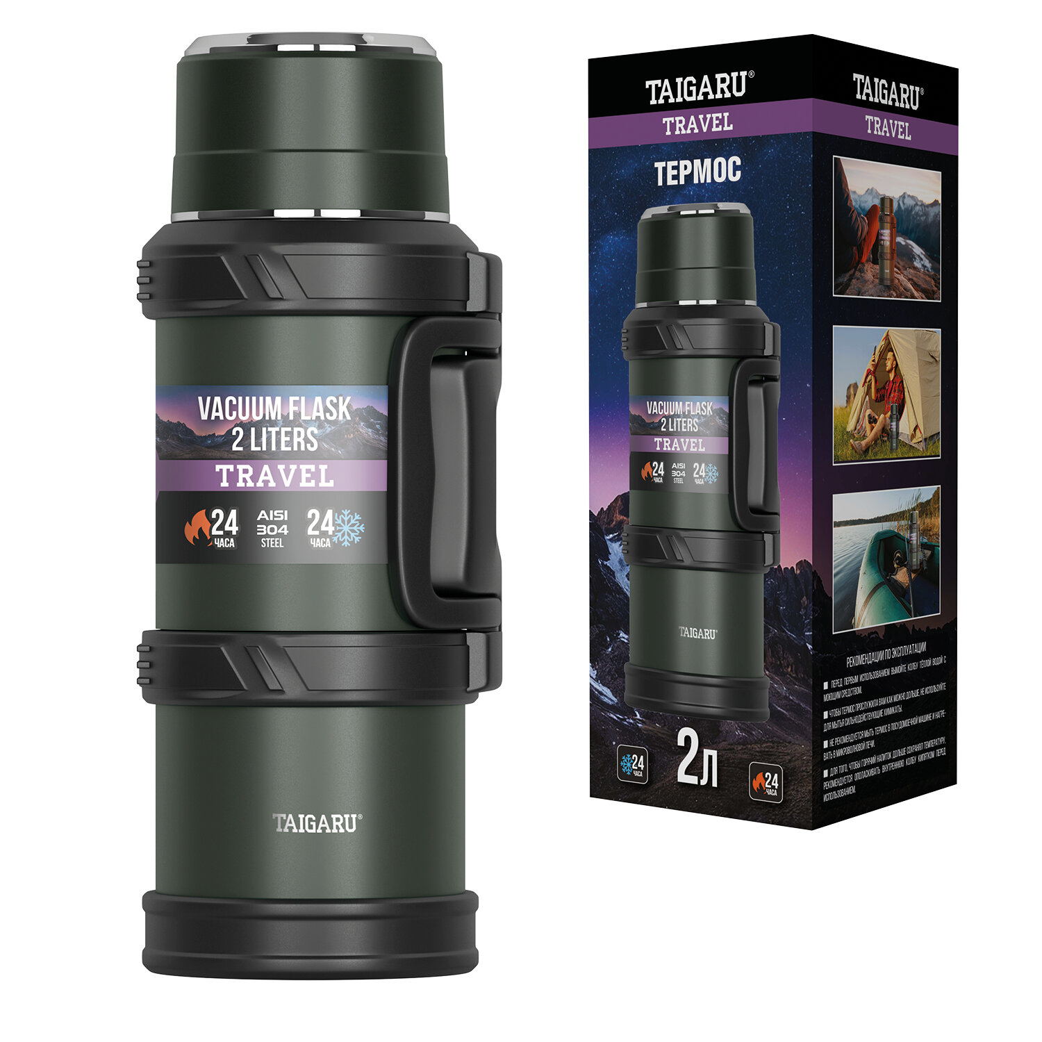 Термос 2 л TAIGARU (ТАЙГАРУ) TRAVEL, нержавеющая сталь SUS304, 2 кружки, скрытая ручка, ситечко, темно-зеленый Код товара: 700316 1 502,36 ₽ Купить Производитель:TAIGARU Удобный термос TAIGARU с эргономичной ручкой – идеальное решение для путешествий, семейных выездов или пикников. Сохраняет температуру до 24 часов, легко переносится благодаря надёжной ручке. Большой объём делает его отличным выбором для компании. Термос TAIGARU TRAVEL сделан из нержавеющей стали SUS304. Использование материалов высокого качества, вакуумная конструкция с двойными стенками и качественные силиконовые уплотнители делают термос полностью герметичным, безопасным для здоровья, позволяет удерживать температуру до 24 часов и не протекает при использовании. Удержание температуры также зависит от условий использования: частоты открывания, времени нахождения в открытом состоянии, температуры окружающей среды, начальной температуры наливаемой жидкости. Корпус имеет порошковое покрытие глубокого темно-зеленого цвета, которое не только обеспечивает термосу стильный дизайн, но и препятствует появлению мелких царапин при долгосрочном использовании. Термос TAIGARU снабжен черным пластиковым каркасом, имеющим удобную скрытую раскладывающуюся ручку для удобной переноски. В комплект входят две крышки-кружки: основная и дополнительная пластиковая. Конструкция термоса включает в себя продуманную систему герметизации: эргономичная винтовая пробка с удобным кнопочным механизмом обеспечивает лёгкость использования, а высококачественные силиконовые уплотнители гарантируют абсолютную защиту от протекания. Особого внимания заслуживает встроенное фильтрующее ситечко, которое эффективно задерживает чайные листья и другие компоненты напитка, позволяя наслаждаться чистым и безупречным вкусом прямо из термоса. Термос TAIGARU высотой 33,3 см имеет диаметр горлышка 6,2 см, диаметр донышка – 11,5 см, а вместе с пластиковым каркасом – 13,5 см. Объем – 2 л.Производство: КитайОбъем: 2 лТип горла: узкоеНаличие ручки: даКомплектация: дополнительная кружкаСерия: TRAVELВысота: 33.3 смДиаметр: 11.5 смЦвет: темно-зеленыйМатериал: нержавеющая сталь 304Тип упаковки: картонная коробкаВес: 1,38 кгРазмер упаковки: 13.1 × 34.8 × 13.8 смОбъём: 0.0076 м3Промежуточная упаковка: 12 штТранспортная упаковка: 12 штШтрих-код: 4606224473574 Сертификат-1.jpg Сертификат-2.jpg