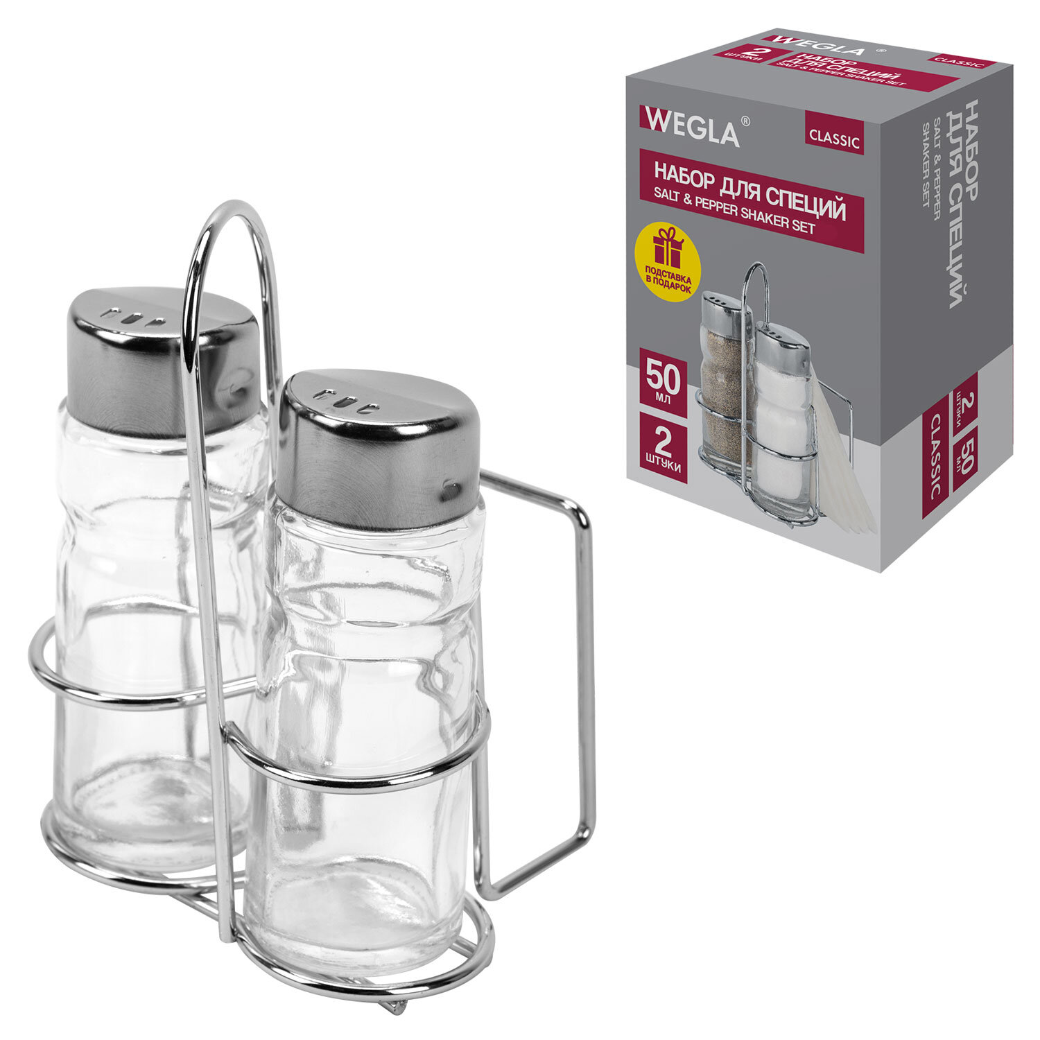 Набор для специй 2х50 мл, CLASSIC, салфетница/подставка + солонка + перечница, WEGLA (ВЕГЛА)