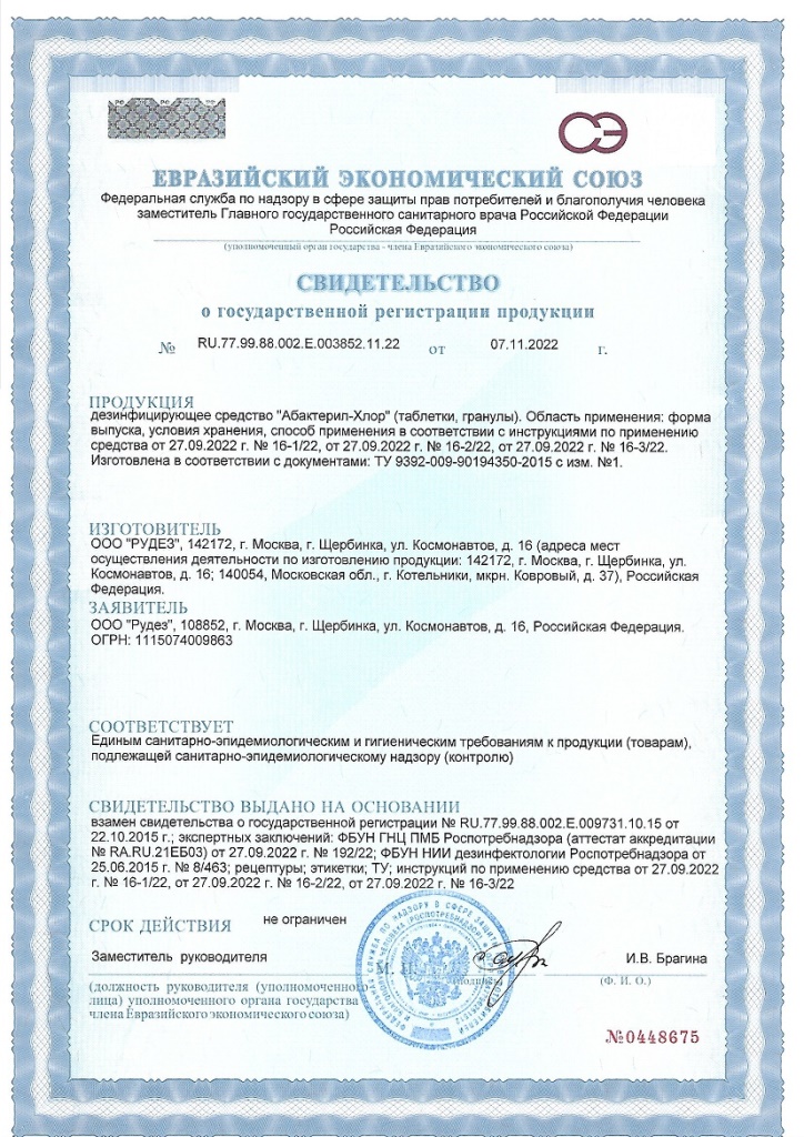 Токсичность и безопасность дезинфицирующего средства «Абактерил-хлор»: