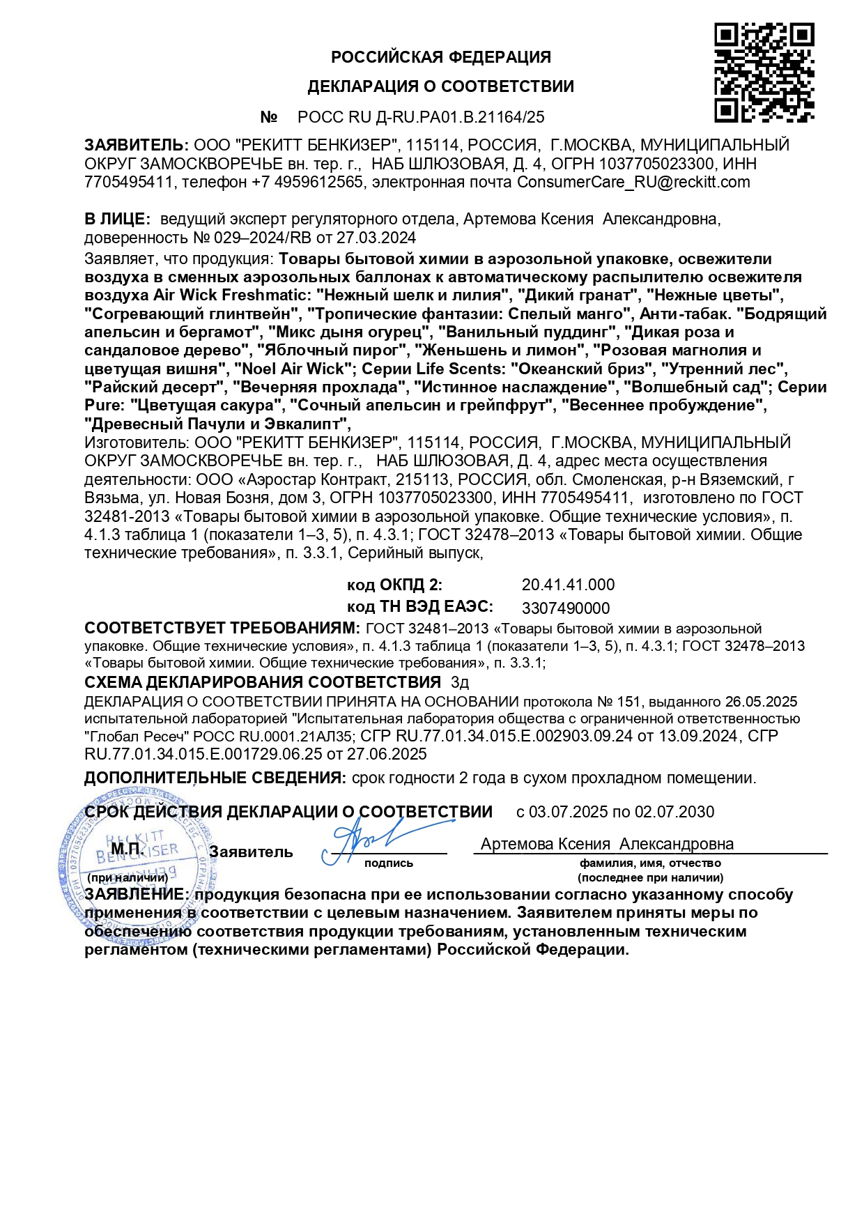 Сменный баллон 250 мл, AIRWICK Freshmatic "Цветущая сакура" Код товара: 701769 419,54 ₽ Купить Производитель:AIRWICK Освежитель воздуха в сменных аэрозольных баллонах к автоматическому распылителю освежителя воздуха AIRWICK Freshmatic "Цветущая сакура". Сменный баллон освежителя воздуха поможет поддерживать в доме приятный и свежий аромат. Средство прекрасно борется с любыми нежелательными запахами. Его можно устанавливать на кухне, в ванной комнате или туалете. Аэрозоль не оставляет разводов и других следов на занавесках, мебели и других предметах. Состав: 30% и более: пропеллент (смесь: Пропан, Бутан), этиловый денатурированный спирт; менее 5%: ароматизирующие добавки, в том числе альфа-изометилионон, амилциннамаль, бензилбензоат, цитронеллол, лимонен, линалоол. Может вызвать аллергическую реакцию. Не содержит озоноразрушающих веществ.Производство: РоссияДиспенсерная система: AIRWICK, GLADEОбъем картриджа: 250 млСерия: AIRWICK FreshmaticОтдушка: цветущая сакураСрок годности: 24 месВес: 243 грРазмер упаковки: 6.6 × 15.2 × 6.6 смОбъём: 0.0008 м3Промежуточная упаковка: 6 штТранспортная упаковка: 6 штШтрих-код: 4640018996207 Сертификат-1.jpg Сертификат-2.jpg Сертификат-3.jpg