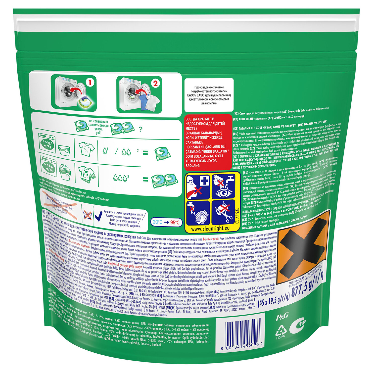 Капсулы для стирки белья 45 шт. ARIEL (Ариэль) "Color" Код товара: 606534 3 672,17 ₽ Купить Производитель:ARIEL Превосходное удаление пятен с 1-ой стирки. Капсулы для стирки Ariel Pods имеют уникальный многосекционный дизайн, позволяющий сохранять компоненты в отдельных секциях капсулы до начала стирки, обладают высококонцентрированными очищающими свойствами. Капсулы для стирки ARIEL "Color" 45 штук подходят для стирки цветного и белого белья. Благодаря уникальному многосекционному дизайну, превосходное очищение еще никогда не было удобнее. Каждая капсула содержит комплекс мощных активных ингредиентов для эффективного отстирывания. Оболочка растворяется даже в холодной воде. Достаточно лишь добавить капсулу в барабан стиральной машины до загрузки белья. Ariel капсулы содержат высокую концентрацию очищающих веществ: одной капсулы хватит для стирки 4-5 кг белья – для стирки того же количества потребовалось бы 65 мл геля для стирки ARIEL. А выгодная упаковка 45 штук позволяет сэкономить на каждой стирке по сравнению с покупкой маленькой упаковки. Преимущества жидкого средства для стирки ARIEL: • прекрасно отстирывает сложные пятна даже при температуре 20 °C; • невероятная чистота в одной капсуле для стирки; • обеспечивает безупречное отстирывание и яркость цвета; • превосходная чистота даже при 20°C; • простота использования: не нужно отмерять и наливать; • не содержит фосфатов и хлорных отбеливателей. Капсулы ARIEL Color также доступны в упаковке 60 штук с еще более выгодной ценой за каждую стирку. Храните упаковки капсул в месте, недоступном для детей. Состав: > 30% анионные ПАВ; 5-15% неионогенные ПАВ, мыло; не более 5% фосфонаты; энзимы, оптические отбеливатели, ароматизаторы, альфа-изометилионон, бензилсалицилат, цитронеллол, кумарин, гексил циннамал, линалоол. Меры предосторожности: беречь от детей. Риск серьёзного повреждения глаз. Вызывает раздражение кожи. Избегать попадания на кожу и в глаза. При попадании в глаза немедленно промыть их большим количеством проточной воды и обратиться за медицинской помощью. Используйте средства защиты глаз/лица. При проглатывании немедленно обратиться за медицинской помощью и предъявить упаковку или этикетку продукции. Хранить вдали от пищевых продуктов. при повышенной чувствительности и повреждениях кожи избегать длительного контакта с любыми средствами для стирки. Содержит линалоол, изоэвгенол, тетраметил ацетилоктагидронафталины. Может вызвать аллергическую реакцию.Производство: ФранцияТип: автоматВес/Объем: 1071 г/млВид средства: капсулыНазначение : для цветногоОтдушка: отсутствуетКоличество капсул/стиков: 45 шт.Количество бункеров: 3 шт.Серия: ColorВид упаковки: дой-пакСрок годности: 18 месВес: 967 грРазмер упаковки: 8.2 × 26 × 23.6 смОбъём: 0.0044 м3Промежуточная упаковка: 3 штТранспортная упаковка: 3 штШтрих-код: 8001841456096 Сертификат-1.jpg