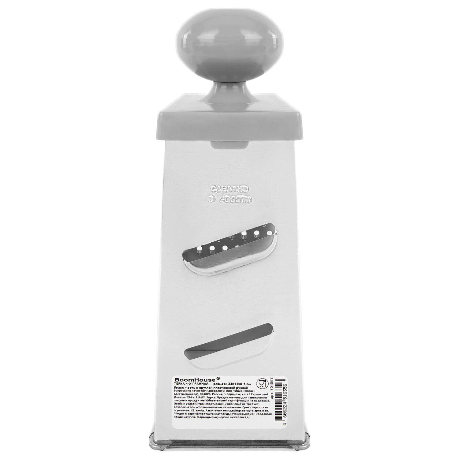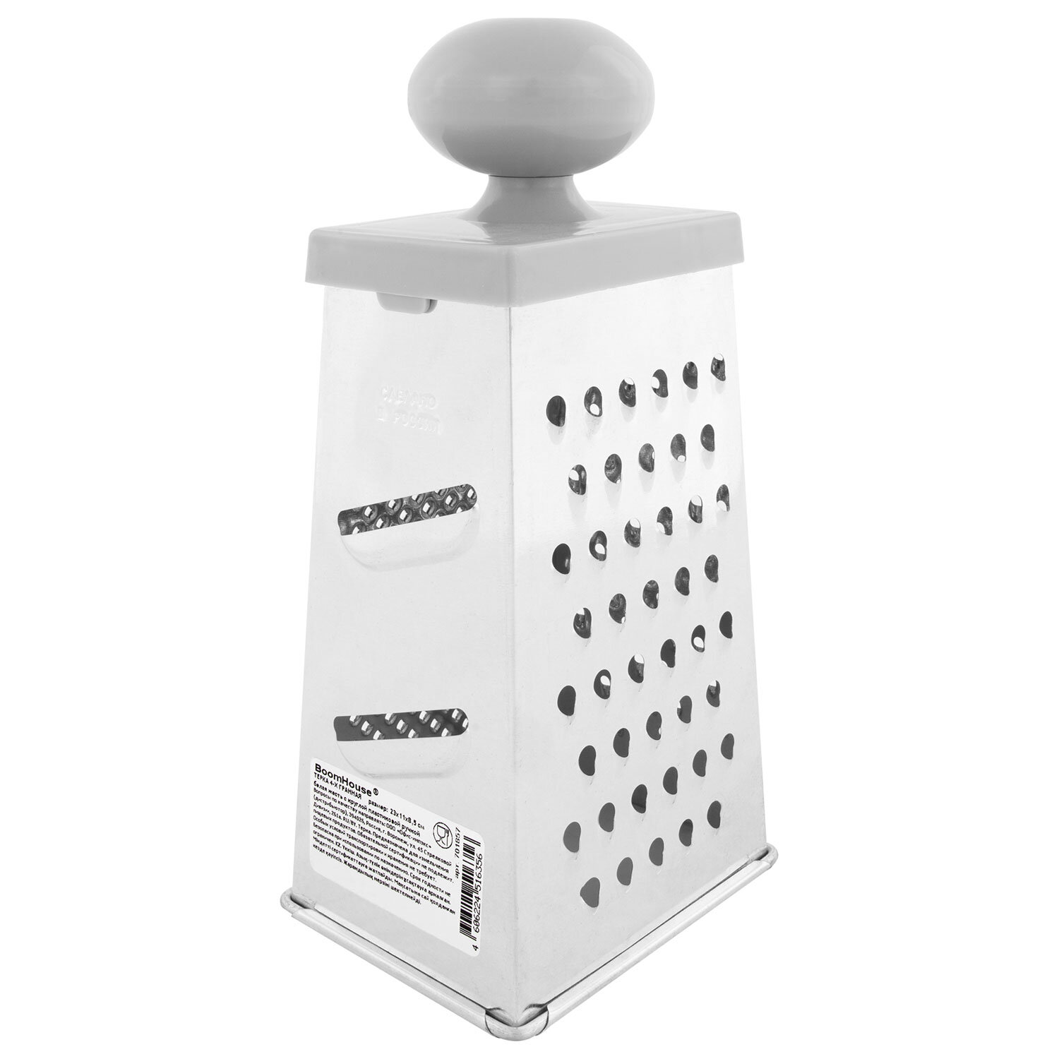 Многие кухонные инструменты, в особенности терки и овощерезки, находятся в прямом контакте с пищевыми продуктами, поэтому важную роль играет материал, из которого сделано устройство. Терки BOOMHOUSE изготовлены из качественных материалов, которые соответствуют всем требования безопасности – это белая пищевая жесть и полипропилен.