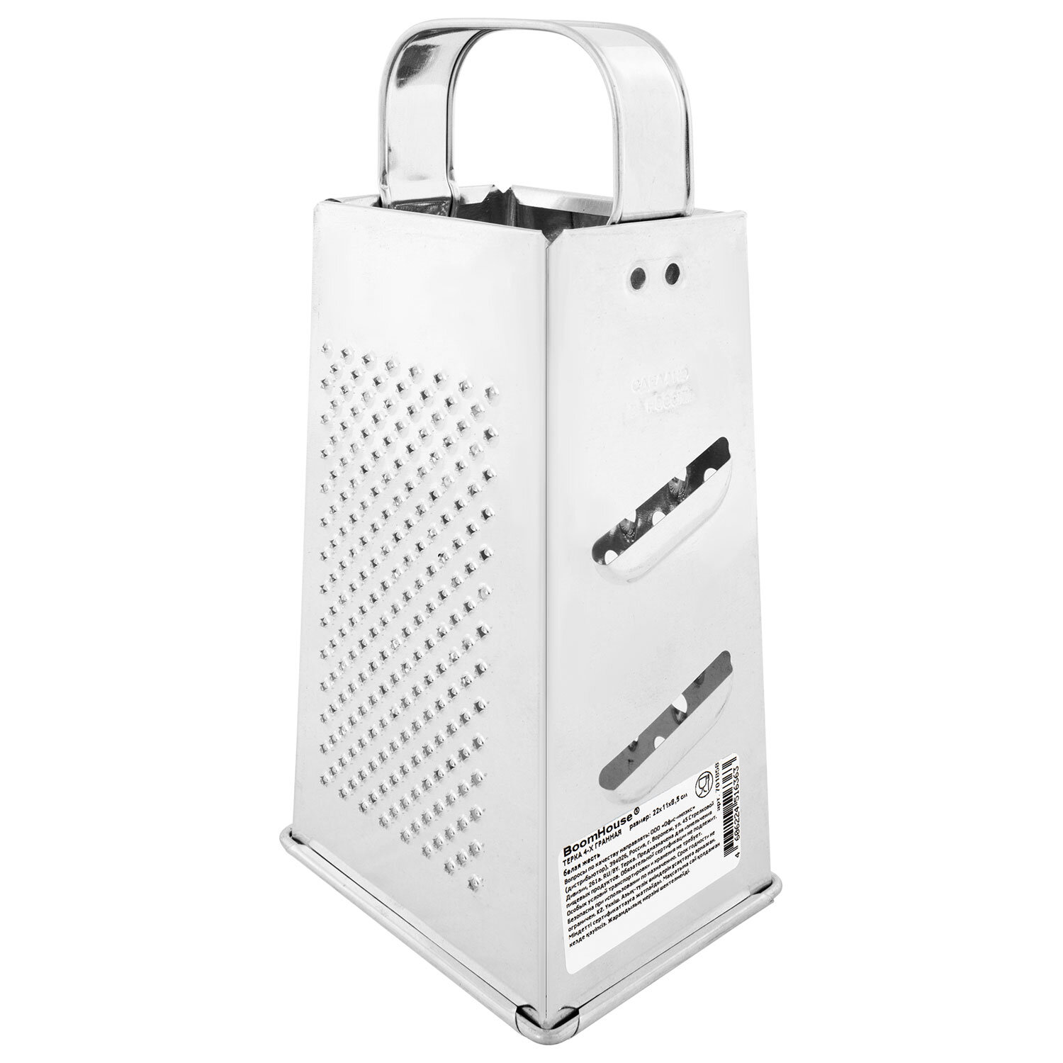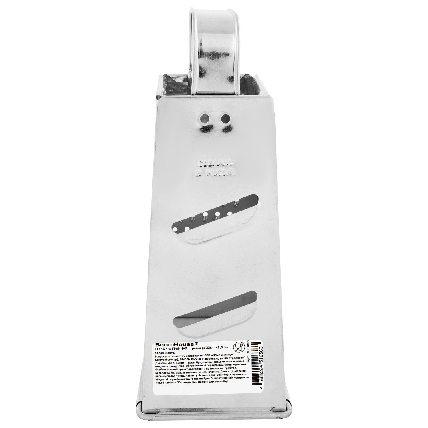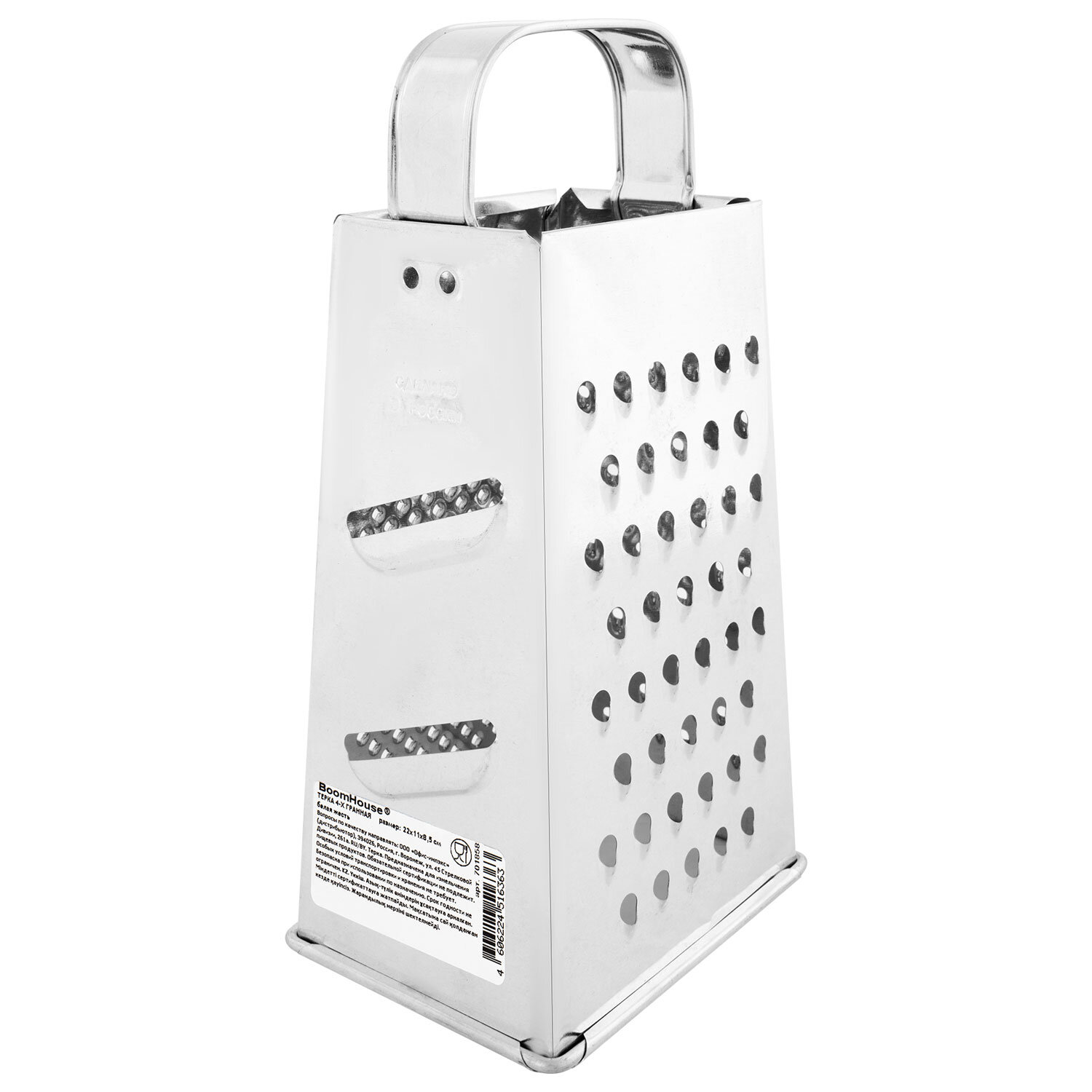 Многие кухонные инструменты, в особенности терки и овощерезки, находятся в прямом контакте с пищевыми продуктами, поэтому важную роль играет материал, из которого сделано устройство. Терка BOOMHOUSE изготовлена из качественного материала, который соответствует всем требования безопасности – это белая пищевая жесть.