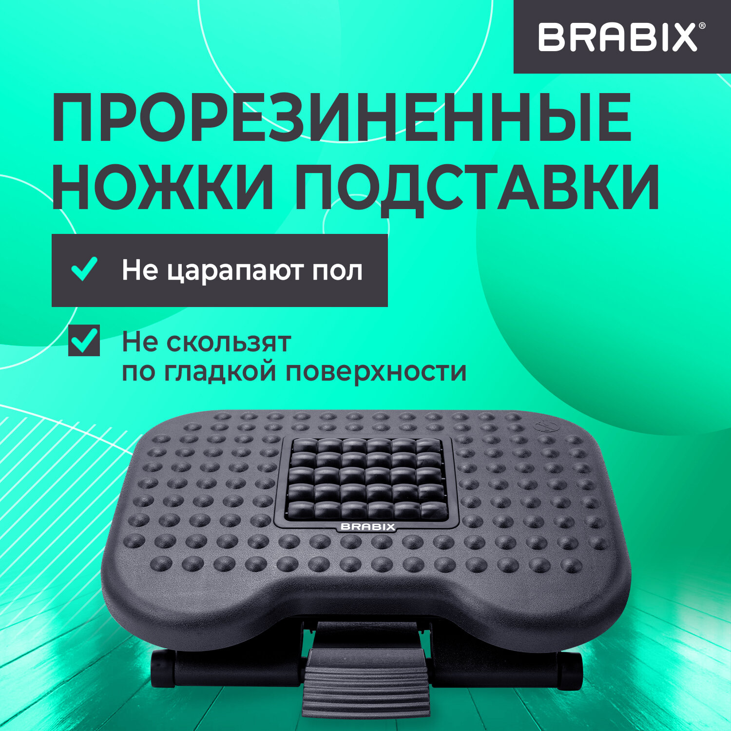 Подставка для ног BRABIX "Ultra 2" 44х34 см, массажер, регулировка высоты и угла наклона Код товара: 533037 2 224,33 ₽ Купить Производитель:BRABIX Подставка для ног из пластика с массажной поверхностью и регулируемой высотой и углом наклона идеально подходит для тех, кто проводит много времени сидя. Это отличное решение для офисных работников, студентов и всех, кто заботится о своем здоровье. Представляет собой устойчивую и прочную пластиковую конструкцию с размером платформы 44х34 см. Имеет регулируемый угол наклона от 0 до 30°. Основание подставки снабжено покрытием, препятствующим скольжению, в центре платформы размещены крутящиеся массажные ролики.Производство: КитайДлина: 34 смШирина: 44 смВысота: 10.5 смВарианты регулировки: угол наклона (0-30°)Количество платформ: 1 шт.Наличие фиксатора: даПротивоскользящее основание: даФактура платформы: рифленая c массажными роликамиСерия: UltraМатериал: пластикЦвет: черныйТип упаковки: фирменная картонная коробкаВес: 2,47 кгРазмер упаковки: 11.4 × 44.2 × 34.7 смОбъём: 0.0193 м3Промежуточная упаковка: 5 штТранспортная упаковка: 5 штШтрих-код: 4606224454634 Сертификат-1.jpg Сертификат-2.jpg Сертификат-3.jpg
