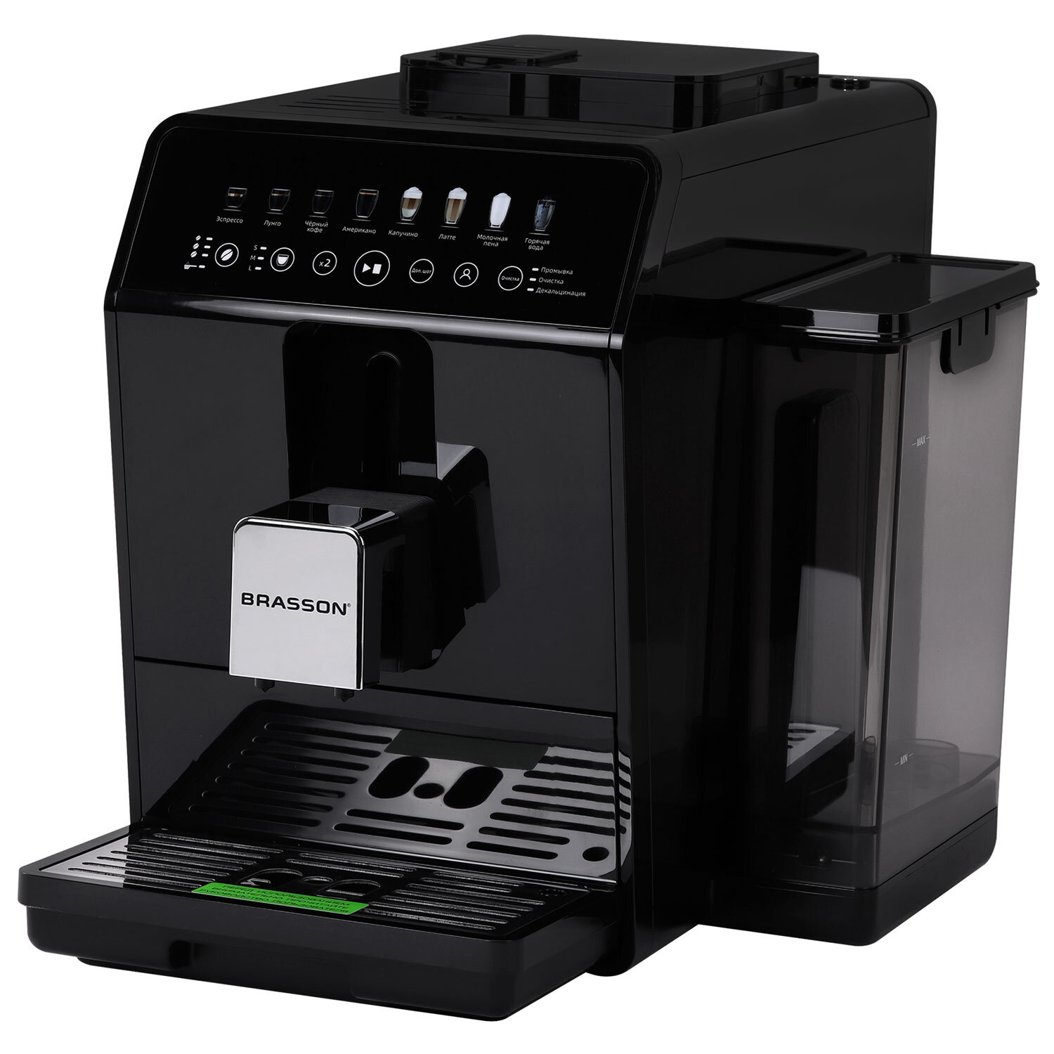 Кофемашина автоматическая BRASSON (БРАССОН) ACM-1592B, дисплей, капучинатор, 13 напитков, 1450 Вт, 20 бар Код товара: 457887 32 275,84 ₽ Купить Производитель:BRASSON Кофемашина BRASSON ACM-1592B превращает процесс приготовления идеального напитка в простое и приятное занятие. Представьте себе профессиональную кофейню прямо у вас дома, где каждое утро начинается с чашки свежесваренного кофе. С помощью нашей кофемашины вы можете приготовить 8 напитков: эспрессо, американо, латте, капучино, лунго, черный кофе, молочную пену и горячую воду. Также вы можете сохранить 5 персональных напитков в зависимости от сохраненных настроек. В кофемашине есть выбор крепости и объема напитка, а также вы можете добавлять дополнительный шот в напитки с молоком или готовить двойной эспрессо. Мощность 1450 Вт является оптимальным показателем для современной автоматической кофемашины. Благодаря этому кофемашина обеспечивает быстрый нагрев воды, стабильное давление в системе и качественное приготовление кофе. Давление 20 бар является идеальным для приготовления эспрессо, обеспечивает интенсивную экстракцию кофе. Качественная итальянская помпа помогает достичь насыщенного аромата и вкуса кофе, густой и стойкой пены, а также улучшенную текстуру напитка. Кофемашина имеет встроенную жерновую кофемолку с 6 степенями помола, с помощью которой можно выбрать идеальную настройку для различных сортов кофе. Также возможно приготовление напитка из молотого кофе. Кофемашина управляется интуитивно понятным сенсорным дисплеем. Изделие имеет автоматический капучинатор, который создает воздушную молочную пену. В комплекте поставляется фильтр для воды.Производство: КитайМощность: 1450 ВтДавление: 20 БарЕмкость резервуара для воды: 1.5 лЕмкость резервуара для зерен: 150 гИспользуемый кофе: зерновой, молотыйКапучинатор: автоматическийТип нагревателя: термоблокАвтоматическая программа очистки от накипи: даАвтоматическая программа очистки от кофейного жира: даВстроенная кофемолка: жерноваяМатериал жерновов: нержавеющая стальЕмкость для молока: даСъемный лоток для сбора капель: даРегулируемый по высоте дозатор: даРегулировка степени помола: даРегулировка крепости кофе: даПодача горячей воды (для чая): даОдновременное приготовление двух чашек: даЖК-дисплей: даКомплектация: инструкция, мерная ложка, трубка для молока, фильтр для водыМатериал корпуса: пластикЦвет корпуса: черныйШирина: 360 ммВысота: 444 ммГлубина: 300.5 ммВес: 9.7 кгСерия: ACMРазмер упаковки: 37.7 × 51.2 × 42.8 смОбъём: 0.0826 м3Промежуточная упаковка: 1 штТранспортная упаковка: 1 штШтрих-код: 4606224502045 Файлы Приложение-1.pdf Сертификат-1.jpg Сертификат-2.jpg Сертификат-3.jpg Сертификат-4.jpg Сертификат-5.jpg Сертификат-6.jpg Сертификат-7.jpg
