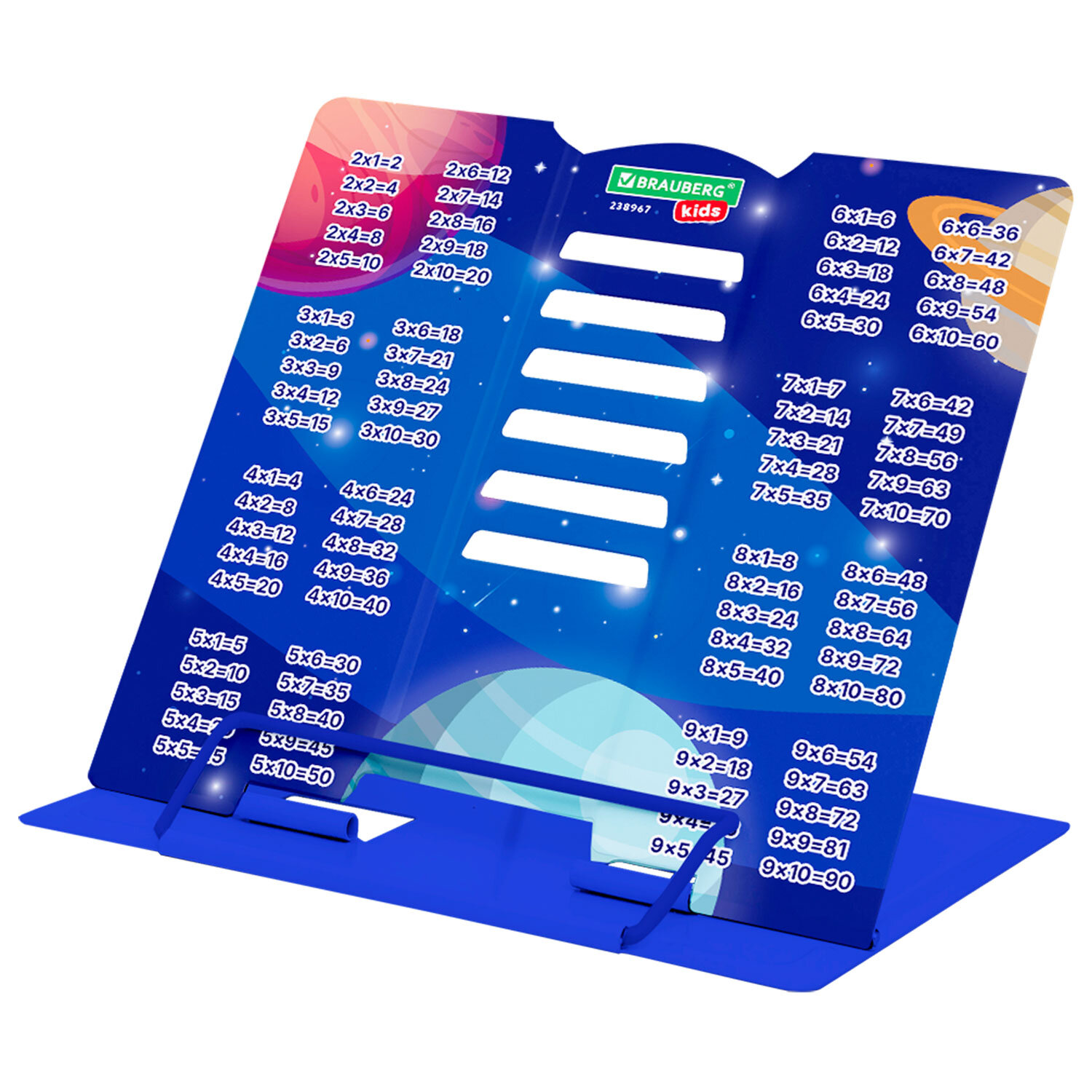 Подставка для книг и учебников BRAUBERG KIDS mini "Deep Space" с таблицей умножения, регулируемый угол наклона, металлическая Код товара: 238967 316 ₽ Купить Производитель:BRAUBERG KIDS Подставка для книг и учебников BRAUBERG KIDS mini станет незаменимым помощником для школьников и любителей чтения. Использование подставки для книг способствует формированию правильной осанки. Яркий дизайн станет изюминкой в любом интерьере. Подставка полностью выполнена из металла, поэтому отлично подойдет для надежной фиксации тяжелых и объемных учебных материалов и книг. Оригинальный дизайн понравится школьнику любого возраста, таблица умножения будет полезна в учебе. Регулируемый угол наклона обеспечивает удобство при работе с текстом, облегчает чтение и выполнение домашней работы. На нижней части подставки предусмотрены противоскользящие элементы. Размер подставки – 150х150х130 мм. Цвет – синий. Подставка упакована в прозрачный пакет с картонным европодвесом.Производство: КитайНазначение: для книг и учебниковРегулируемый угол наклона: даДержатель для страниц: нижнийСерия: Smart Shelf miniМатериал корпуса: металлВысота: 15 смШирина: 15 смЦвет: синийДизайн: DeepSpaceУпаковка: пакет с картонным европодвесомВес: 250 грРазмер упаковки: 1.5 × 15.2 × 12.8 смОбъём: 0.0005 м3Промежуточная упаковка: 48 штТранспортная упаковка: 48 штШтрих-код: 4606224508467