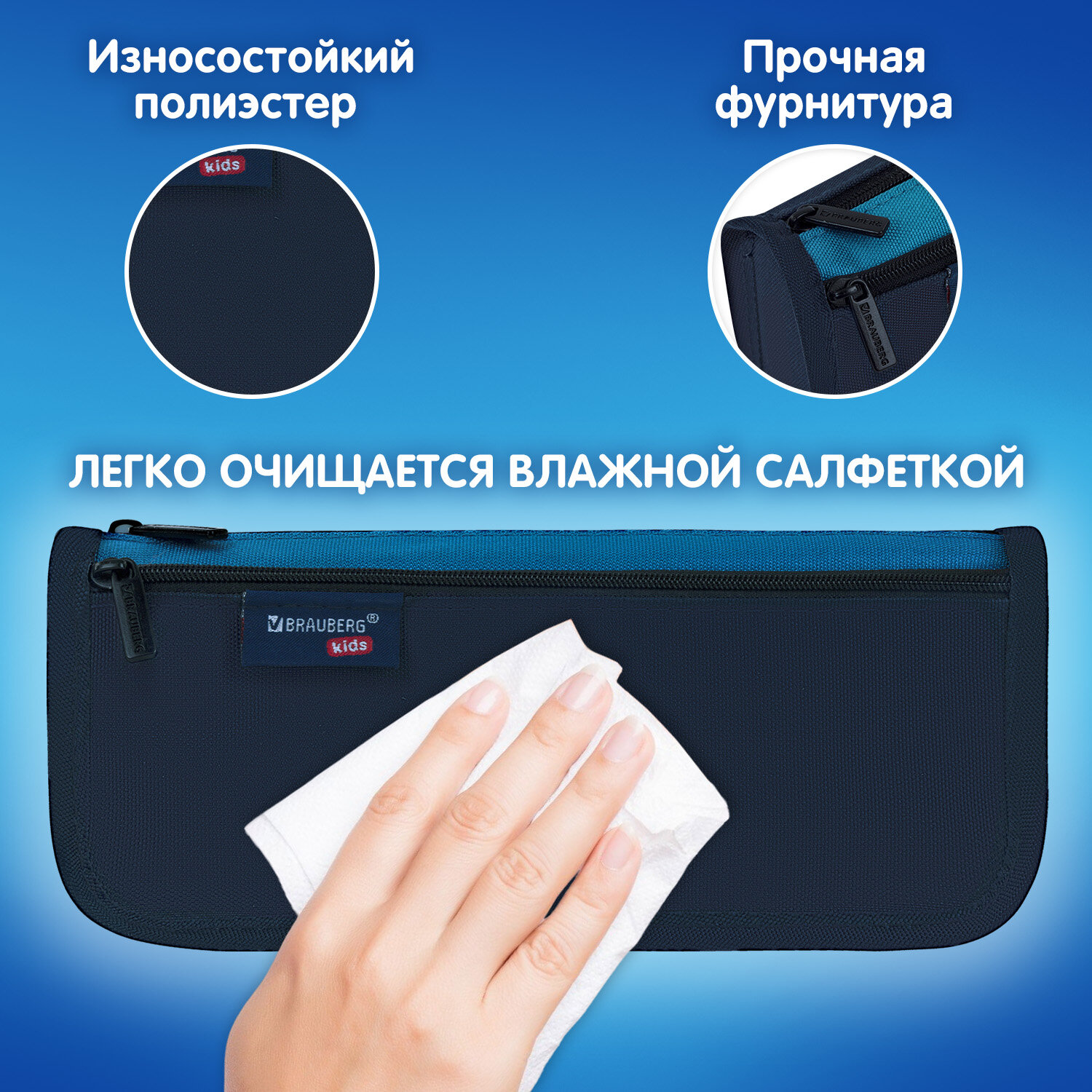 Пенал мягкий BRAUBERG KIDS, 2 отделения, полиэстер, "Dark blue", 22x10x6 см Код товара: 273551 215,73 ₽ Купить Производитель:BRAUBERG KIDS Пенал-косметичка BRAUBERG KIDS "Dark blue" предназначен для хранения школьных принадлежностей, вмещает до 50 канцелярских предметов стандартного размера. Выполнен из прочного полиэстера. Внутри пенала одно отделение с застежкой-молнией, оснащенной металлическим бегунком. Снаружи дополнительное отделение - карман с застежкой на молнии. Все молнии оснащены брендированными бегунками. Лаконичные контрастные цвета делают пенал универсальным, подходит как для школьников, так и для взрослых. Компактный, но вместительный пенал, размером 22х10х6 см, можно использовать не только для хранения канцелярских принадлежностей и принадлежностей для творчества, но и для повседневных мелочей, аксессуаров, таким образом может выполнять роль многофункционального несессера или косметички, который можно всегда взять с собой. Упакован в прозрачный полиэтиленовый пакет с европодвесом, который сохранит качество и товарный вид при хранении и транспортировке.Производство: КитайТип товара: пенал мягкийЗастежка: молнияНазначение: для мальчиковКоличество отделений: 2Материал: полиэстерСерия: DOUBLEДизайн: Dark blueБазовый цвет: темно-синийДлина: 22 смШирина: 10 смУпаковка: индивидуальная с европодвесомВес: 92 грРазмер упаковки: 5.4 × 22.2 × 9.8 смОбъём: 0.0013 м3Промежуточная упаковка: 36 штТранспортная упаковка: 72 штШтрих-код: 4606224495590 Сертификат-1.jpg Сертификат-2.jpg Сертификат-3.jpg