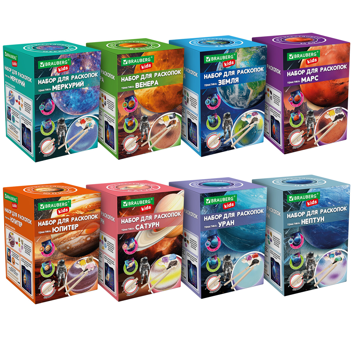 Набор для раскопок "Космос" 9,5х13,3 см, инструменты, 8 видов ассорти, BRAUBERG KIDS