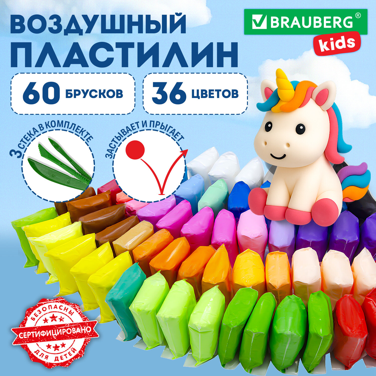 Гигантский набор! Включает в себя легкий пластилин высокого качества и три стека, которые помогают легко работать с кусочками пластилина и создавать даже миниатюрные поделки. Увеличенный набор из 60 брусков различных цветов позволит ребенку создать многоцветную поделку, картину или небольшую скульптуру.