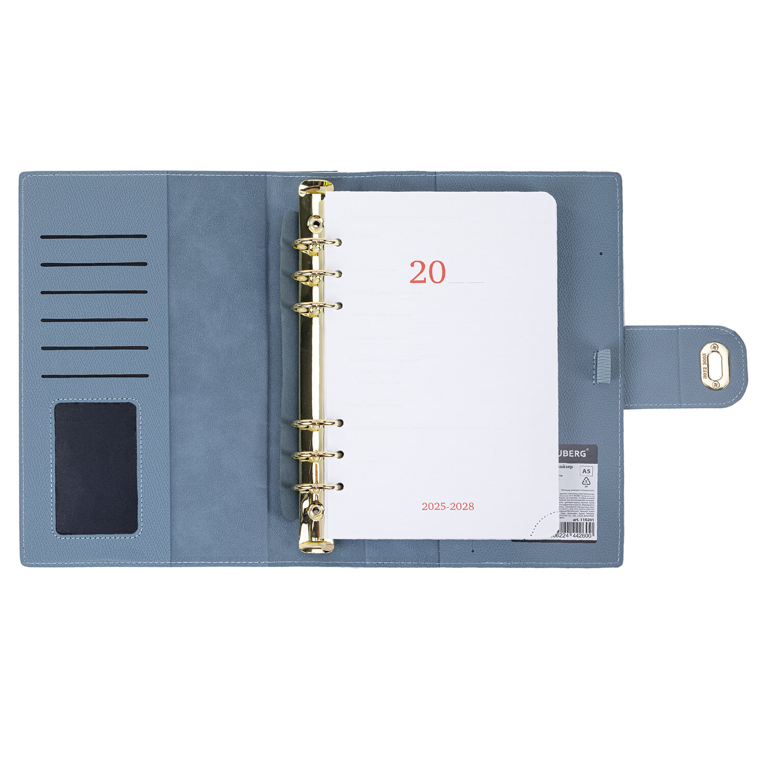 Ежедневник-органайзер недатированный B5 167х240 мм, BRAUBERG "Nova", под кожу, 160 л., голубой Код товара: 116201 731,98 ₽ Купить Производитель:BRAUBERG Недатированный ежедневник-органайзер BRAUBERG "Nova" выполнен в оригинальном стиле. Сочетает в себе удобство ежедневника и функциональность органайзера. Твердая обложка с кольцевым механизмом оснащена дополнительными карманами для хранения бумаг, карточек и мелочей. Съемный внутренний блок включает 160 листов белой бумаги плотностью 70 г/м2. Благодаря формату B5 (167х240мм) ежедневник удобно использовать как в офисе, так и на выездных деловых встречах. Ежедневник снабжен стильной застежкой с поворотным механизмом, благодаря чему он не откроется в сумочке или портфеле, и листы не помнутся. Дополнением является держатель для ручки, что позволяет держать при себе все самое необходимое. Ежедневник содержит обширный справочный материал, а также 7 страниц для записей и заметок. Уголки – закругленные.Производство: КитайТип ежедневника: недатированныйФормат: В5Обложка: под кожуВид обложки: твердаяКоличество листов: 160 шт.Особенности: перфорация уголков, скругленные углы, справочная информация, фиксатор для ручкиСерия: NovaТип застежки: ремешок и застёжкаОсновной цвет обложки: голубойДополнительный цвет обложки: нетЦвет среза: нетЦвет внутреннего блока: белыйПлотность внутреннего блока: 70 г/м2Высота строки для записи: 5 ммТип крепления: кольцевой механизмПечать блока: 2 краскиПодходит для блинтового тиснения: даПодходит для тиснения фольгой: даДлина: 240 ммШирина: 167 ммТолщина: 25 ммВес: 641 грРазмер упаковки: 3.6 × 24.2 × 18.2 смОбъём: 0.0021 м3Промежуточная упаковка: 20 штТранспортная упаковка: 20 штШтрих-код: 4606224442600 Файлы Сертификат-1.jpg Сертификат-2.jpg Сертификат-3.jpg Сертификат-4.jpg Сертификат-5.jpg Сертификат-6.jpg Сертификат-7.jpg Сертификат-8.jpg Сертификат-9.jpg Сертификат-10.jpg Сертификат-11.jpg Сертификат-12.jpg Сертификат-13.jpg Сертификат-14.jpg Сертификат-15.jpg Сертификат-16.jpg Сертификат-17.jpg Сертификат-18.jpg Сертификат-19.jpg Сертификат-20.jpg Сертификат-21.jpg Сертификат-22.jpg Сертификат-23.jpg Сертификат-24.jpg Сертификат-25.jpg Сертификат-26.jpg