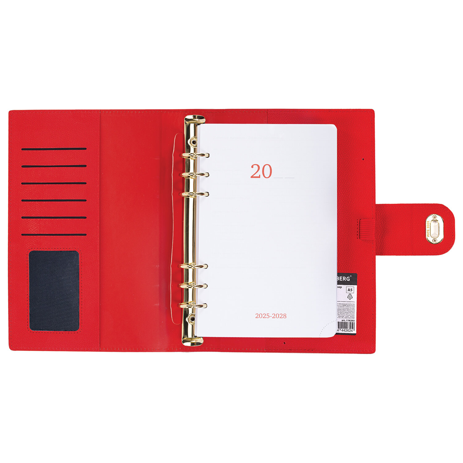 Ежедневник-органайзер недатированный B5 167х240 мм BRAUBERG "Nova", под кожу, 160 л., красный Код товара: 116203 731,98 ₽ Купить Производитель:BRAUBERG Недатированный ежедневник-органайзер BRAUBERG "Nova" выполнен в оригинальном стиле. Сочетает в себе удобство ежедневника и функциональность органайзера. Твердая обложка с кольцевым механизмом оснащена дополнительными карманами для хранения бумаг, карточек и мелочей. Съемный внутренний блок включает 160 листов белой бумаги плотностью 70 г/м2. Благодаря формату B5 (167х240мм) ежедневник удобно использовать как в офисе, так и на выездных деловых встречах. Ежедневник снабжен стильной застежкой с поворотным механизмом, благодаря чему он не откроется в сумочке или портфеле, и листы не помнутся. Дополнением является держатель для ручки, что позволяет держать при себе все самое необходимое. Ежедневник содержит обширный справочный материал, а также 7 страниц для записей и заметок. Уголки – закругленные.Производство: КитайТип ежедневника: недатированныйФормат: В5Обложка: под кожуВид обложки: твердаяКоличество листов: 160 шт.Особенности: перфорация уголков, скругленные углы, справочная информация, фиксатор для ручкиСерия: NovaТип застежки: ремешок и застёжкаОсновной цвет обложки: красныйДополнительный цвет обложки: нетЦвет среза: нетЦвет внутреннего блока: белыйПлотность внутреннего блока: 70 г/м2Высота строки для записи: 5 ммТип крепления: кольцевой механизмПечать блока: 2 краскиПодходит для блинтового тиснения: даПодходит для тиснения фольгой: даДлина: 240 ммШирина: 167 ммТолщина: 25 ммВес: 640 грРазмер упаковки: 4 × 24.1 × 18.3 смОбъём: 0.0021 м3Промежуточная упаковка: 20 штТранспортная упаковка: 20 штШтрих-код: 4606224442624 Файлы Сертификат-1.jpg Сертификат-2.jpg Сертификат-3.jpg Сертификат-4.jpg Сертификат-5.jpg Сертификат-6.jpg Сертификат-7.jpg Сертификат-8.jpg Сертификат-9.jpg Сертификат-10.jpg Сертификат-11.jpg Сертификат-12.jpg Сертификат-13.jpg Сертификат-14.jpg Сертификат-15.jpg Сертификат-16.jpg Сертификат-17.jpg Сертификат-18.jpg Сертификат-19.jpg Сертификат-20.jpg Сертификат-21.jpg Сертификат-22.jpg Сертификат-23.jpg Сертификат-24.jpg Сертификат-25.jpg Сертификат-26.jpg
