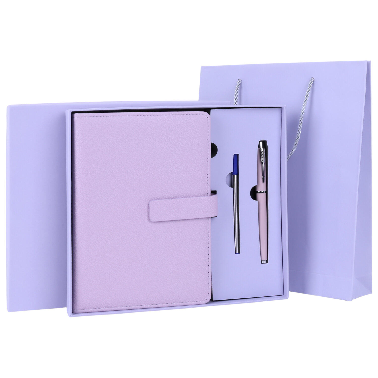 Ежедневник в подарочном наборе 5 в 1, А5, 145x212 мм, BRAUBERG "President", под кожу, 160 листов, сиреневый Код товара: 116853 964,54 ₽ Купить Производитель:BRAUBERG Недатированный ежедневник в подарочном наборе BRAUBERG "President" – ваш идеальный подарок. Стильный ежедневник и аксессуары к нему помогут каждому современному человеку тщательно планировать свое время и не забывать о приоритетных задачах. Подарочный набор включает в себя недатированный ежедневник с внутренним блоком из 160 листов кремовой бумаги плотностью 70 г/м2. Каждая страничка имеет перфорированный угол. Благодаря классическому формату А5 (145x212 мм) ежедневник удобно использовать как в офисе, так и на выездных деловых встречах. Твердая обложка стилизована под текстурную кожу. Ежедневник фиксируется магнитной застежкой, поэтому не откроется в сумке или портфеле и страницы не помнутся. Дополнениями являются закладка-ляссе и держатель для ручки. Pучка со стильным корпусом в тон ежедневника и высококачественными чернилами также входит в набор. Сменный стержень в комплекте позволит дольше наслаждаться мягким письмом. Набор упакован в плотную подарочную картонную коробку. В комплекте поставляется прочный и стильный подарочный бумажный пакет. Все элементы набора выполнены в одном цвете.Производство: КитайСерия: PresidentКоличество предметов в наборе: 5 шт.Обложка предметов набора: под текстурную кожуКомплектация: недатированный ежедневник A5, подарочная коробка, подарочный пакет, ручка, стерженьЦвет среза: нетЦвет: сиреневыйПодходит для персонализации: горячее тиснениеТип ежедневника: недатированныйПодарочная коробка, покрытая дизайнерской бумагой: даВнутри подарочной коробки: ложемент из ЭВА (EVA)Срок годности: 60 месВес: 909 грРазмер упаковки: 5.8 × 28.8 × 25 смОбъём: 0.0049 м3Промежуточная упаковка: 20 штТранспортная упаковка: 20 штШтрих-код: 4606224478739 Сертификат-1.jpg Сертификат-2.jpg Сертификат-3.jpg