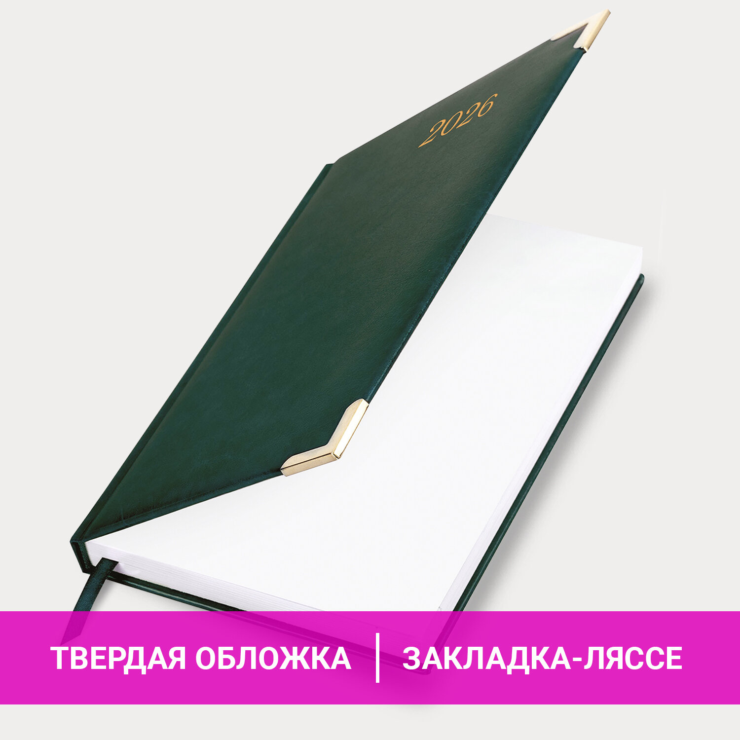 Ежедневник датированный 2026 А5 138x213мм BRAUBERG Senator, под кожу, зеленый Код товара: 117092 475,45 ₽ Купить Производитель:BRAUBERG Датированный ежедневник BRAUBERG "Senator" предназначен для тех, кто обращает внимание на детали делового стиля. Обложка из материала, имитирующего гладкую глянцевую кожу, в сочетании с металлическими уголками делает его выразительным и практичным. Внутренний блок включает 168 листов белой бумаги плотностью 70 г/м2. Каждая страничка имеет перфорированный угол. Благодаря стандартному формату А5 (138х213 мм) ежедневник удобно использовать как в офисе, так и на выездных деловых встречах. Твердая обложка благородного зеленого цвета стилизована под гладкую кожу. Подходит для горячего тиснения. Ежедневник имеет металлические уголки, что придает ему особый шарм. Дополнением является закладка-ляссе, с помощью которой при необходимости можно быстро открыть ежедневник на нужной странице. Обширный справочный материал дополнительно расширяет функциональность ежедневника. В конце внутреннего блока есть 4 страницы для записей и заметок. Датированный ежедневник BRAUBERG "Senator" идеально подойдет для офисных работников и людей, занимающихся бизнесом.Производство: КитайТип ежедневника: датированныйФормат: А5Обложка: под гладкую кожуВид обложки: твердаяКоличество листов: 168 шт.Особенности: закладка-ляссе, металлические углы, перфорация уголков, поролоновая прослойка, справочная информацияСерия: SenatorГод: 2026Тип застежки: нетОсновной цвет обложки: зеленыйДополнительный цвет обложки: нетЦвет среза: белыйЦвет внутреннего блока: белыйПлотность внутреннего блока: 70 г/м2Высота строки для записи: 4 ммТип крепления: сшивкаПечать блока: 2 краскиПодходит для блинтового тиснения: даПодходит для тиснения фольгой: даПодходит для заливки полимерной смолой: даПодходит для УФ-печати: даПодходит для тампопечати: даДлина: 213 ммШирина: 138 ммТолщина: 20 ммВес: 477 грРазмер упаковки: 2.4 × 21.5 × 14.2 смОбъём: 0.001 м3Промежуточная упаковка: 20 штТранспортная упаковка: 20 штШтрих-код: 4606224487687 Файлы Сертификат-1.jpg Сертификат-2.jpg Сертификат-3.jpg Сертификат-4.jpg Сертификат-5.jpg Сертификат-6.jpg Сертификат-7.jpg Сертификат-8.jpg Сертификат-9.jpg Сертификат-10.jpg Сертификат-11.jpg Сертификат-12.jpg Сертификат-13.jpg Сертификат-14.jpg Сертификат-15.jpg Сертификат-16.jpg Сертификат-17.jpg Сертификат-18.jpg Сертификат-19.jpg Сертификат-20.jpg Сертификат-21.jpg Сертификат-22.jpg Сертификат-23.jpg Сертификат-24.jpg Сертификат-25.jpg Сертификат-26.jpg