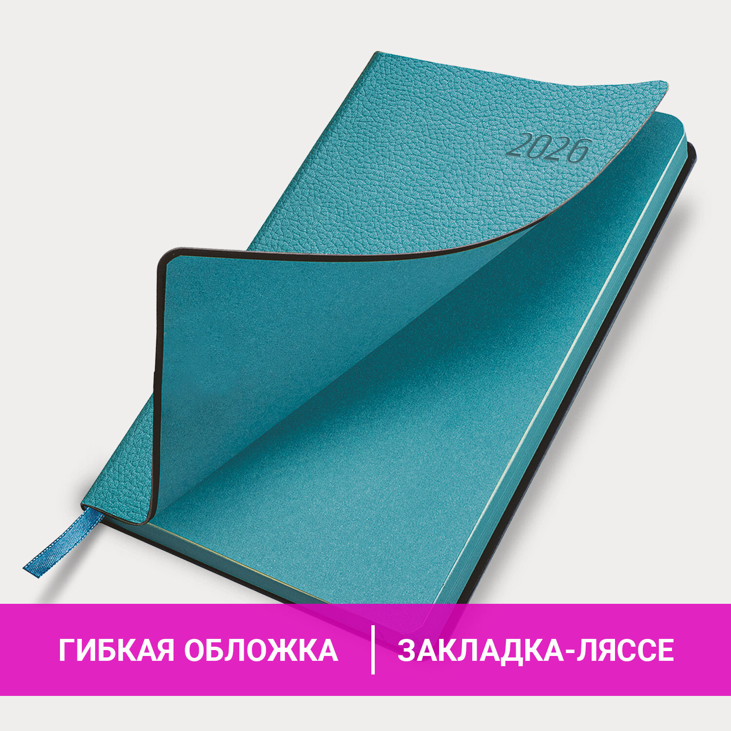 Ежедневник датированный 2026 А5 138x213 мм, BRAUBERG "Stylish", под кожу, гибкий, бирюзовый Код товара: 117098 457,24 ₽ Купить Производитель:BRAUBERG Датированный ежедневник BRAUBERG "Stylish" с мягкой интегральной обложкой под фактурную кожу и прокрасом среза в цвет обложки – стильное и компактное решение для эффективного планирования и создания имиджа пунктуального человека. Внутренний блок включает 168 листов тонированной бумаги плотностью 70 г/м2. Каждая страничка имеет перфорированный угол. Благодаря стандартному формату А5 (138х213 мм) ежедневник удобно использовать как в офисе, так и на выездных деловых встречах. Мягкая (интегральная) обложка стилизована под фактурную кожу неординарного бирюзового цвета. Подходит для горячего тиснения. Дополнением является закладка-ляссе, с помощью которой при необходимости можно быстро открыть ежедневник на нужной странице. Ежедневник снабжен справочным материалом. В конце есть 4 страницы для записей и заметок. Датированный ежедневник BRAUBERG "Stylish" идеально подойдет для офисных работников и людей, занимающихся бизнесом.Производство: КитайТип ежедневника: датированныйФормат: А5Обложка: под фактурную кожуВид обложки: интегральнаяКоличество листов: 168 шт.Особенности: закладка-ляссе, перфорация уголков, скругленные углы, справочная информацияСерия: StylishГод: 2026Тип застежки: нетОсновной цвет обложки: бирюзовыйДополнительный цвет обложки: нетЦвет среза: бирюзовыйЦвет внутреннего блока: кремовыйПлотность внутреннего блока: 70 г/м2Высота строки для записи: 4 ммТип крепления: сшивкаПечать блока: 2 краскиПодходит для блинтового тиснения: даПодходит для тиснения фольгой: даДлина: 213 ммШирина: 138 ммТолщина: 18 ммВес: 402 грРазмер упаковки: 1.9 × 21.2 × 14.2 смОбъём: 0.0008 м3Промежуточная упаковка: 20 штТранспортная упаковка: 20 штШтрих-код: 4606224487748 Файлы Сертификат-1.jpg Сертификат-2.jpg Сертификат-3.jpg Сертификат-4.jpg Сертификат-5.jpg Сертификат-6.jpg Сертификат-7.jpg Сертификат-8.jpg Сертификат-9.jpg Сертификат-10.jpg Сертификат-11.jpg Сертификат-12.jpg Сертификат-13.jpg Сертификат-14.jpg Сертификат-15.jpg Сертификат-16.jpg Сертификат-17.jpg Сертификат-18.jpg Сертификат-19.jpg Сертификат-20.jpg Сертификат-21.jpg Сертификат-22.jpg Сертификат-23.jpg Сертификат-24.jpg Сертификат-25.jpg Сертификат-26.jpg