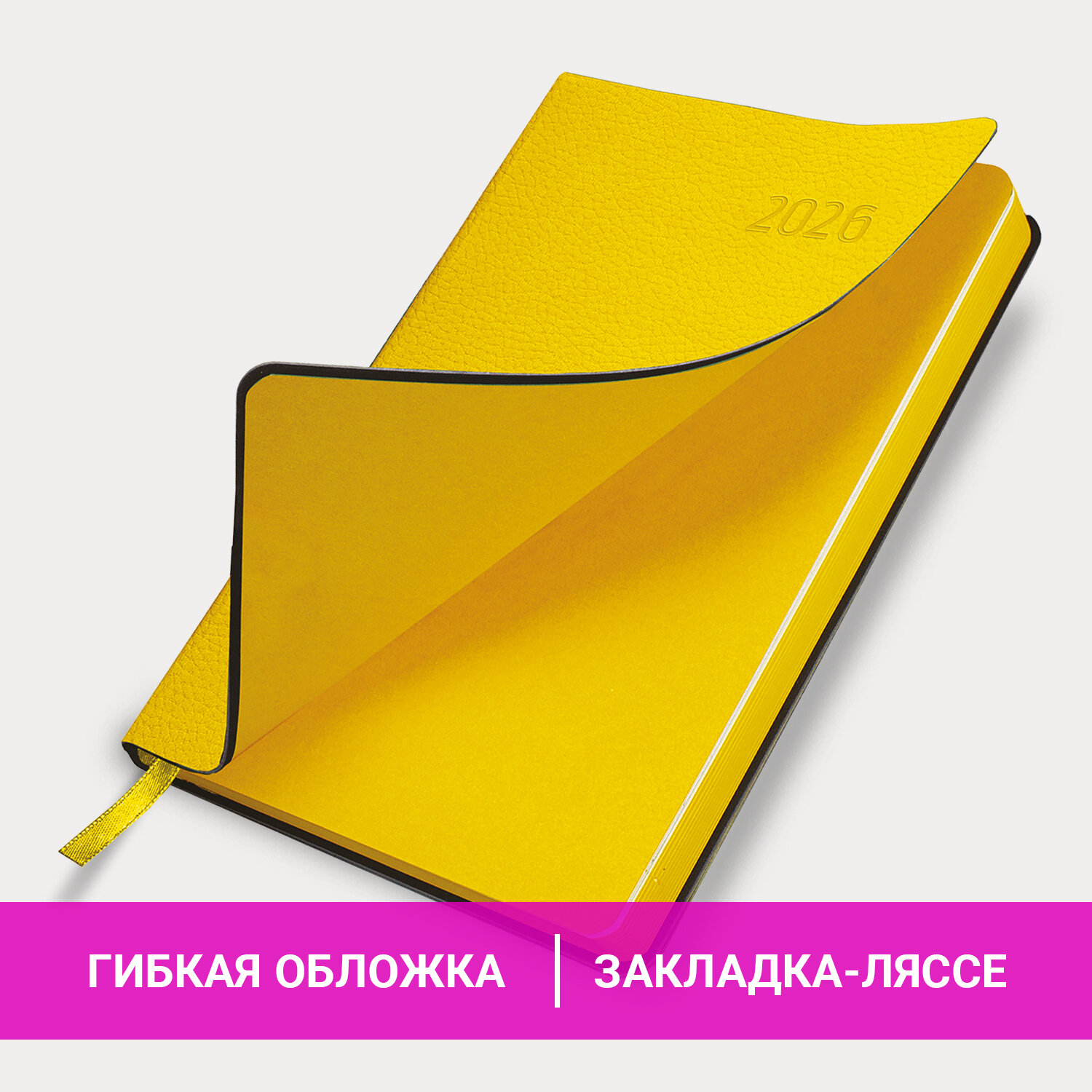 Ежедневник датированный 2026 А5 138x213 мм, BRAUBERG "Stylish", под кожу, гибкий, желтый Код товара: 117101 457,24 ₽ Купить Производитель:BRAUBERG Датированный ежедневник BRAUBERG "Stylish" с мягкой интегральной обложкой под фактурную кожу и прокрасом среза в цвет обложки – стильное и компактное решение для эффективного планирования и создания имиджа пунктуального человека. Внутренний блок включает 168 листов тонированной бумаги плотностью 70 г/м2. Каждая страничка имеет перфорированный угол. Благодаря стандартному формату А5 (138х213 мм) ежедневник удобно использовать как в офисе, так и на выездных деловых встречах. Мягкая (интегральная) обложка стилизована под фактурную кожу неординарного желтого цвета. Подходит для горячего тиснения. Дополнением является закладка-ляссе, с помощью которой при необходимости можно быстро открыть ежедневник на нужной странице. Помимо прочего, ежедневник снабжен справочным материалом. В конце есть 4 страницы для записей и заметок. Датированный ежедневник BRAUBERG "Stylish" идеально подойдет для офисных работников и людей, занимающихся бизнесом.Производство: КитайТип ежедневника: датированныйФормат: А5Обложка: под фактурную кожуВид обложки: интегральнаяКоличество листов: 168 шт.Особенности: закладка-ляссе, перфорация уголков, скругленные углы, справочная информацияСерия: StylishГод: 2026Тип застежки: нетОсновной цвет обложки: желтыйДополнительный цвет обложки: нетЦвет среза: желтыйЦвет внутреннего блока: кремовыйПлотность внутреннего блока: 70 г/м2Высота строки для записи: 4 ммТип крепления: сшивкаПечать блока: 2 краскиПодходит для блинтового тиснения: даПодходит для тиснения фольгой: даДлина: 213 ммШирина: 138 ммТолщина: 18 ммВес: 401 грРазмер упаковки: 1.8 × 21.3 × 14 смОбъём: 0.0007 м3Промежуточная упаковка: 20 штТранспортная упаковка: 20 штШтрих-код: 4606224487779 Файлы Сертификат-1.jpg Сертификат-2.jpg Сертификат-3.jpg Сертификат-4.jpg Сертификат-5.jpg Сертификат-6.jpg Сертификат-7.jpg Сертификат-8.jpg Сертификат-9.jpg Сертификат-10.jpg Сертификат-11.jpg Сертификат-12.jpg Сертификат-13.jpg Сертификат-14.jpg Сертификат-15.jpg Сертификат-16.jpg Сертификат-17.jpg Сертификат-18.jpg Сертификат-19.jpg Сертификат-20.jpg Сертификат-21.jpg Сертификат-22.jpg Сертификат-23.jpg Сертификат-24.jpg Сертификат-25.jpg Сертификат-26.jpg