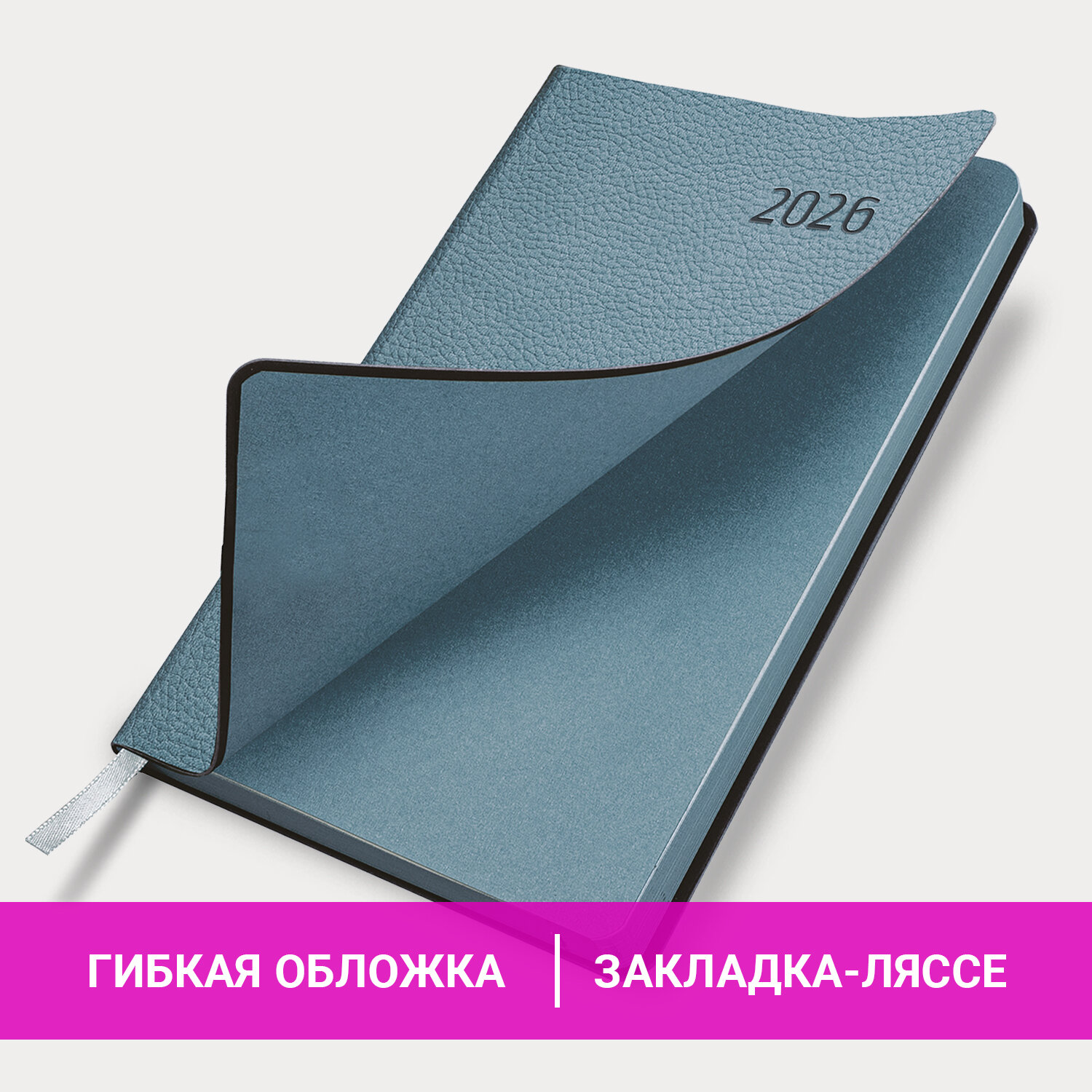 Ежедневник датированный 2026 А5 138x213 мм, BRAUBERG "Stylish", под кожу, гибкий, серо-голубой Код товара: 117105 457,24 ₽ Купить Производитель:BRAUBERG Датированный ежедневник BRAUBERG "Stylish" с мягкой интегральной обложкой под фактурную кожу и прокрасом среза в цвет обложки – стильное и компактное решение для эффективного планирования и создания имиджа пунктуального человека. Внутренний блок включает 168 листов тонированной бумаги плотностью 70 г/м2. Каждая страничка имеет перфорированный угол. Благодаря стандартному формату А5 (138х213 мм) ежедневник удобно использовать как в офисе, так и на выездных деловых встречах. Мягкая (интегральная) обложка стилизована под фактурную кожу неординарного серо-голубого цвета. Подходит для горячего тиснения. Дополнением является закладка-ляссе, с помощью которой при необходимости можно быстро открыть ежедневник на нужной странице. Ежедневник снабжен справочным материалом. В конце есть 4 страницы для записей и заметок. Датированный ежедневник BRAUBERG "Stylish" идеально подойдет для офисных работников и людей, занимающихся бизнесом.Производство: КитайТип ежедневника: датированныйФормат: А5Обложка: под фактурную кожуВид обложки: интегральнаяКоличество листов: 168 шт.Особенности: закладка-ляссе, перфорация уголков, скругленные углы, справочная информацияСерия: StylishГод: 2026Тип застежки: нетОсновной цвет обложки: серо-голубойДополнительный цвет обложки: нетЦвет среза: серо-голубойЦвет внутреннего блока: кремовыйПлотность внутреннего блока: 70 г/м2Высота строки для записи: 4 ммТип крепления: сшивкаПечать блока: 2 краскиПодходит для блинтового тиснения: даПодходит для тиснения фольгой: даДлина: 213 ммШирина: 138 ммТолщина: 18 ммВес: 403 грРазмер упаковки: 2.2 × 21.3 × 14 смОбъём: 0.0007 м3Промежуточная упаковка: 20 штТранспортная упаковка: 20 штШтрих-код: 4606224487816 Файлы Сертификат-1.jpg Сертификат-2.jpg Сертификат-3.jpg Сертификат-4.jpg Сертификат-5.jpg Сертификат-6.jpg Сертификат-7.jpg Сертификат-8.jpg Сертификат-9.jpg Сертификат-10.jpg Сертификат-11.jpg Сертификат-12.jpg Сертификат-13.jpg Сертификат-14.jpg Сертификат-15.jpg Сертификат-16.jpg Сертификат-17.jpg Сертификат-18.jpg Сертификат-19.jpg Сертификат-20.jpg Сертификат-21.jpg Сертификат-22.jpg Сертификат-23.jpg Сертификат-24.jpg Сертификат-25.jpg Сертификат-26.jpg