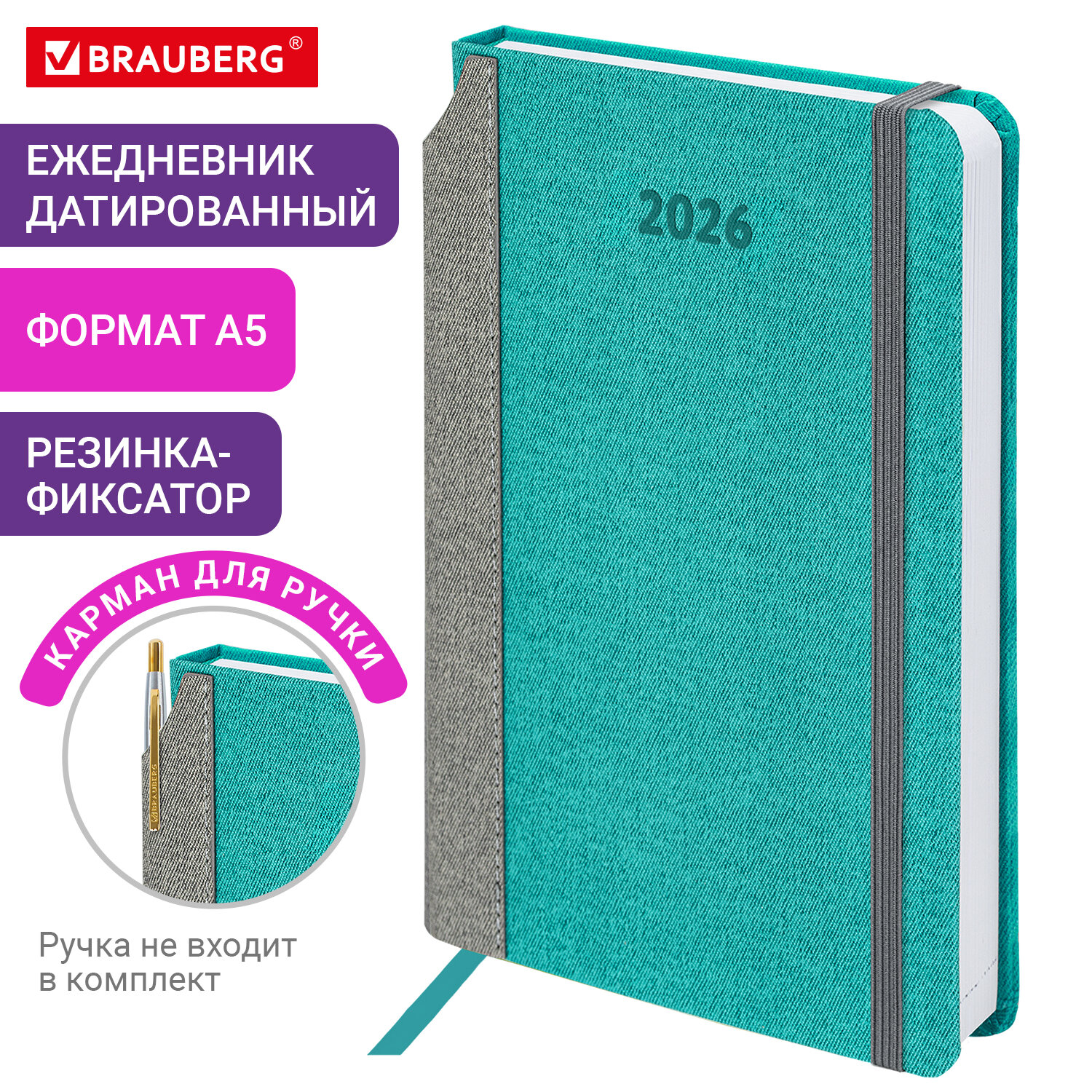 Ежедневник датированный 2026 А5 138x213 мм, BRAUBERG "Mosaic", под кожу, держатель для ручки, бирюза Код товара: 117110 476,05 ₽ Купить Производитель:BRAUBERG Модель датированного ежедневника BRAUBERG "Mosaic" представляет собой новый взгляд на дизайн деловых аксессуаров. Гармоничное сочетание цветов добавит яркости рабочим будням и идеально подойдет для создания современного образа. Внутренний блок включает 168 листов белой бумаги плотностью 70 г/м2. Каждая страничка имеет перфорированный угол. Благодаря стандартному формату А5 (138х213 мм) ежедневник удобно использовать как в офисе, так и на выездных деловых встречах. Выполнен в стильном сочетании бирюзового и серого цветов. Жесткая книжная обложка стилизована под искусственную кожу с текстурой льна, фиксируется резинкой, поэтому ежедневник не откроется в сумке или портфеле и страницы не помнутся. Материал обложки подходит для горячего тиснения. Для удобства пользования ежедневник снабжен карманом для фиксации ручки. Дополнением является закладка-ляссе, с помощью которой при необходимости можно быстро открыть ежедневник на нужной странице. Ежедневник снабжен обширным справочным материалом. В конце есть 4 страницы для записей и заметок. Датированный ежедневник BRAUBERG "Mosaic" идеально подойдет для офисных работников, людей, занимающихся бизнесом.Производство: КитайТип ежедневника: датированныйФормат: А5Обложка: под комбинированную кожуВид обложки: твердаяКоличество листов: 168 шт.Особенности: закладка-ляссе, комбинированная обложка, перфорация уголков, поролоновая прослойка, скругленные углы, справочная информация, фиксатор для ручкиСерия: MosaicГод: 2026Тип застежки: резинка-фиксаторОсновной цвет обложки: бирюзовыйДополнительный цвет обложки: серыйЦвет среза: белыйЦвет внутреннего блока: белыйПлотность внутреннего блока: 70 г/м2Высота строки для записи: 4 ммТип крепления: сшивкаПечать блока: 2 краскиПодходит для блинтового тиснения: даПодходит для тиснения фольгой: даПодходит для заливки полимерной смолой: даПодходит для УФ-печати: даПодходит для тампопечати: даДлина: 213 ммШирина: 138 ммТолщина: 20 ммВес: 475 грРазмер упаковки: 2.4 × 21.3 × 14.9 смОбъём: 0.001 м3Промежуточная упаковка: 20 штТранспортная упаковка: 20 штШтрих-код: 4606224487861 Файлы Сертификат-1.jpg Сертификат-2.jpg Сертификат-3.jpg Сертификат-4.jpg Сертификат-5.jpg Сертификат-6.jpg Сертификат-7.jpg Сертификат-8.jpg Сертификат-9.jpg Сертификат-10.jpg Сертификат-11.jpg Сертификат-12.jpg Сертификат-13.jpg Сертификат-14.jpg Сертификат-15.jpg Сертификат-16.jpg Сертификат-17.jpg Сертификат-18.jpg Сертификат-19.jpg Сертификат-20.jpg Сертификат-21.jpg Сертификат-22.jpg Сертификат-23.jpg Сертификат-24.jpg Сертификат-25.jpg Сертификат-26.jpg