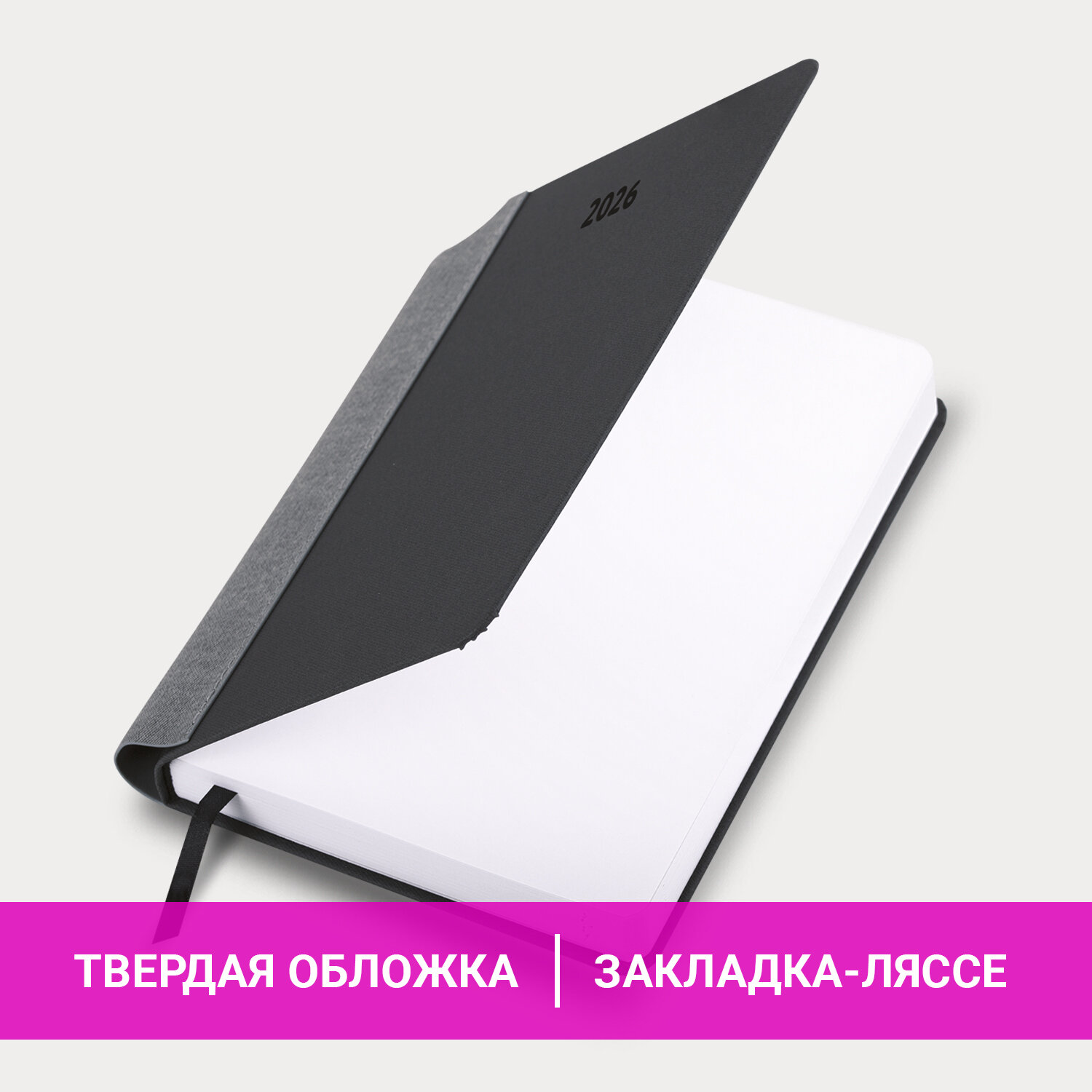 Ежедневник датированный 2026 А5 138x213 мм, BRAUBERG "Mosaic", под кожу, карман для ручки, черный Код товара: 117114 476,05 ₽ Купить Производитель:BRAUBERG Модель датированного ежедневника BRAUBERG "Mosaic" представляет собой новый взгляд на дизайн деловых аксессуаров. Гармоничное сочетание цветов добавит яркости рабочим будням и идеально подойдет для создания современного образа. Внутренний блок включает 168 листов белой бумаги плотностью 70 г/м2. Каждая страничка имеет перфорированный угол. Благодаря стандартному формату А5 (138х213 мм) ежедневник удобно использовать как в офисе, так и на выездных деловых встречах. Выполнен в стильном сочетании черного и серого цветов. Жесткая книжная обложка стилизована под искусственную кожу с текстурой льна, фиксируется резинкой, поэтому ежедневник не откроется в сумке или портфеле и страницы не помнутся. Материал обложки подходит для горячего тиснения. Для удобства пользования ежедневник снабжен карманом для фиксации ручки. Дополнением является закладка-ляссе, с помощью которой при необходимости можно быстро открыть ежедневник на нужной странице. Ежедневник снабжен обширным справочным материалом. В конце есть 4 страницы для записей и заметок. Датированный ежедневник BRAUBERG "Mosaic" идеально подойдет для офисных работников, людей, занимающихся бизнесом.Производство: КитайТип ежедневника: датированныйФормат: А5Обложка: под комбинированную кожуВид обложки: твердаяКоличество листов: 168 шт.Особенности: закладка-ляссе, комбинированная обложка, перфорация уголков, поролоновая прослойка, скругленные углы, справочная информация, фиксатор для ручкиСерия: MosaicГод: 2026Тип застежки: резинка-фиксаторОсновной цвет обложки: черныйДополнительный цвет обложки: серыйЦвет среза: белыйЦвет внутреннего блока: белыйПлотность внутреннего блока: 70 г/м2Высота строки для записи: 4 ммТип крепления: сшивкаПечать блока: 2 краскиПодходит для блинтового тиснения: даПодходит для тиснения фольгой: даПодходит для заливки полимерной смолой: даПодходит для УФ-печати: даПодходит для тампопечати: даДлина: 213 ммШирина: 138 ммТолщина: 20 ммВес: 472 грРазмер упаковки: 2.4 × 21.3 × 15.1 смОбъём: 0.001 м3Промежуточная упаковка: 20 штТранспортная упаковка: 20 штШтрих-код: 4606224487908 Файлы Сертификат-1.jpg Сертификат-2.jpg Сертификат-3.jpg Сертификат-4.jpg Сертификат-5.jpg Сертификат-6.jpg Сертификат-7.jpg Сертификат-8.jpg Сертификат-9.jpg Сертификат-10.jpg Сертификат-11.jpg Сертификат-12.jpg Сертификат-13.jpg Сертификат-14.jpg Сертификат-15.jpg Сертификат-16.jpg Сертификат-17.jpg Сертификат-18.jpg Сертификат-19.jpg Сертификат-20.jpg Сертификат-21.jpg Сертификат-22.jpg Сертификат-23.jpg Сертификат-24.jpg Сертификат-25.jpg Сертификат-26.jpg