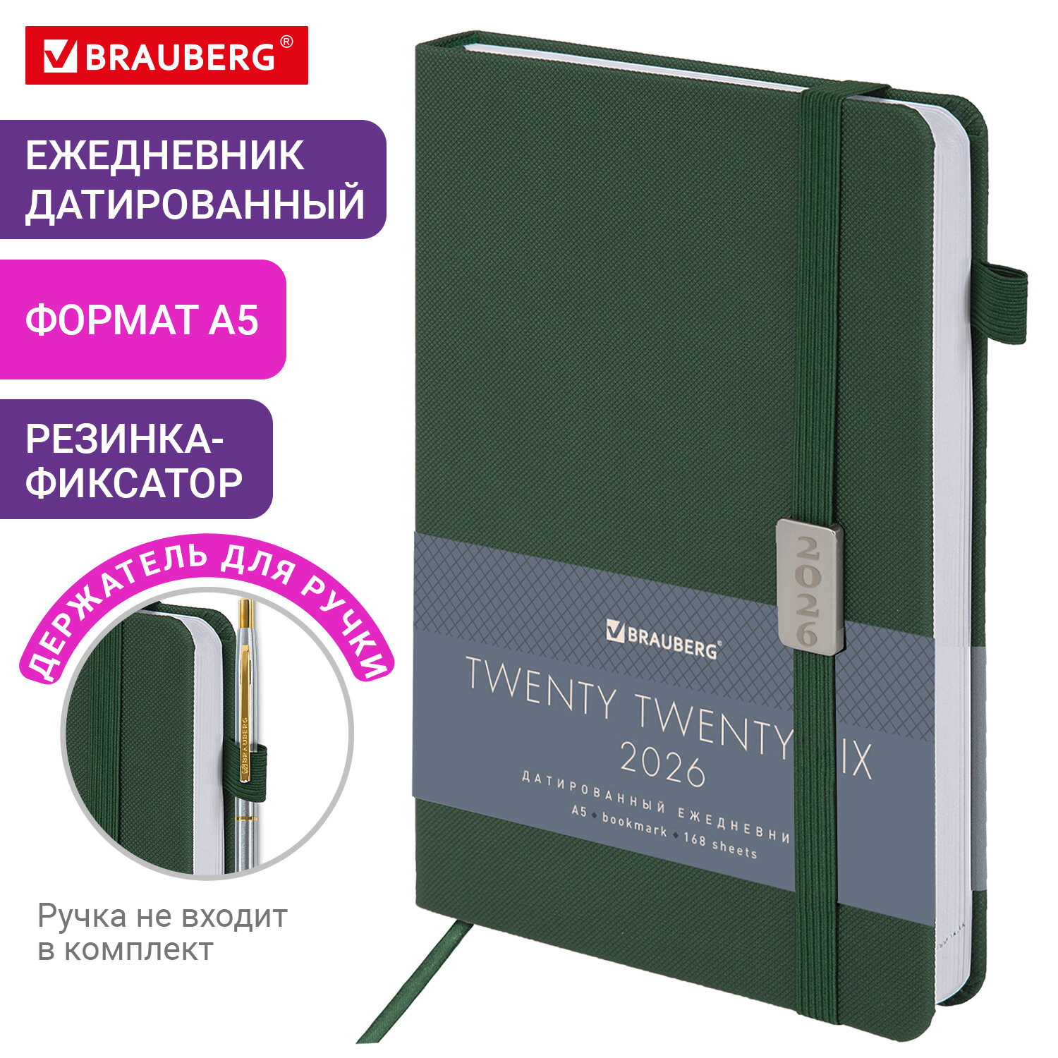 Ежедневник датированный 2026, А5, 138x213 мм, BRAUBERG "Control", под кожу, держатель для ручки, зеленый Код товара: 117123 581,59 ₽ Купить Производитель:BRAUBERG Классический ежедневник BRAUBERG "Control" создан для максимального удобства пользователя. Внутренний блок включает 168 листов белой бумаги плотностью 70 г/м2. Каждая страничка имеет перфорированный угол. Благодаря стандартному формату А5 (138х213 мм) датированный ежедневник удобно использовать как в офисе, так и на выездных деловых встречах. Жесткая книжная обложка насыщенного зеленого цвета стилизована под искусственную кожу с мелким рисунком. Обложка фиксируется резинкой, поэтому ежедневник не откроется в сумке или портфеле и страницы не помнутся. Материал обложки подходит для горячего тиснения. Ежедневник снабжен держателем для фиксации ручки и обширным справочным материалом. В конце имеются 4 страницы для записей и заметок. Дополнением является закладка-ляссе, с помощью которой при необходимости можно быстро открыть ежедневник на нужной странице. Датированный ежедневник BRAUBERG "Control" идеально подойдет для офисных работников и людей, занимающихся бизнесом.Производство: КитайТип ежедневника: датированныйФормат: А5Обложка: под фактурную кожуВид обложки: твердаяКоличество листов: 168 шт.Особенности: закладка-ляссе, перфорация уголков, поролоновая прослойка, скругленные углы, справочная информация, фиксатор для ручкиСерия: ControlГод: 2026Тип застежки: резинка-фиксаторОсновной цвет обложки: зеленыйДополнительный цвет обложки: нетЦвет среза: белыйЦвет внутреннего блока: белыйПлотность внутреннего блока: 70 г/м2Высота строки для записи: 4 ммТип крепления: сшивкаПечать блока: 2 краскиПодходит для блинтового тиснения: даПодходит для тиснения фольгой: даПодходит для заливки полимерной смолой: даПодходит для УФ-печати: даПодходит для тампопечати: даДлина: 213 ммШирина: 138 ммТолщина: 20 ммВес: 455 грРазмер упаковки: 2.6 × 21.7 × 14.1 смОбъём: 0.0009 м3Промежуточная упаковка: 20 штТранспортная упаковка: 20 штШтрих-код: 4606224487991 Файлы Сертификат-1.jpg Сертификат-2.jpg Сертификат-3.jpg Сертификат-4.jpg Сертификат-5.jpg Сертификат-6.jpg Сертификат-7.jpg Сертификат-8.jpg Сертификат-9.jpg Сертификат-10.jpg Сертификат-11.jpg Сертификат-12.jpg Сертификат-13.jpg Сертификат-14.jpg Сертификат-15.jpg Сертификат-16.jpg Сертификат-17.jpg Сертификат-18.jpg Сертификат-19.jpg Сертификат-20.jpg Сертификат-21.jpg Сертификат-22.jpg Сертификат-23.jpg Сертификат-24.jpg Сертификат-25.jpg Сертификат-26.jpg
