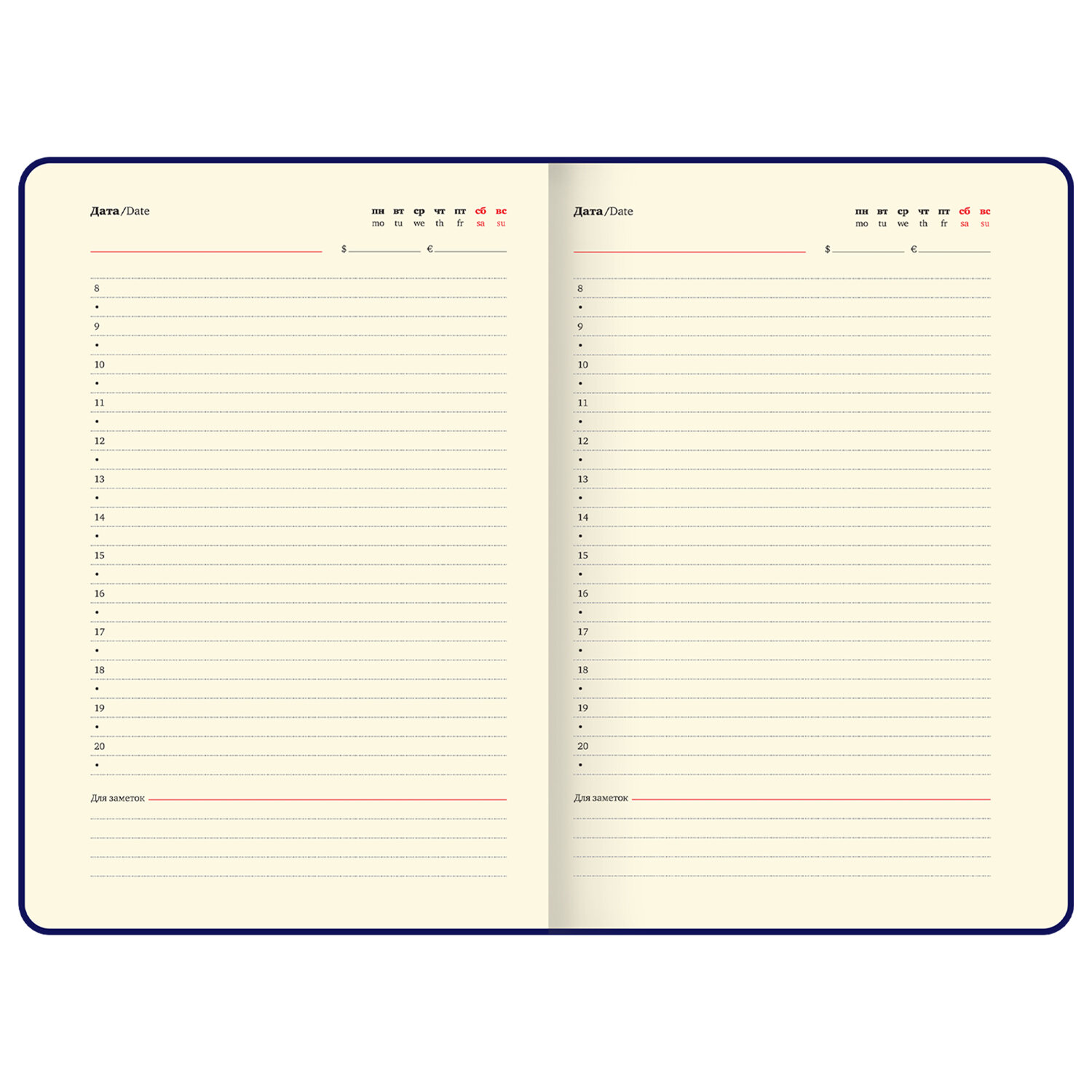 Ежедневник недатированный, А5, 143х210 мм, BRAUBERG "Dainty", под кожу, магнитная застежка, 160 л., голубой Код товара: 117144 401,86 ₽ Купить Производитель:BRAUBERG Недатированный ежедневник BRAUBERG "Dainty" выполнен в оригинальном стиле. Подойдет каждому современному человеку для ведения различного рода записей. Внутренний блок включает 160 листов кремовой бумаги плотностью 70 г/м2. Благодаря стандартному формату А5 (143х210 мм) ежедневник удобно использовать как в офисе, так и на выездных деловых встречах. Твердая обложка стилизована под кожу с эффектом софт-тач, очень тактильную на ощупь. Ежедневник снабжен стильной магнитной застежкой, благодаря чему он не откроется в сумочке или портфеле, и листы не помнутся. Дополнением является закладка-ляссе, с помощью которой при необходимости можно быстро открыть нужную страницу, а также держатель для ручки, повышающий функциональность. Ежедневник содержит обширный справочный материал, а также 7 страниц для записей и заметок. Уголки – закругленные.Производство: КитайТип ежедневника: недатированныйФормат: А5Обложка: под кожу софт-тачВид обложки: твердаяКоличество листов: 160 шт.Особенности: закладка-ляссе, поролоновая прослойка, скругленные углы, фиксатор для ручкиСерия: DaintyТип застежки: магнитная застёжкаОсновной цвет обложки: голубойДополнительный цвет обложки: нетЦвет среза: нетЦвет внутреннего блока: кремовыйПлотность внутреннего блока: 70 г/м2Высота строки для записи: 5 ммТип крепления: сшивкаПечать блока: 2 краскиПодходит для блинтового тиснения: даПодходит для тиснения фольгой: даПодходит для УФ-печати: даПодходит для тампопечати: даДлина: 210 ммШирина: 143 ммТолщина: 21 ммВес: 461 грРазмер упаковки: 2.7 × 20.9 × 15.3 смОбъём: 0.0012 м3Промежуточная упаковка: 20 штТранспортная упаковка: 20 штШтрих-код: 4606224491707 Файлы Сертификат-1.jpg Сертификат-2.jpg Сертификат-3.jpg Сертификат-4.jpg Сертификат-5.jpg Сертификат-6.jpg Сертификат-7.jpg Сертификат-8.jpg Сертификат-9.jpg Сертификат-10.jpg Сертификат-11.jpg Сертификат-12.jpg Сертификат-13.jpg Сертификат-14.jpg Сертификат-15.jpg Сертификат-16.jpg Сертификат-17.jpg Сертификат-18.jpg Сертификат-19.jpg Сертификат-20.jpg Сертификат-21.jpg Сертификат-22.jpg Сертификат-23.jpg Сертификат-24.jpg Сертификат-25.jpg Сертификат-26.jpg