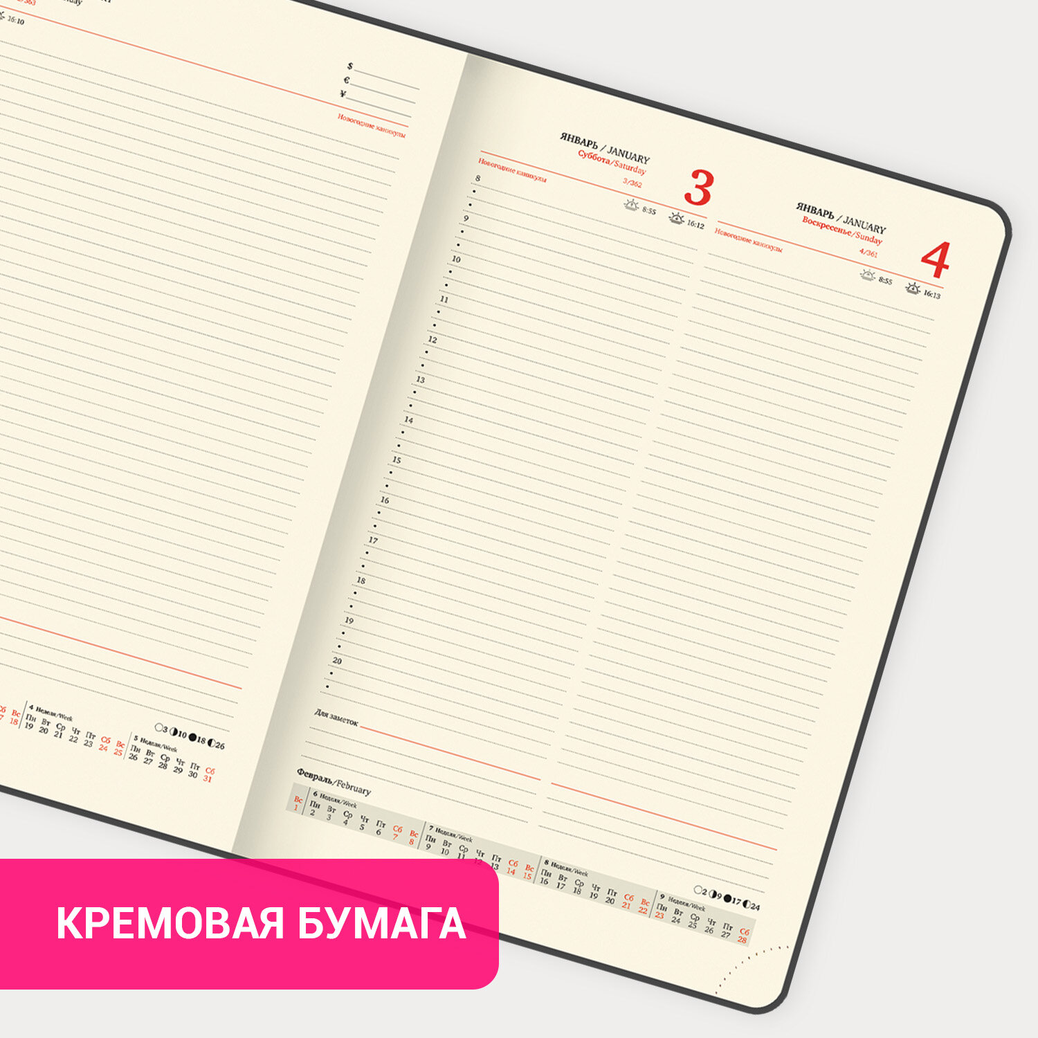 Ежедневник датированный 2026 БОЛЬШОЙ ФОРМАТ 210х297 мм, А4, BRAUBERG "Imperial", под кожу, бордо Код товара: 117248 871,05 ₽ Купить Производитель:BRAUBERG Датированный ежедневник BRAUBERG "Imperial" выполнен в классическом дизайне. Непревзойденное качество исполнения подчеркивает солидность владельца этого делового аксессуара. Внутренний блок включает 168 листов тонированной бумаги плотностью 70 г/м2. Каждая страничка имеет перфорированный угол. Благодаря большому формату А4 (210х297 мм) ежедневник удобно использовать как в офисе, так и на выездных деловых встречах. Твердая обложка стилизована под гладкую кожу бордового цвета. Материал обложки подходит для горячего тиснения. Дополнением является закладка-ляссе, с помощью которой при необходимости можно быстро открыть ежедневник на нужной странице. Ежедневник снабжен обширным справочным материалом. В конце есть 4 страницы для записей и заметок. Датированный ежедневник BRAUBERG "Imperial" идеально подойдет для офисных работников и людей, занимающихся бизнесом.Производство: КитайТип ежедневника: датированныйФормат: А4Обложка: под гладкую кожуВид обложки: твердаяКоличество листов: 168 шт.Особенности: закладка-ляссе, перфорация уголков, поролоновая прослойка, прострочка по периметру, скругленные углы, справочная информацияСерия: ImperialГод: 2026Тип застежки: нетОсновной цвет обложки: бордовыйДополнительный цвет обложки: нетЦвет среза: кремовыйЦвет внутреннего блока: кремовыйПлотность внутреннего блока: 70 г/м2Высота строки для записи: 4 ммТип крепления: сшивкаПечать блока: 2 краскиПодходит для блинтового тиснения: даПодходит для тиснения фольгой: даПодходит для заливки полимерной смолой: даПодходит для УФ-печати: даПодходит для тампопечати: даДлина: 297 ммШирина: 210 ммТолщина: 20 ммВес: 984 грРазмер упаковки: 2.5 × 29.5 × 21.4 смОбъём: 0.0019 м3Промежуточная упаковка: 18 штТранспортная упаковка: 18 штШтрих-код: 4606224488462 Файлы Сертификат-1.jpg Сертификат-2.jpg Сертификат-3.jpg Сертификат-4.jpg Сертификат-5.jpg Сертификат-6.jpg Сертификат-7.jpg Сертификат-8.jpg Сертификат-9.jpg Сертификат-10.jpg Сертификат-11.jpg Сертификат-12.jpg Сертификат-13.jpg Сертификат-14.jpg Сертификат-15.jpg Сертификат-16.jpg Сертификат-17.jpg Сертификат-18.jpg Сертификат-19.jpg Сертификат-20.jpg Сертификат-21.jpg Сертификат-22.jpg Сертификат-23.jpg Сертификат-24.jpg Сертификат-25.jpg Сертификат-26.jpg