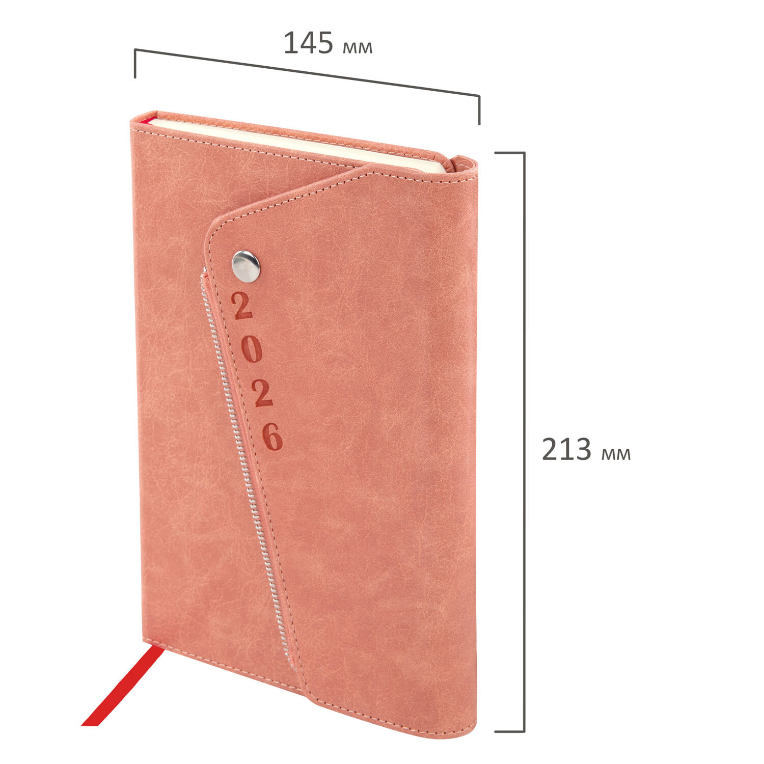 Ежедневник датированный 2026, А5, 145х213 мм, BRAUBERG "Jacket", под кожу, клапан, держатель, розовый Код товара: 117400 867,55 ₽ Купить Производитель:BRAUBERG Датированный ежедневник BRAUBERG "Jacket" – это стильный и практичный аксессуар для планирования. Обложка из материала под кожу дополнена оригинальным асимметричным магнитным клапаном с кнопкой. Внутренний блок включает 168 листов кремовой бумаги плотностью 70 г/м2. Каждая страничка имеет перфорированный угол. Благодаря стандартному формату А5 (145х213 мм) датированный ежедневник удобно использовать как в офисе, так и на выездных деловых встречах. Твердая обложка стилизована под текстурную кожу и имеет интересную деталь в виде магнитного клапана декорированного молнией и кнопкой. Благодаря клапану ежедневник не откроется в сумке или портфеле. Подходит для горячего тиснения. Дополнениями являются закладка-ляссе, с помощью которой при необходимости можно быстро открыть ежедневник на нужной странице, и держатель для ручки. Справочный материал дополнительно расширяет функциональность ежедневника. В конце внутреннего блока есть 4 страницы для записей и заметок.Производство: КитайТип ежедневника: датированныйФормат: А5Обложка: под текстурную кожуВид обложки: твердаяКоличество листов: 168 шт.Особенности: закладка-ляссе, перфорация уголков, скругленные углы, справочная информация, фиксатор для ручкиСерия: JacketГод: 2026Тип застежки: магнитный клапанОсновной цвет обложки: бежево-розовыйДополнительный цвет обложки: нетЦвет среза: нетЦвет внутреннего блока: кремовыйПлотность внутреннего блока: 70 г/м2Высота строки для записи: 4 ммТип крепления: сшивкаПечать блока: 2 краскиПодходит для блинтового тиснения: даПодходит для тиснения фольгой: даДлина: 213 ммШирина: 145 ммТолщина: 20 ммВес: 488 грРазмер упаковки: 2.9 × 21.5 × 15.3 смОбъём: 0.0011 м3Промежуточная упаковка: 20 штТранспортная упаковка: 20 штШтрих-код: 4606224489834 Файлы Сертификат-1.jpg Сертификат-2.jpg Сертификат-3.jpg Сертификат-4.jpg Сертификат-5.jpg Сертификат-6.jpg Сертификат-7.jpg Сертификат-8.jpg Сертификат-9.jpg Сертификат-10.jpg Сертификат-11.jpg Сертификат-12.jpg Сертификат-13.jpg Сертификат-14.jpg Сертификат-15.jpg Сертификат-16.jpg Сертификат-17.jpg Сертификат-18.jpg Сертификат-19.jpg Сертификат-20.jpg Сертификат-21.jpg Сертификат-22.jpg Сертификат-23.jpg Сертификат-24.jpg Сертификат-25.jpg Сертификат-26.jpg
