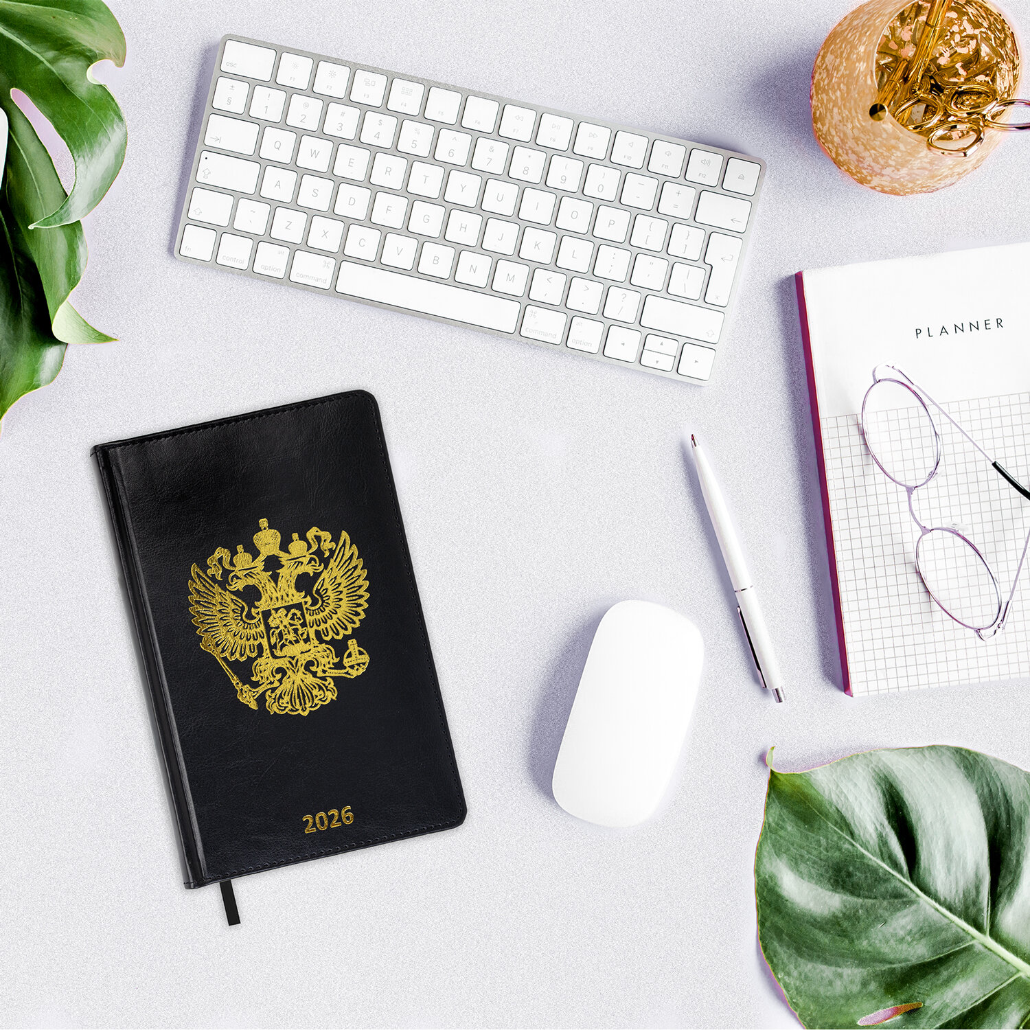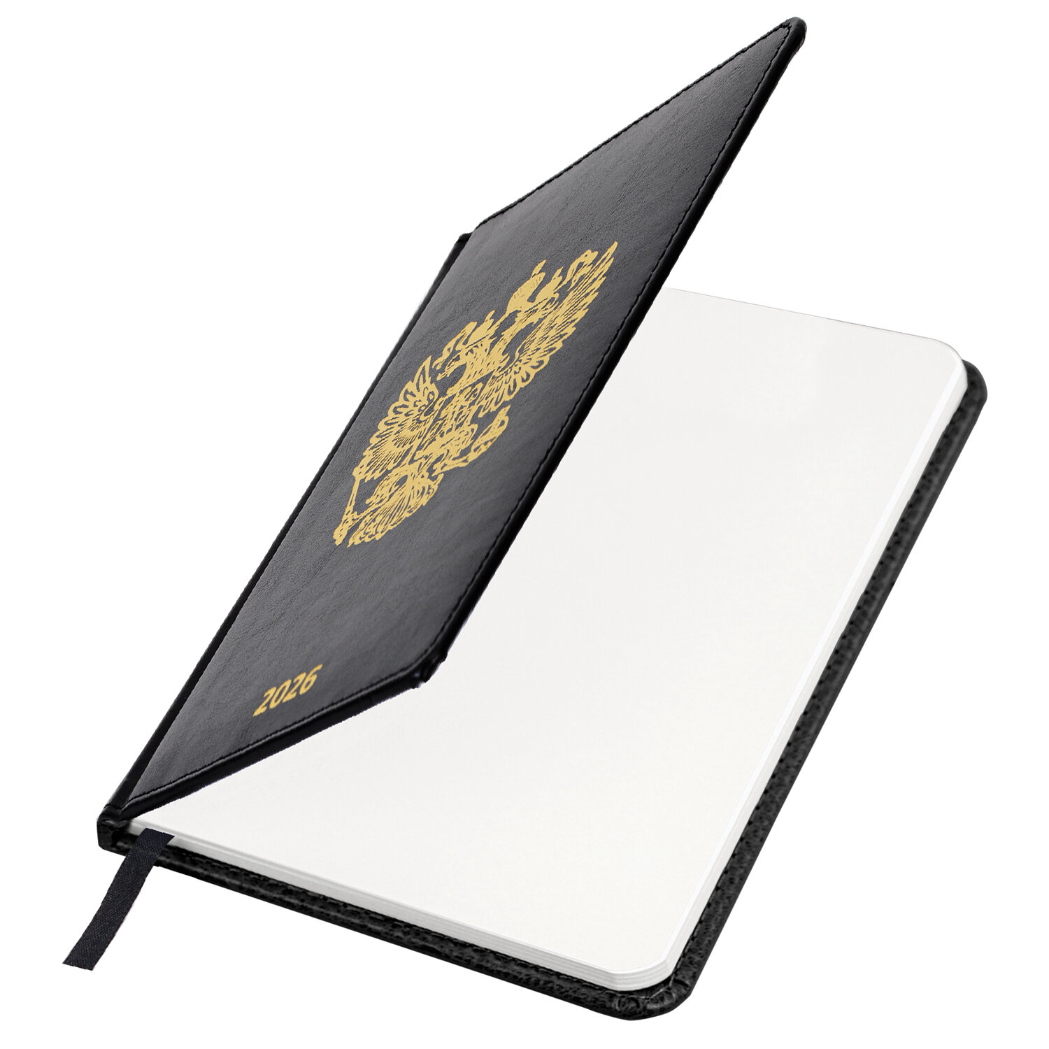 Ежедневник датированный 2026 А5 138х213 мм, BRAUBERG "State", под кожу, черный Код товара: 117415 490,36 ₽ Купить Производитель:BRAUBERG Ежедневник датированный BRAUBERG "State" создан для тех, кому планирование дороже, чем импровизация. Внутренний блок включает 168 листов белой бумаги плотностью 70 г/м2. Каждая страничка имеет перфорированный угол. Благодаря стандартному формату А5 (138х213 мм) датированный ежедневник удобно использовать как в офисе, так и на выездных деловых встречах. Твердая обложка стилизована под гладкую кожу и имеет интересную деталь в виде тиснения фольгой. Подходит для горячего тиснения. Дополнением является закладка-ляссе, с помощью которой при необходимости можно быстро открыть ежедневник на нужной странице. Ежедневник снабжен справочным материалом. В конце есть 4 страницы для записей и заметок.Производство: КитайТип ежедневника: датированныйФормат: А5Обложка: под гладкую кожуВид обложки: твердаяКоличество листов: 168 шт.Особенности: закладка-ляссе, перфорация уголков, прострочка по периметру, скругленные углы, справочная информацияСерия: StateГод: 2026Тип застежки: нетОсновной цвет обложки: черныйДополнительный цвет обложки: нетЦвет среза: нетЦвет внутреннего блока: белыйПлотность внутреннего блока: 70 г/м2Высота строки для записи: 4 ммТип крепления: сшивкаПечать блока: 2 краскиПодходит для блинтового тиснения: даПодходит для тиснения фольгой: даДлина: 213 ммШирина: 138 ммТолщина: 20 ммВес: 467 грРазмер упаковки: 2.7 × 21.6 × 14.7 смОбъём: 0.001 м3Промежуточная упаковка: 20 штТранспортная упаковка: 20 штШтрих-код: 4606224489988 Файлы Сертификат-1.jpg Сертификат-2.jpg Сертификат-3.jpg Сертификат-4.jpg Сертификат-5.jpg Сертификат-6.jpg Сертификат-7.jpg Сертификат-8.jpg Сертификат-9.jpg Сертификат-10.jpg Сертификат-11.jpg Сертификат-12.jpg Сертификат-13.jpg Сертификат-14.jpg Сертификат-15.jpg Сертификат-16.jpg Сертификат-17.jpg Сертификат-18.jpg Сертификат-19.jpg Сертификат-20.jpg Сертификат-21.jpg Сертификат-22.jpg Сертификат-23.jpg Сертификат-24.jpg Сертификат-25.jpg Сертификат-26.jpg