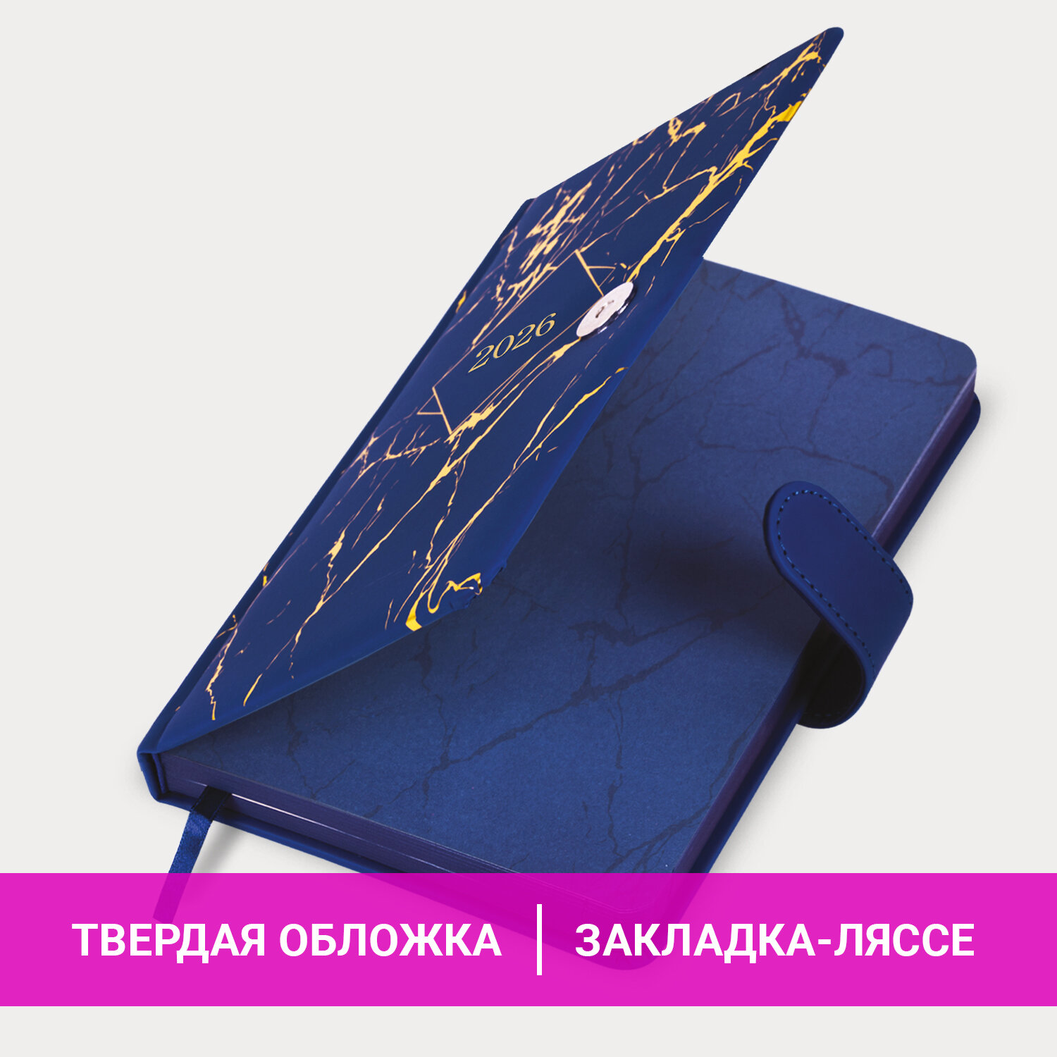 Ежедневник датированный 2026 А5 138x213 мм, BRAUBERG "Goldy", под кожу, цветной срез, синий Код товара: 117472 647,49 ₽ Купить Производитель:BRAUBERG Датированный ежедневник BRAUBERG "Goldy" выполнен в оригинальном дизайне. Непревзойденное качество исполнения придаёт ему роскошный и стильный вид. Внутренний блок включает 168 листов кремовой бумаги плотностью 70 г/м2. Каждая страничка имеет перфорированный угол. Благодаря стандартному формату А5 (138х213 мм) ежедневник удобно использовать как в офисе, так и на выездных деловых встречах. Твердая обложка, тисненная золотой фольгой, стилизована под гладкую кожу с покрытием SoftTouch, которое обеспечивает обложке мягкий, бархатистый тактильный эффект, делая ее приятной на ощупь. Обложка фиксируется магнитной застежкой, поэтому ежедневник не откроется в сумке или портфеле, и страницы не помнутся. Материал обложки подходит для горячего тиснения. Цветной срез в цвет обложки придает ежедневнику особый шарм. Дополнением является закладка-ляссе, с помощью которой при необходимости можно быстро открыть ежедневник на нужной странице. Ежедневник снабжен обширным справочным материалом. В конце есть 4 страницы для записей и заметок. Датированный ежедневник BRAUBERG "Goldy" идеально подойдет для офисных работников и людей, занимающихся бизнесом.Производство: КитайТип ежедневника: датированныйФормат: А5Обложка: софт-тачВид обложки: твердаяКоличество листов: 168 шт.Особенности: закладка-ляссе, перфорация уголков, поролоновая прослойка, скругленные углы, справочная информацияСерия: GoldyГод: 2026Тип застежки: магнитная застежкаОсновной цвет обложки: синийДополнительный цвет обложки: нетЦвет среза: синийЦвет внутреннего блока: кремовыйПлотность внутреннего блока: 70 г/м2Высота строки для записи: 4 ммТип крепления: сшивкаПечать блока: 2 краскиПодходит для блинтового тиснения: даПодходит для тиснения фольгой: даДлина: 213 ммШирина: 138 ммТолщина: 20 ммВес: 493 грРазмер упаковки: 3 × 21.3 × 14.9 смОбъём: 0.0011 м3Промежуточная упаковка: 20 штТранспортная упаковка: 20 штШтрих-код: 4606224488998 Файлы Сертификат-1.jpg Сертификат-2.jpg Сертификат-3.jpg Сертификат-4.jpg Сертификат-5.jpg Сертификат-6.jpg Сертификат-7.jpg Сертификат-8.jpg Сертификат-9.jpg Сертификат-10.jpg Сертификат-11.jpg Сертификат-12.jpg Сертификат-13.jpg Сертификат-14.jpg Сертификат-15.jpg Сертификат-16.jpg Сертификат-17.jpg Сертификат-18.jpg Сертификат-19.jpg Сертификат-20.jpg Сертификат-21.jpg Сертификат-22.jpg Сертификат-23.jpg Сертификат-24.jpg Сертификат-25.jpg Сертификат-26.jpg
