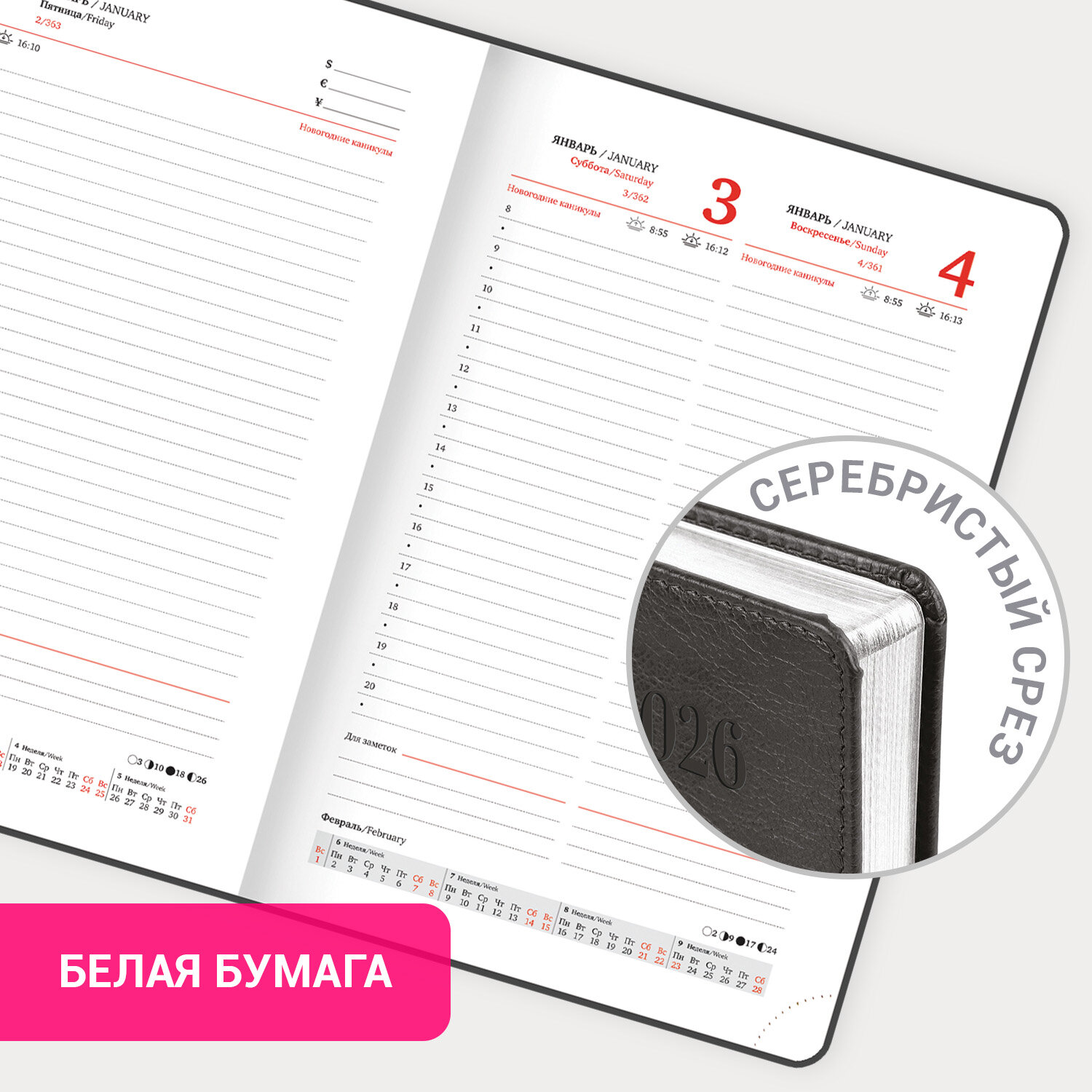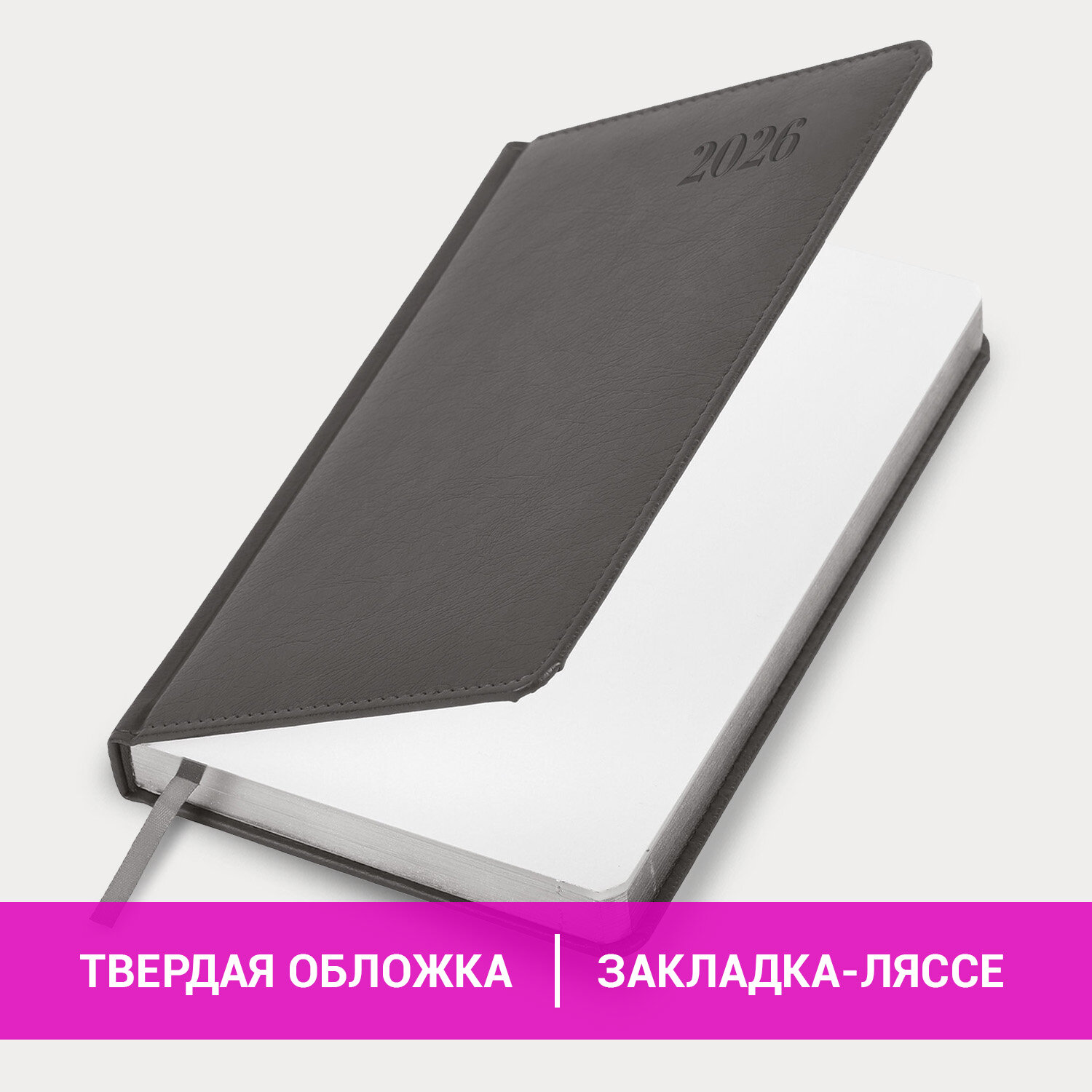 Ежедневник датированный 2026, А5, 138х213 мм, BRAUBERG "Impression", под кожу, серый Код товара: 117513 478,18 ₽ Купить Производитель:BRAUBERG Датированный ежедневник BRAUBERG "Impression" выполнен в классическом стиле. Отличается лаконичным дизайном и аккуратным исполнением. Внутренний блок включает 168 листов белой бумаги плотностью 70 г/м2. Каждая страничка имеет перфорированный угол. Благодаря стандартному формату А5 (138х213 мм) ежедневник удобно использовать как в офисе, так и на выездных деловых встречах. Твердая обложка стилизована под гладкую кожу серого цвета. Материал обложки подходит для горячего тиснения. Серебряный срез придает ежедневнику особый шарм. Дополнением является закладка-ляссе, с помощью которой при необходимости можно быстро открыть ежедневник на нужной странице. Справочный материал дополнительно расширяет функциональность ежедневника. В конце внутреннего блока есть 4 страницы для записей и заметок. Идеально подойдет для офисных работников и людей, занимающихся бизнесом.Производство: КитайТип ежедневника: датированныйФормат: А5Обложка: под гладкую кожуВид обложки: твердаяКоличество листов: 168 шт.Особенности: закладка-ляссе, перфорация уголков, поролоновая прослойка, прострочка по периметру, скругленные углы, справочная информацияСерия: ImpressionГод: 2026Тип застежки: нетОсновной цвет обложки: серыйДополнительный цвет обложки: нетЦвет среза: серебристыйЦвет внутреннего блока: белыйПлотность внутреннего блока: 70 г/м2Высота строки для записи: 4 ммТип крепления: сшивкаПечать блока: 2 краскиПодходит для блинтового тиснения: даПодходит для тиснения фольгой: даПодходит для заливки полимерной смолой: даДлина: 213 ммШирина: 138 ммТолщина: 20 ммВес: 464 грРазмер упаковки: 2.5 × 21.4 × 13.9 смОбъём: 0.0011 м3Промежуточная упаковка: 20 штТранспортная упаковка: 20 штШтрих-код: 4606224489407 Файлы Сертификат-1.jpg Сертификат-2.jpg Сертификат-3.jpg Сертификат-4.jpg Сертификат-5.jpg Сертификат-6.jpg Сертификат-7.jpg Сертификат-8.jpg Сертификат-9.jpg Сертификат-10.jpg Сертификат-11.jpg Сертификат-12.jpg Сертификат-13.jpg Сертификат-14.jpg Сертификат-15.jpg Сертификат-16.jpg Сертификат-17.jpg Сертификат-18.jpg Сертификат-19.jpg Сертификат-20.jpg Сертификат-21.jpg Сертификат-22.jpg Сертификат-23.jpg Сертификат-24.jpg Сертификат-25.jpg Сертификат-26.jpg