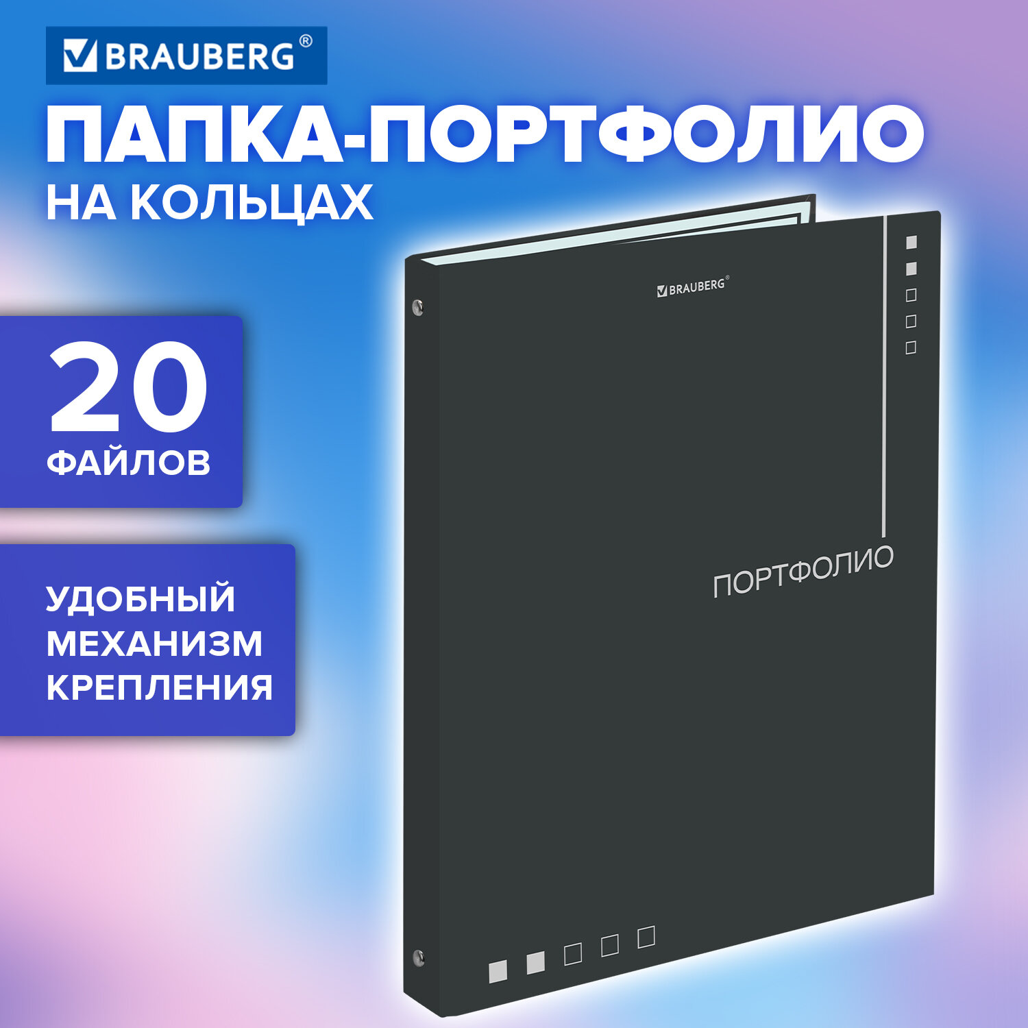 Папка-портфолио универсальная, 4 кольца, 20 файлов, 7БЦ матовая, BRAUBERG "Minimalism" Код товара: 117553 381,15 ₽ Купить Производитель:BRAUBERG Портфолио BRAUBERG предназначено для хранения фотографий, грамот и других памятных документов формата А4. Идеальный подарок для самых разных возрастов! Портфолио BRAUBERG на кольцах А4, 20 файлов. Изготовлено из качественного твёрдого картона. Актуальный стильный дизайн обложки с матовой ламинацией. Оснащено 4 металлическими кольцами и комплектом из 20 файлов плотностью 60 мкм. Полезный диаметр колец – 20 мм. Подходит для хранения грамот, дипломов, фотографий и других достижений. Индивидуальная упаковка – термоусадочная пленка.Производство: РоссияТип: папкаНазначение: универсальноеКрепление: кольцаМатериал обложки: ламинированный картонМатериал файла: полипропиленКоличество вкладышей: 0 листовКоличество файлов: 20 шт.Вмещает до: 20 листовШирина корешка: 30 ммПлотность вкладыша/файла: 60 г/м2/мкрФормат: А4Дизайн: MinimalismДлина: 32 смШирина: 24.5 смЦвет: темно-синийИндивидуальная упаковка: даВес: 450 грРазмер упаковки: 3.2 × 32.1 × 25.3 смОбъём: 0.0019 м3Промежуточная упаковка: 10 штТранспортная упаковка: 10 штШтрих-код: 4606224507248 Файлы Сертификат-1.jpg Сертификат-2.jpg Сертификат-3.jpg Сертификат-4.jpg