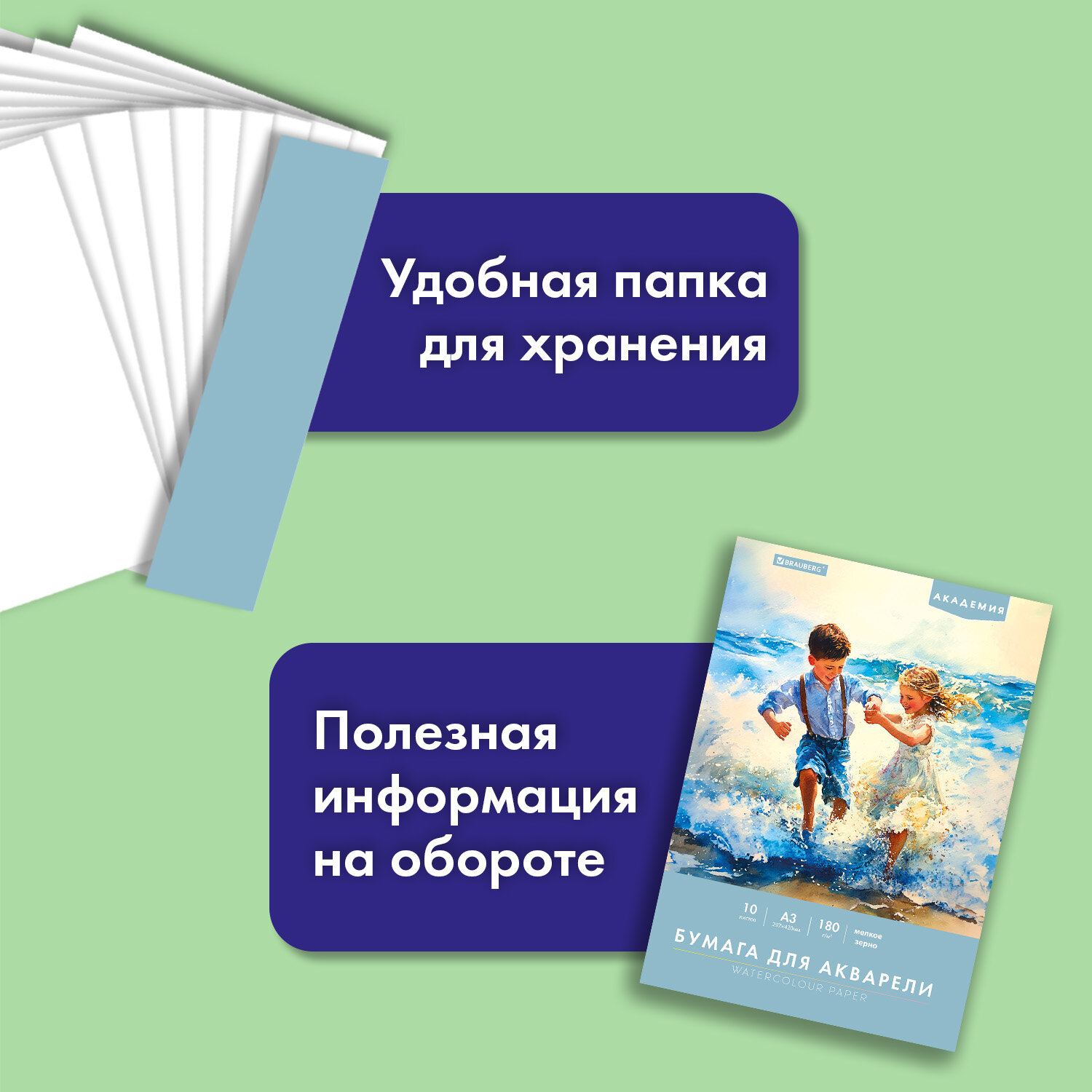 Папка для акварели БОЛЬШАЯ А3, 10 л., 180 г/м2, 297х420 мм, BRAUBERG АКАДЕМИЯ, "Дружба" Код товара: 117740 192,6 ₽ Купить Производитель:BRAUBERG Папка для акварели BRAUBERG АКАДЕМИЯ предназначена для рисования всеми видами водорастворимых красок, а также подойдет для рисования карандашами, ручками и фломастерами. Бумага подходит для непрофессионального и детского рисования. Папка для акварели содержит 10 листов формата А3 (297х420 мм). Белизна 100%. Качественные листы высокой плотности 180 г/м2 устойчивы к истиранию, воздействию влаги, обеспечивают чистую реалистичную передачу цвета. Обложка выполнена из мелованного картона.Производство: РоссияФормат: А3Серия: АКАДЕМИЯПлотность внутреннего блока: 180 г/м2Тип товара: бумага для акварели в папкеКоличество листов: 10Внутренний блок: рисовальная бумага чистоцеллюлознаяШирина: 297 ммДлина: 420 ммТекстура: мелкое зерноЦвет внутреннего блока: белыйБелизна 100%: даБез кислот: даОбложка: мелованный картонТип скрепления: отсутствуетДизайн обложки: ДружбаКоличество дизайнов в упаковке: 1 шт.Индивидуальная упаковка: даВес: 303 грРазмер упаковки: 0.4 × 42.7 × 30.6 смОбъём: 0.0006 м3Промежуточная упаковка: 30 штТранспортная упаковка: 30 штШтрих-код: 4606224519357 Сертификат-1.jpg Сертификат-2.jpg Сертификат-3.jpg