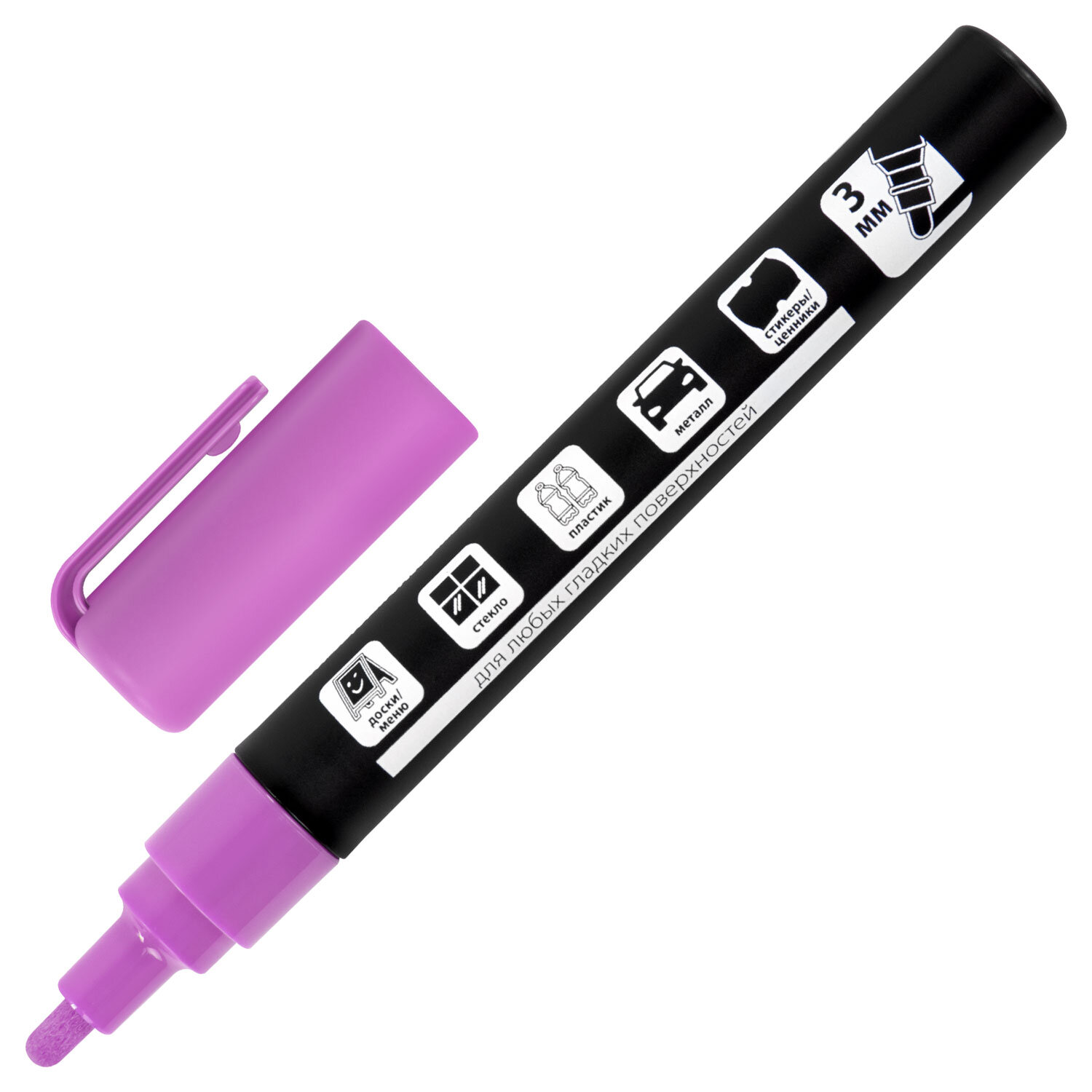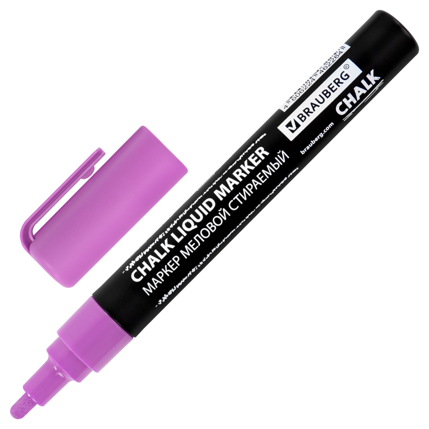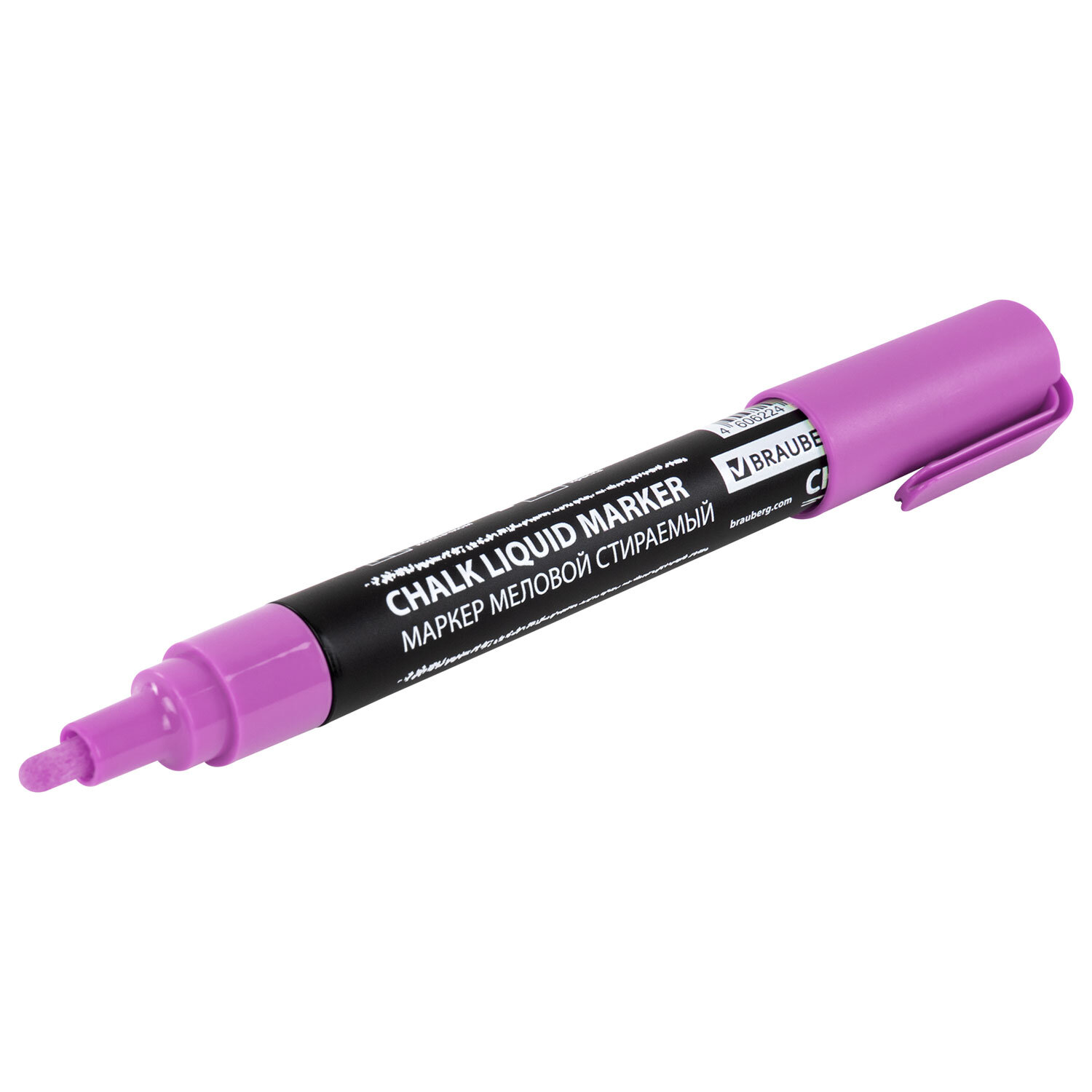 Маркер меловой CHALK LIQUID MARKER, ФИОЛЕТОВЫЙ, 3 мм, стираемый, BRAUBERG "CHALK" Код товара: 152588 87,57 ₽ Купить Производитель:BRAUBERG Стираемый меловой маркер BRAUBERG "CHALK" предназначен для создания рисунков и надписей на гладких и прозрачных невпитывающих поверхностях (например, зеркалах, стекле, меловой пленке). Подходит для школьных занятий, идеальны для детского творчества! СПОСОБ ПРИМЕНЕНИЯ: 1. Перед использованием хорошо встряхнуть с закрытым колпачком. 2. Снять колпачок, надавить на наконечник, дождаться, когда чернила полностью пропитают его. 3. После использования плотно закрыть колпачок. Рисунок получается плотный и яркий. Чернила на водно-меловой основе фиолетового цвета без резкого запаха. Толщина линии письма – от 1 мм до 3 мм, зависит от угла наклона мелового маркера. Круглый корпус выполнен из пластика. Обладает следующими преимуществами: - флуоресцентные чернила светятся в УФ-свете; - повышенная светостойкость; - пулевидный наконечник устойчив к повреждению и истиранию.Производство: КитайЦвет чернил: фиолетовыйСерия: ChalkКоличество в комплекте: 1 шт.Форма наконечника: пулевидныйМинимальная толщина линии письма: 1 ммМаксимальная толщина линии письма: 3 ммСпецэффект чернил: -Чернила светятся в УФ-свете: даПовышенная светостойкость: даНаконечник устойчив к повреждению и истиранию: даТип стирания: сухостираемыйФорма корпуса: круглаяДиаметр корпуса: 15 ммМатериал корпуса: пластикНаличие клипа: даОснова чернил: меловаяУпаковка: картонная коробкаСрок годности: 60 месВес: 25 грРазмер упаковки: 1.6 × 14.7 × 2 смОбъём: 0.0001 м3Промежуточная упаковка: 10 штТранспортная упаковка: 540 штШтрих-код: 4606224462264 Сертификат-1.jpg Сертификат-2.jpg Сертификат-3.jpg