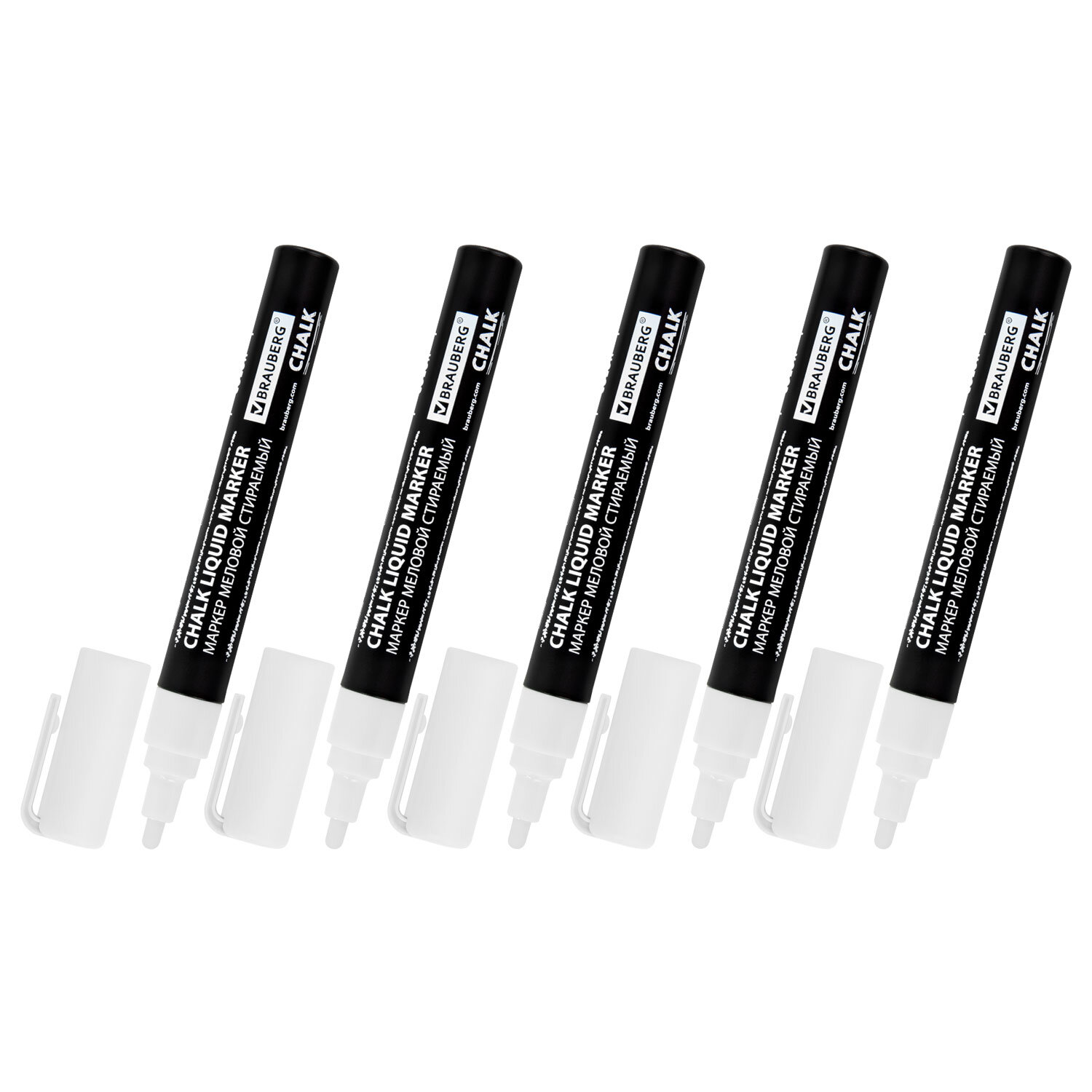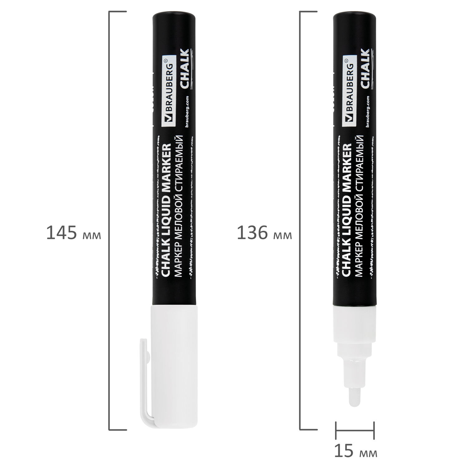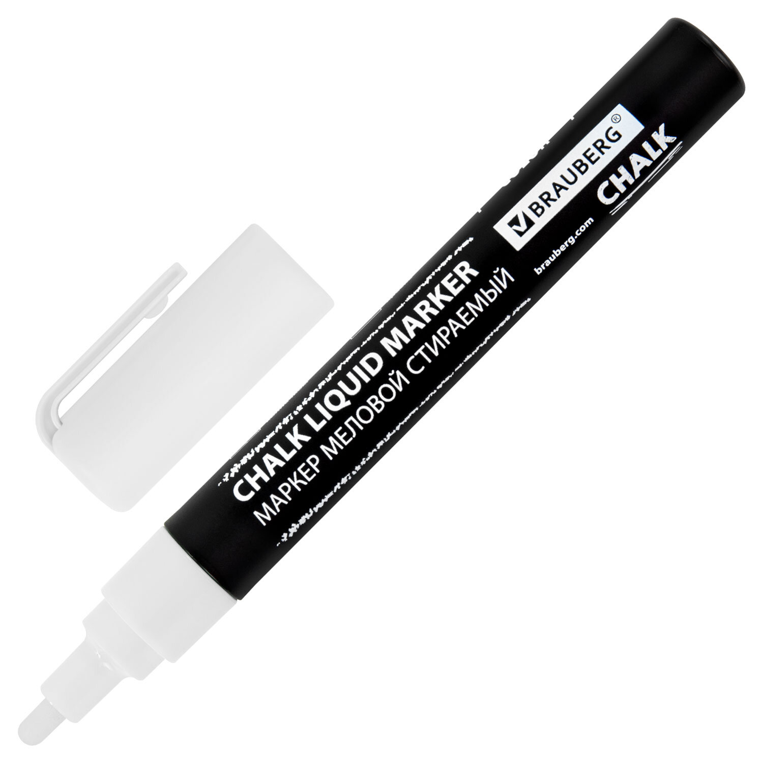 Маркеры меловые CHALK LIQUID MARKER, БЕЛЫЕ, НАБОР 5 шт., 3 мм, СТИКЕРЫ В ПОДАРОК, BRAUBERG Код товара: 152596 413,93 ₽ Купить Производитель:BRAUBERG Стираемые меловые маркеры BRAUBERG "CHALK" предназначены для создания рисунков и надписей на гладких и прозрачных невпитывающих поверхностях (например, зеркалах, стекле, меловой пленке). Подходят для школьных занятий, идеальны для детского творчества! СПОСОБ ПРИМЕНЕНИЯ: 1. Перед использованием хорошо встряхнуть с закрытым колпачком. 2. Снять колпачок, надавить на наконечник, дождаться, когда чернила полностью пропитают его. 3. После использования плотно закрыть колпачок. Рисунок получается плотный и яркий. Чернила на водно-меловой основе белого цвета без резкого запаха. В наборе 5 меловых маркеров с толщиной линии письма – от 1 мм до 3 мм. Толщина линии письма зависит от угла наклона маркера. Круглый корпус выполнен из пластика. В подарок к набору прилагается комплект из 8-ми черных стикеров. Обладают следующими преимуществами: - флуоресцентные чернила светятся в УФ-свете; - повышенная светостойкость; - пулевидный наконечник устойчив к повреждению и истиранию.Производство: КитайЦвет чернил: белыйСерия: ChalkКоличество в комплекте: 5 шт.Форма наконечника: пулевидныйМинимальная толщина линии письма: 1 ммМаксимальная толщина линии письма: 3 ммСпецэффект чернил: -Чернила светятся в УФ-свете: даПовышенная светостойкость: даНаконечник устойчив к повреждению и истиранию: даТип стирания: сухостираемыйФорма корпуса: круглаяДиаметр корпуса: 15 ммМатериал корпуса: пластикНаличие клипа: даОснова чернил: меловаяУпаковка: картонная коробкаСрок годности: 60 месВес: 141 грРазмер упаковки: 2.2 × 17.8 × 8.7 смОбъём: 0.0005 м3Промежуточная упаковка: 12 штТранспортная упаковка: 108 штШтрих-код: 4606224462349 Сертификат-1.jpg Сертификат-2.jpg Сертификат-3.jpg