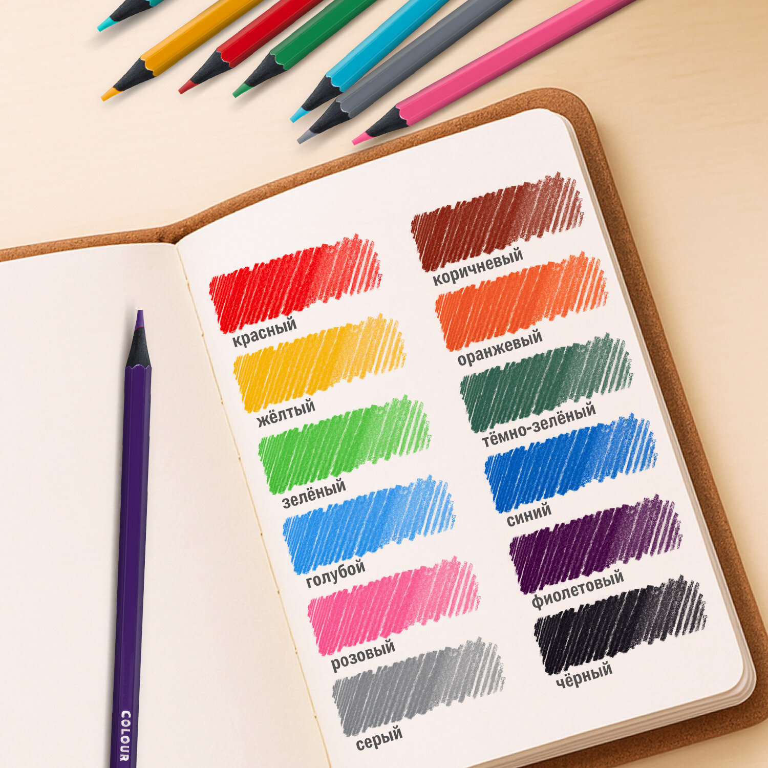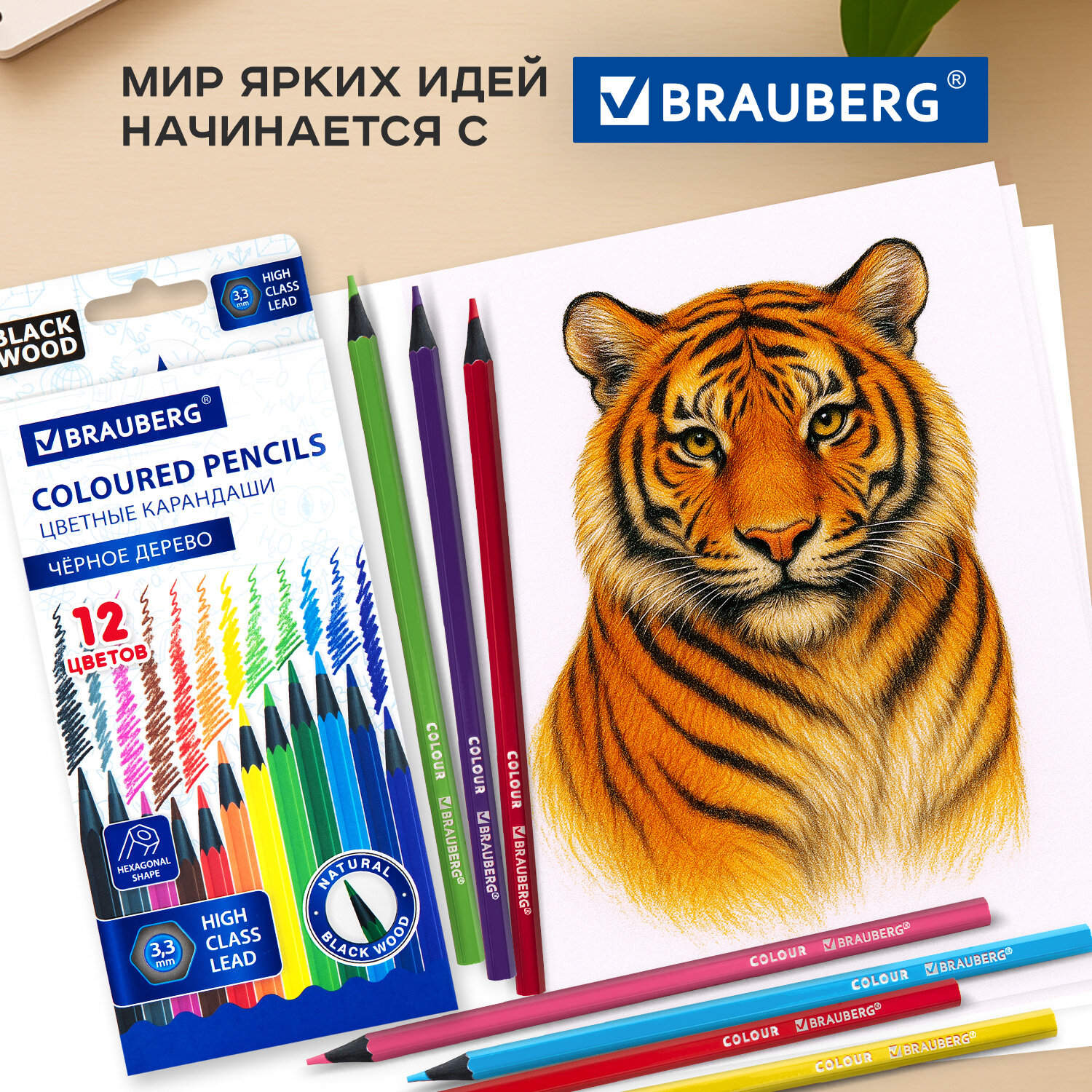 Карандаши цветные BRAUBERG, 12 цветов, шестигранные, грифель 3,3 мм, черное дерево Код товара: 181856 191,07 ₽ Купить Производитель:BRAUBERG Шестигранные цветные карандаши высокого качества из натурального черного дерева BRAUBERG серии BLACK WOOD SCHOOL обеспечивают гладкое письмо благодаря мягкому грифелю. Особое качество красящего пигмента гарантирует насыщенные яркие цвета. В наборе 12 цветов: черный, синий, голубой, салатовый, зеленый, желтый, оранжевый, розовый, красный, серый, фиолетовый, коричневый. Шестигранная форма корпуса позволяет карандашу не скатываться с поверхности стола во время занятий рисованием. Карандаши изготовлены из чёрной древесины ценных пород и имеют лакированный корпус. Высокосортная древесина и качество исполнения гарантируют легкую заточку. Грифель диаметром 3,3 мм обладает повышенной прочностью. Все карандаши заточены и поставляются в картонной упаковке с европодвесом. Рисование цветными карандашами способствует развитию творческого мышления, мелкой моторики рук, цветового восприятия, фантазии и воображения ребенка.Производство: КитайКоличество цветов: 12 шт.Количество карандашей: 12 шт.Серия: BLACK WOOD SCHOOLФорма сечения корпуса: шестиграннаяМатериал корпуса: чёрное деревоЛакированный корпус: даГрифель повышенной прочности: даЗаточка грифеля: даЛегко затачиваются: даДиаметр грифеля: 3.3 ммДлина карандаша: 176 ммУпаковка: картонная коробка c европодвесомВес: 87 грРазмер упаковки: 0.9 × 21 × 9 смОбъём: 0.0002 м3Промежуточная упаковка: 12 штТранспортная упаковка: 240 штШтрих-код: 4606224328669 Сертификат-1.jpg Сертификат-2.jpg Сертификат-3.jpg