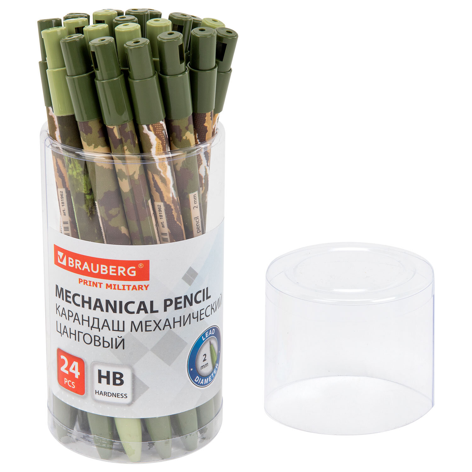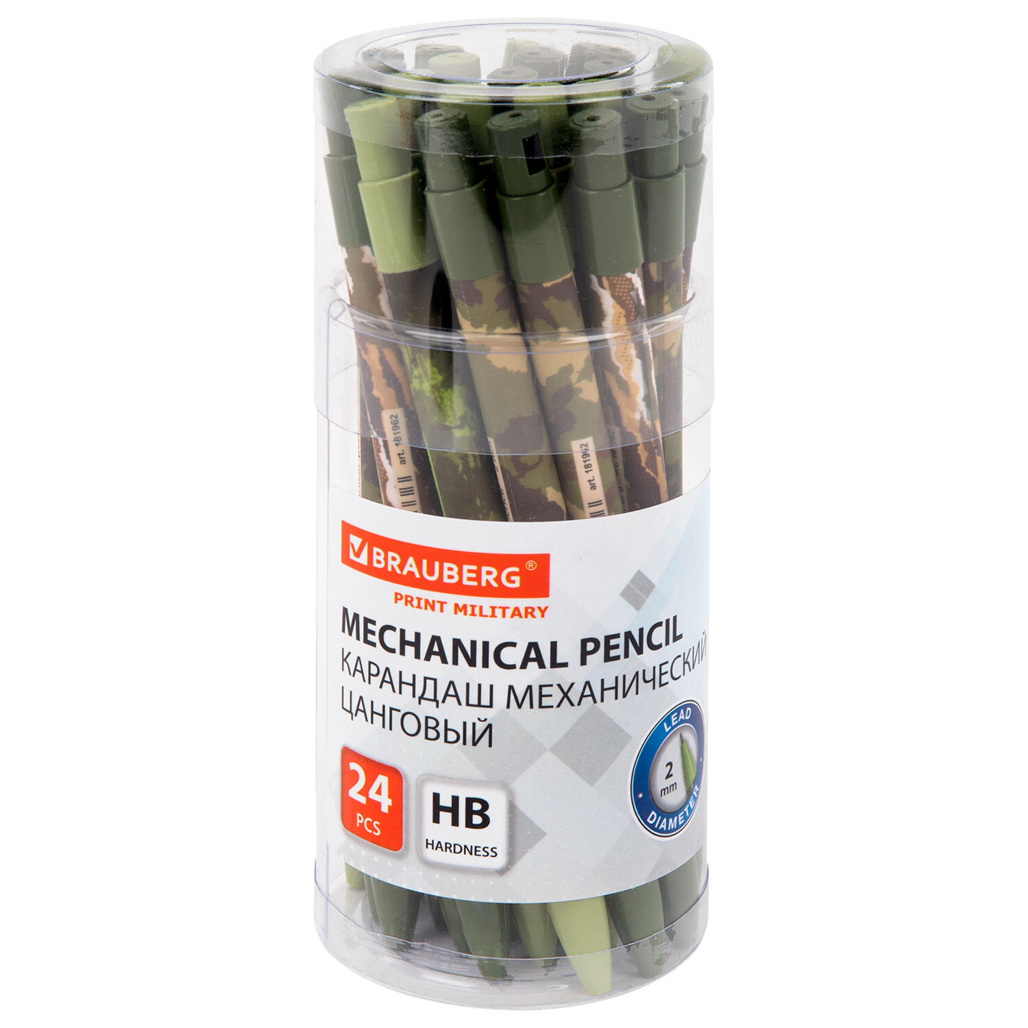 Карандаш механический цанговый 2 мм, BRAUBERG PRINT MILITARY, HB, встроенная точилка, корпус ассорти Код товара: 181962 36,78 ₽ Купить Производитель:BRAUBERG Механический карандаш BRAUBERG PRINT MILITARY выполнен в трех дизайнах милитари и идеально подойдет для ведения заметок во время работы и учебы. Механический карандаш снабжен грифелем HB 2 мм, всегда заточен, готов к использованию. Карандаш подходит для рисования, черчения, а также ведения аккуратных записей. Встроенная точилка обеспечит всегда острую заточку. Круглый корпус дизайна ассорти с покрытием soft-touch добавляет комфорта при письме.Производство: КитайТип карандаша: механическийДиаметр грифеля: 2 ммТвердость грифеля: НВФорма корпуса: круглаяКоличество в комплекте: 1 шт.Серия: ColletВстроенная точилка: даЗапасные грифели в комплекте: 0 штМатериал корпуса: пластикМатериал клипа: нетЦвет корпуса: ассортиУпаковка: пластиковая коробкаВес: 8 грРазмер упаковки: 1 × 14.5 × 1 смПромежуточная упаковка: 24 штТранспортная упаковка: 288 штШтрих-код: 4606224394336 Сертификат-1.jpg Сертификат-2.jpg Сертификат-3.jpg