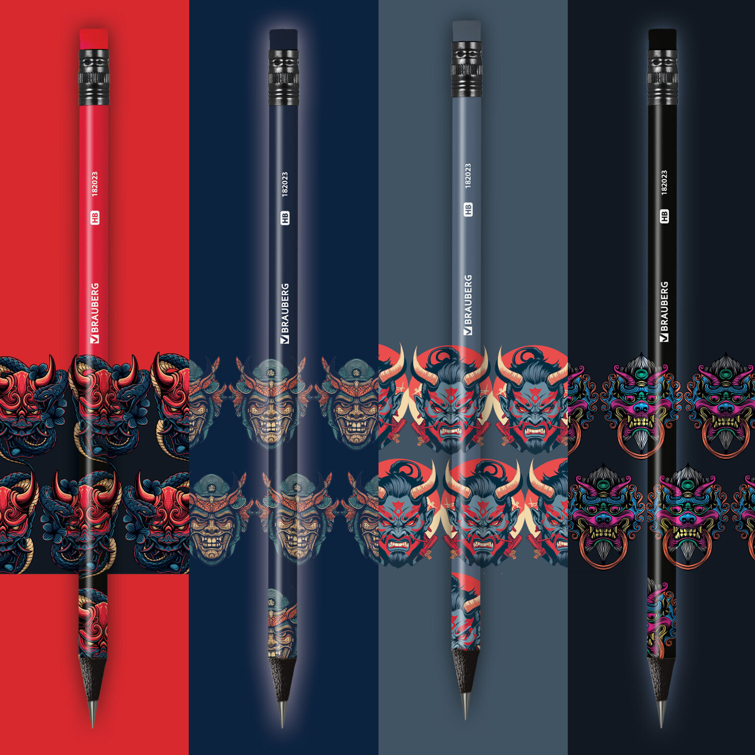 Карандаш чернографитный с принтом BRAUBERG "ONI", 1 шт., HB, с ластиком, корпус ассорти Код товара: 182023 11,36 ₽ Купить Производитель:BRAUBERG Карандаш чернографитный BRAUBERG "ONI" – первый помощник при выполнения различных заметок. Позволяет сделать легкий набросок или даже нарисовать полноценную картину. Используется повсеместно. Легко затачивается, максимально устойчив к повреждениям. Изготовлен из пластика высокого качества. Имеет круглое сечение и оснащен ластиком. Карандаш длиной 190 мм обладает средней степенью твердости – HB. Корпус представлен в четырех вариантах дизайна с изображением персонажей японской мифологии. Каждый карандаш имеет индивидуальный штрих-код. Поставляется заточенным в пластиковой тубе по 36 штук.Производство: КитайТвердость: HBЗаточенный: даНаличие ластика: даДиаметр грифеля: 2 ммКоличество карандашей в упаковке: 1 шт.Количество твердостей в наборе: 1Серия: PrintФорма корпуса: круглаяУдаропрочный грифель: даДлина карандаша: 190 ммМатериал корпуса: пластикЦвет корпуса: ассортиДизайн: OniКоличество дизайнов в упаковке: 4 шт.Упаковка: пластиковая тубаВес: 10 грРазмер упаковки: 0.7 × 18.7 × 0.7 смПромежуточная упаковка: 36 штТранспортная упаковка: 2304 штШтрих-код: 4606224444840 Сертификат-1.jpg Сертификат-2.jpg Сертификат-3.jpg