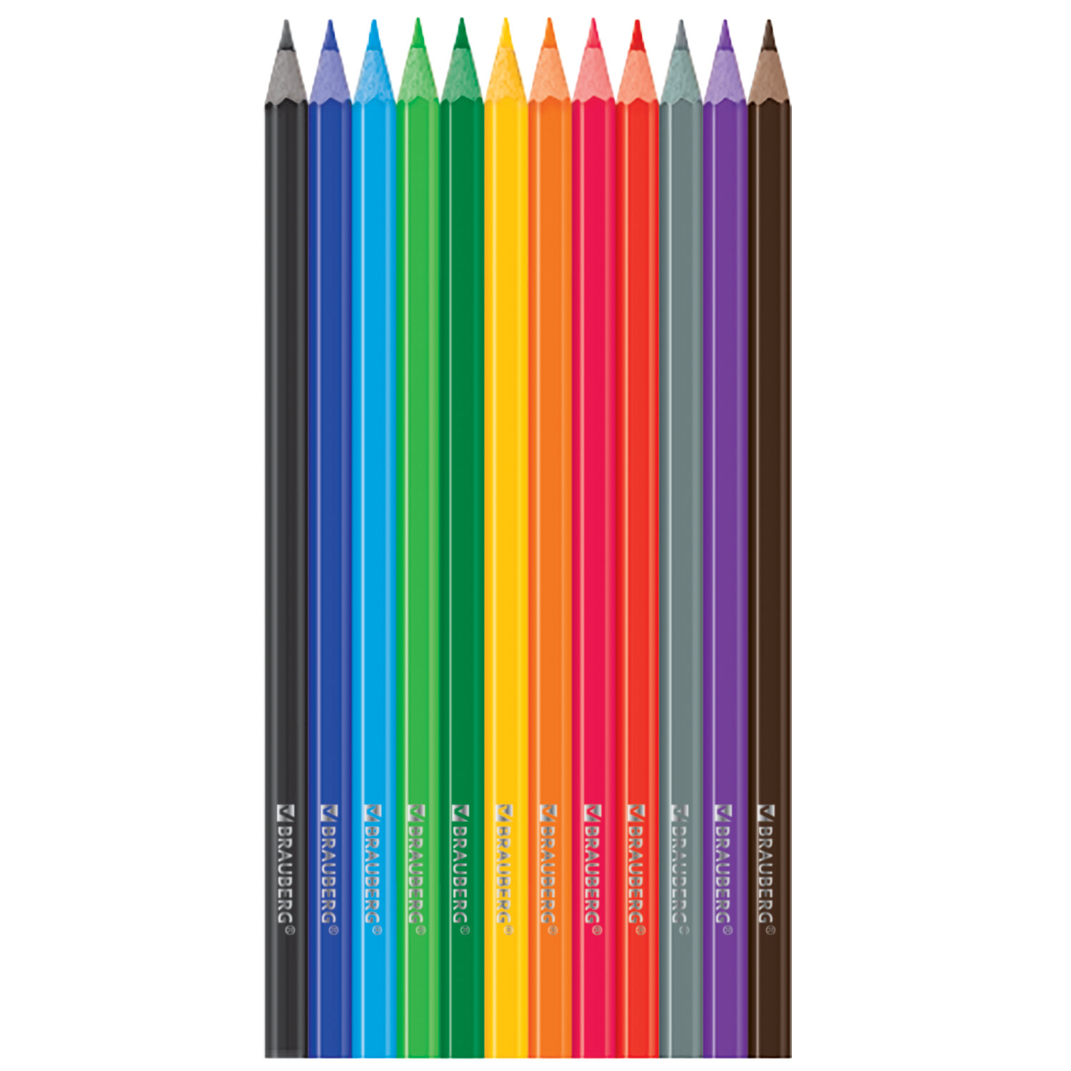 Карандаши цветные BRAUBERG, 12 цветов, цветной корпус, упаковка ПВХ бокс, шестигранные Код товара: 182067 130,05 ₽ Купить Производитель:BRAUBERG Цветные карандаши высокого качества BRAUBERG обеспечивают гладкое письмо благодаря мягкому грифелю. Особое качество красящего пигмента обеспечивает насыщенные яркие цвета. Набор состоит из 12 цветов: черный, синий, голубой, салатовый, зеленый, желтый, оранжевый, розовый, красный, серый, фиолетовый, коричневый. Шестигранная форма сечения корпуса позволяет не скатываться карандашу с поверхности стола во время занятий рисованием. Карандаши изготовлены из высококачественного цветного пластика и имеют лакированный корпус. Качество исполнения гарантирует легкую заточку. Грифель диаметром 3 мм обладает повышенной прочностью. Все карандаши заточены и поставляются в прозрачной пластиковой коробке с европодвесом.Производство: КитайКоличество цветов: 12 шт.Количество карандашей: 12 шт.Форма сечения корпуса: шестиграннаяМатериал корпуса: пластикЛакированный корпус: даГрифель повышенной прочности: даЗаточка грифеля: даЛегко затачиваются: даДиаметр грифеля: 3 ммДлина карандаша: 175 ммУпаковка: пластиковая коробка с европодвесомВес: 96 грРазмер упаковки: 0.8 × 9.5 × 17.8 смОбъём: 0.0002 м3Промежуточная упаковка: 12 штТранспортная упаковка: 240 штШтрих-код: 4606224471181