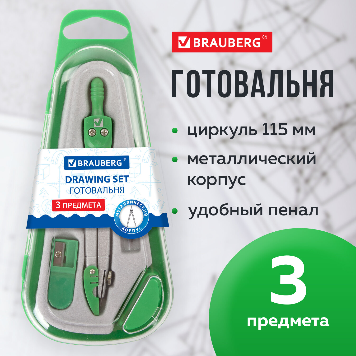 Готовальня BRAUBERG "Klasse", 3 предмета: циркуль 115 мм с колпачком, грифель, точилка, пенал с подвесом Код товара: 210330 332,47 ₽ Купить Производитель:BRAUBERG Металлическая готовальня BRAUBERG "Klasse" предназначена для выполнения чертежных работ. Для учеников младших и средних классов. В состав готовальни входят 3 предмета: - циркуль; - точилка; - пенал с запасным грифелем. Циркуль длиной 115 мм имеет несгибаемые штанги и защитный колпачок для иглы. Изготовлен из металла, дополнительный цвет элементов – зеленый. Поставляется в пластиковом пенале с европодвесом.Производство: КитайТип товара: готовальняСерия: KlasseКоличество предметов: 3 шт.Длина циркуля: 115 ммТип штанги: несгибаемыеЗащитный колпачок для иглы: даКомплектация: пенал с запасным грифелем, точилка, циркульЦвет корпуса: зеленый/серебристыйМатериал: металлУпаковка: пластиковый пенал с европодвесомВес: 65 грРазмер упаковки: 2.2 × 16.9 × 7.6 смОбъём: 0.0003 м3Промежуточная упаковка: 20 штТранспортная упаковка: 240 штШтрих-код: 4606224052366 Сертификат-1.jpg Сертификат-2.jpg Сертификат-3.jpg