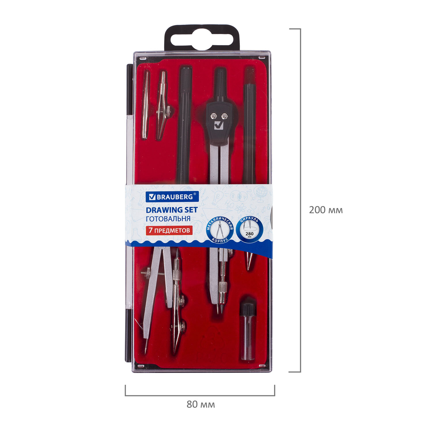 Готовальня BRAUBERG "Architect", 7 предметов: циркуль + кронциркуль с рейсфедором, рейсфедер + держатель, 2 вставки, грифель Код товара: 210346 577,49 ₽ Купить Производитель:BRAUBERG Металлическая готовальня BRAUBERG "Architect" предназначена для выполнения чертежных работ. Для учеников старших классов и студентов. В состав готовальни входят 7 предметов: - циркуль; - кронциркуль с рейсфедером; - рейсфедер; - рейсфедерная вставка; - держатель; - игольная вставка; - пенал с запасным грифелем. Циркуль длиной 135 мм имеет одну сгибаемую штангу. Изготовлен из металла, дополнительный цвет элементов - черный. Поставляется в пластиковом пенале с прозрачной крышкой и с европодвесом.Производство: КитайТип товара: готовальняСерия: ArchitectКоличество предметов: 7 шт.Длина циркуля: 135 ммТип штанги: одна сгибаемаяКомплектация: игольная вставка, кронциркуль, пенал с запасным грифелем, рейсфедер, рейсфедерная вставка и держатель, циркульЦвет корпуса: черный/серебристыйМатериал: металлУпаковка: пластиковый пенал с европодвесомВес: 141 грРазмер упаковки: 2.1 × 19.8 × 8.4 смОбъём: 0.0006 м3Промежуточная упаковка: 10 штТранспортная упаковка: 120 штШтрих-код: 4606224052526 Сертификат-1.jpg Сертификат-2.jpg Сертификат-3.jpg