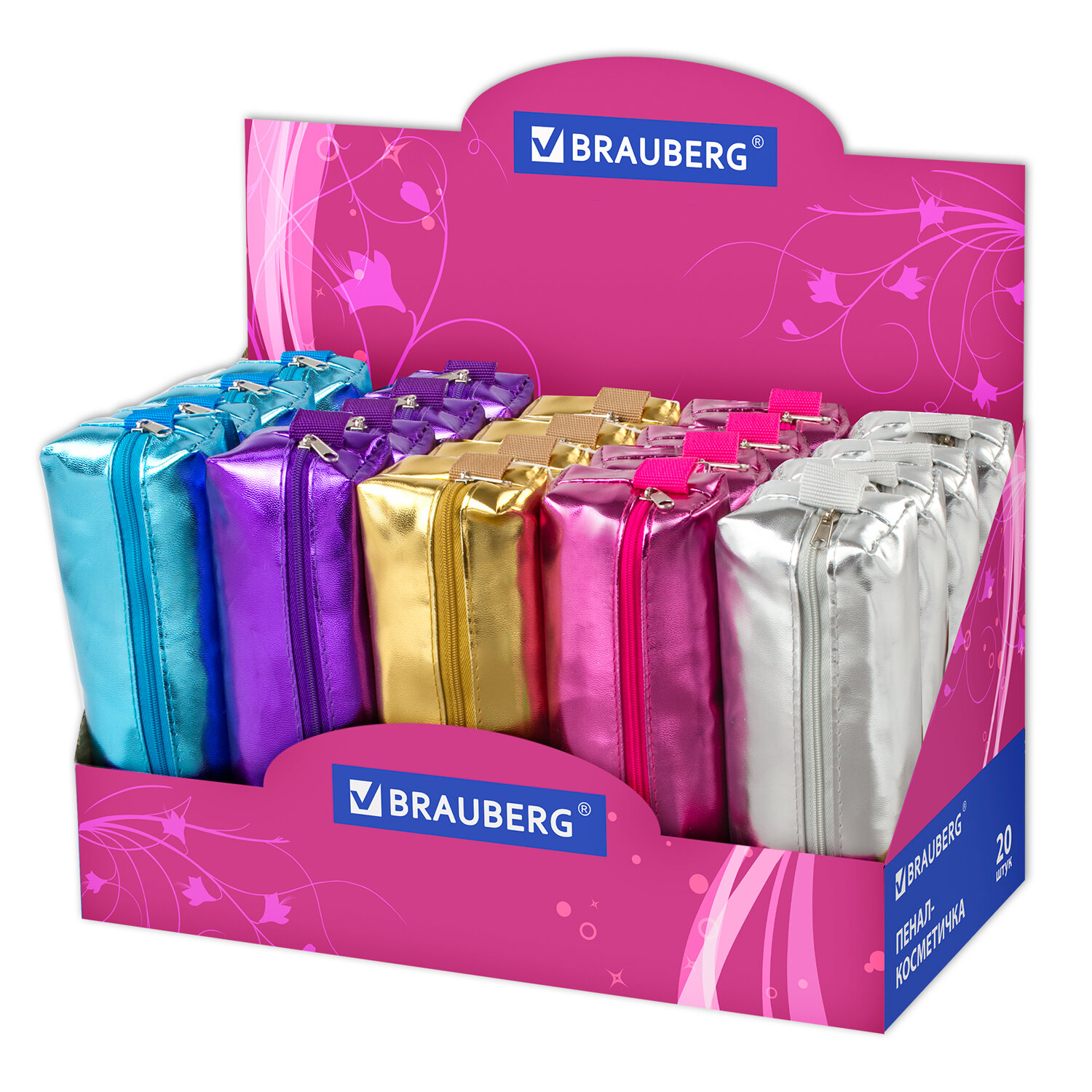 Пенал-косметичка BRAUBERG под искусственую кожу, ассорти 5 цветов, "Винтаж", 20х6х4 см, дисплей Код товара: 223268 168,98 ₽ Купить Производитель:BRAUBERG Пенал-косметичка BRAUBERG "Винтаж" выполнен из прочного мягкого блестящего материала. Пенал вмещает до 50 канцелярских принадлежностей стандартных размеров. Поставляется в нескольких вариантах цвета (без возможности выбора). Выполнены из прочной блестящей искусственной кожи. Пеналы представлены в пяти цветах. Надежная молния оснащена удобным металлическим бегунком. В дисплее - 20 шт. Пенал имеет оптимальный размер для размещения в нем не только письменных принадлежностей, но и повседневных мелочей, косметики, аксессуаров, таким образом может выполнять роль универсальной сумочки-косметички, которую можно всегда взять с собой. Универсальные косметички BRAUBERG - это высокое качество и проработанные до мелочей модели с современным дизайном и широким функционалом. На протяжении 15 лет наши специалисты сосредоточены на разработке, производстве и совершенствовании товаров повседневного спроса для детей и взрослых. Именно поэтому BRAUBERG знают и выбирают по всей стране.Производство: КитайТип товара: пенал-косметичкаЗастежка: молнияНазначение: универсальноеКоличество отделений: 1Материал: искусственная кожаСерия: DISPLAYДизайн: ВинтажБазовый цвет: ассортиДлина: 20 смШирина: 6 смУпаковка: дисплейВес: 43 грРазмер упаковки: 4.8 × 20.8 × 8.9 смОбъём: 0.0008 м3Промежуточная упаковка: 20 штТранспортная упаковка: 160 штШтрих-код: 4606224063386 Сертификат-1.jpg Сертификат-2.jpg Сертификат-3.jpg