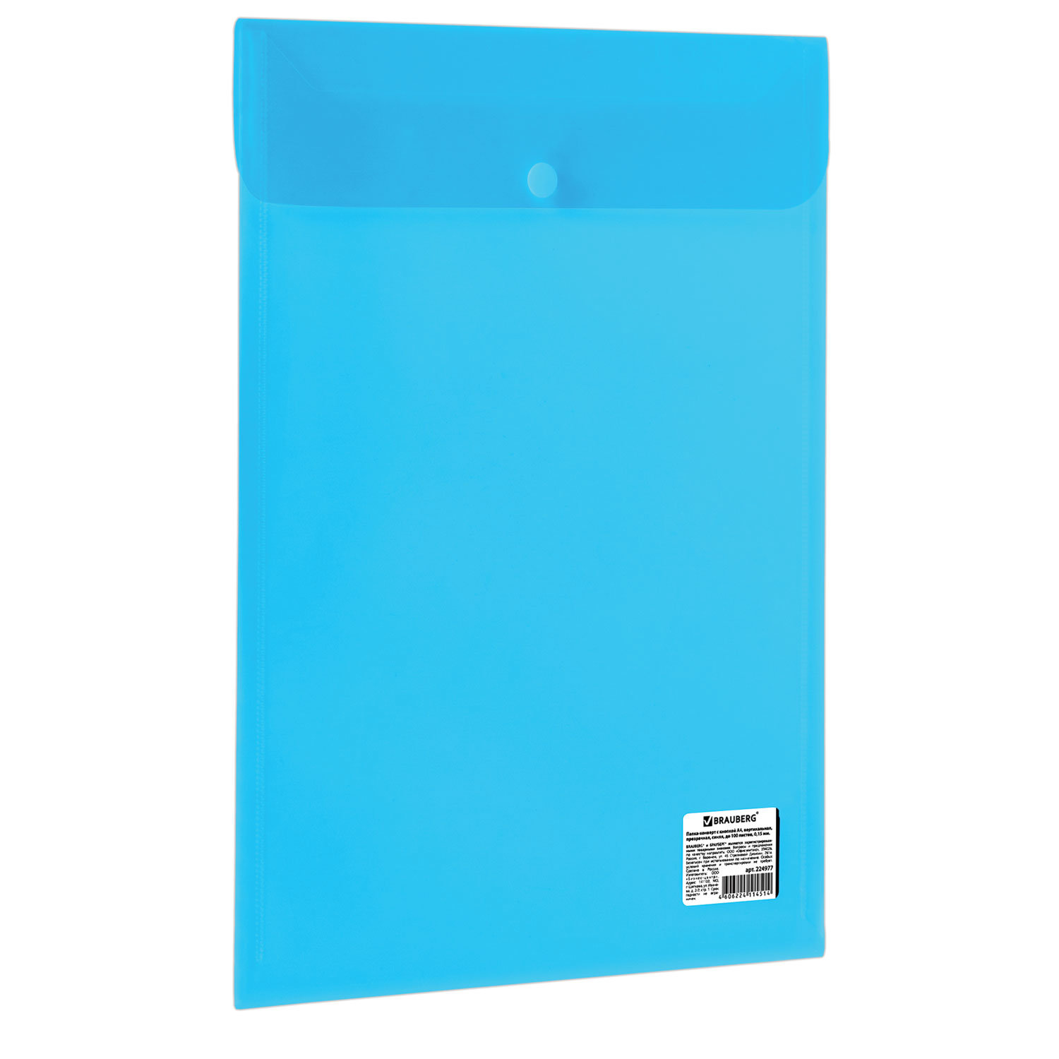 Папка-конверт с кнопкой BRAUBERG, вертикальная, А4, до 100 листов, прозрачная, синяя, 0,15 мм Код товара: 224977 57,38 ₽ Купить Производитель:BRAUBERG Папка с кнопкой BRAUBERG - универсальная модель для хранения, транспортировки и защиты документов и мелких предметов от негативных внешних факторов. Станет незаменимым помощником для школьников, студентов, офисных работников и творческих людей. Папка-конверт с гладкой фактурой формата А4 изготовлена из плотного прозрачного пластика синего цвета толщиной 150 мкм. Закрывается на защелку-кнопку, что делает удобным частое использование и обеспечивает быстрый доступ к ее содержимому. Папка способна вместить до 100 листов стандартной плотности.Производство: РоссияФормат: А4Ориентация: вертикальнаяВмещает до: 100 листовФактура: гладкаяТип пластика: прозрачныйСерия: VerticalДизайн: синийКоличество в комплекте: 1 шт.Толщина пластика: 150 мкмТип замка: кнопкаЦвет: синийВысота: 330 ммШирина: 235 ммГлубина: 3 ммМатериал: полипропиленВес: 29 грРазмер упаковки: 0.4 × 33.8 × 24.5 смОбъём: 0.0003 м3Промежуточная упаковка: 10 штТранспортная упаковка: 100 штШтрих-код: 4606224114514 Файлы Сертификат-1.jpg Сертификат-2.jpg Сертификат-3.jpg Сертификат-4.jpg