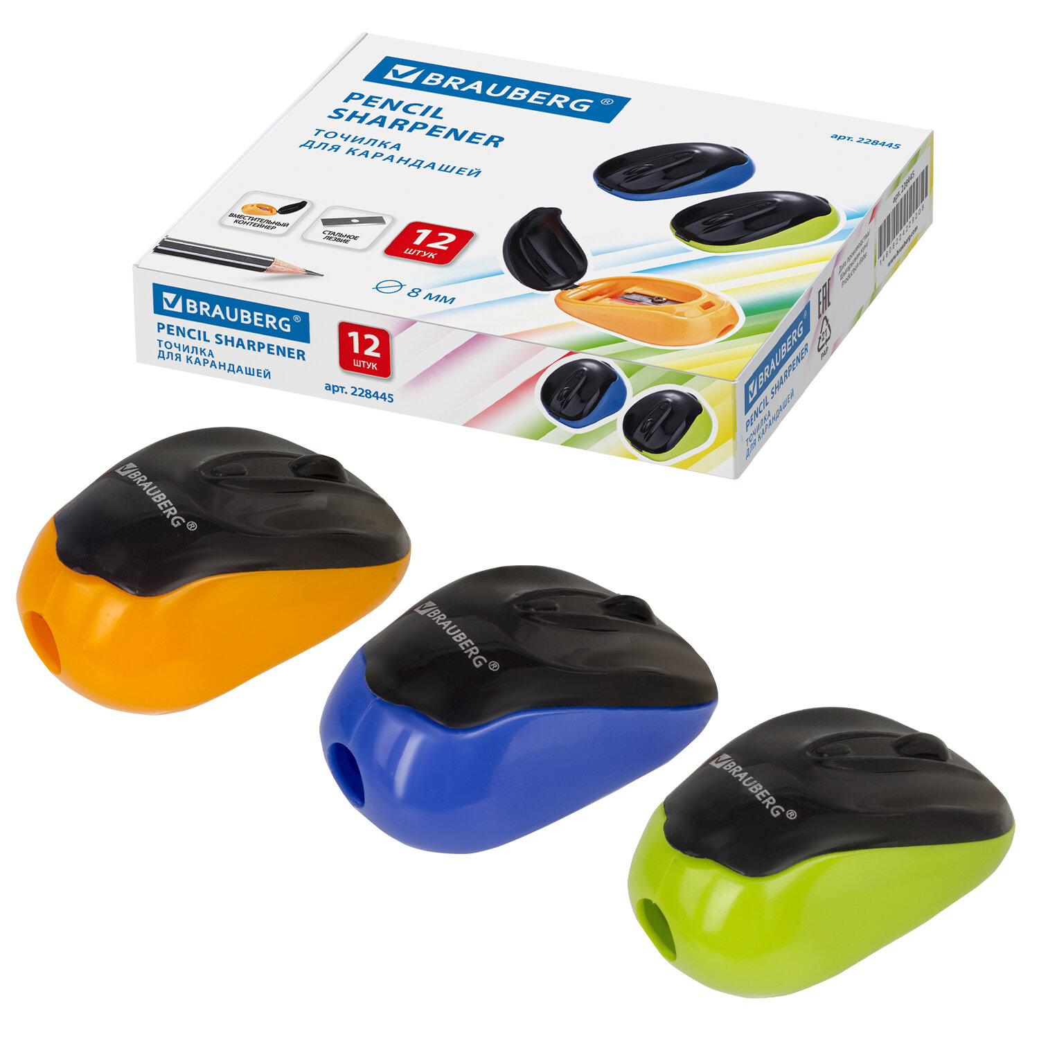 Точилка BRAUBERG "Click", с контейнером, пластиковая, корпус ассорти Код товара: 228445 35,27 ₽ Купить Производитель:BRAUBERG Точилка BRAUBERG "Click" - неотъемлемый "спутник" карандаша. Эргономичный корпус в форме компьютерной мышки выполнен из пластика. Острое стальное лезвие обеспечивает быструю и легкую заточку. Карандаш затачивается аккуратно, а опилки остаются в специальном контейнере. Компактные размеры (25х31х52 мм) позволят поместить точилку в пенал, а благодаря интересной форме она не затеряется на парте или столе среди других принадлежностей. Поставляется в нескольких вариантах дизайна (без возможности выбора).Производство: КитайКоличество в комплекте: 1 шт.Материал корпуса: пластикФорма корпуса: фигурнаяКоличество отверстий: 1Контейнер для стружки: даСерия: ClickПодходит для левшей: даЦвет: ассортиВысота: 25 ммШирина: 31 ммГлубина: 52 ммУпаковка : картонный дисплейВес: 12 грРазмер упаковки: 2.6 × 5.2 × 3.2 смОбъём: 0.0001 м3Промежуточная упаковка: 12 штТранспортная упаковка: 720 штШтрих-код: 4606224229201 Сертификат-1.jpg Сертификат-2.jpg Сертификат-3.jpg